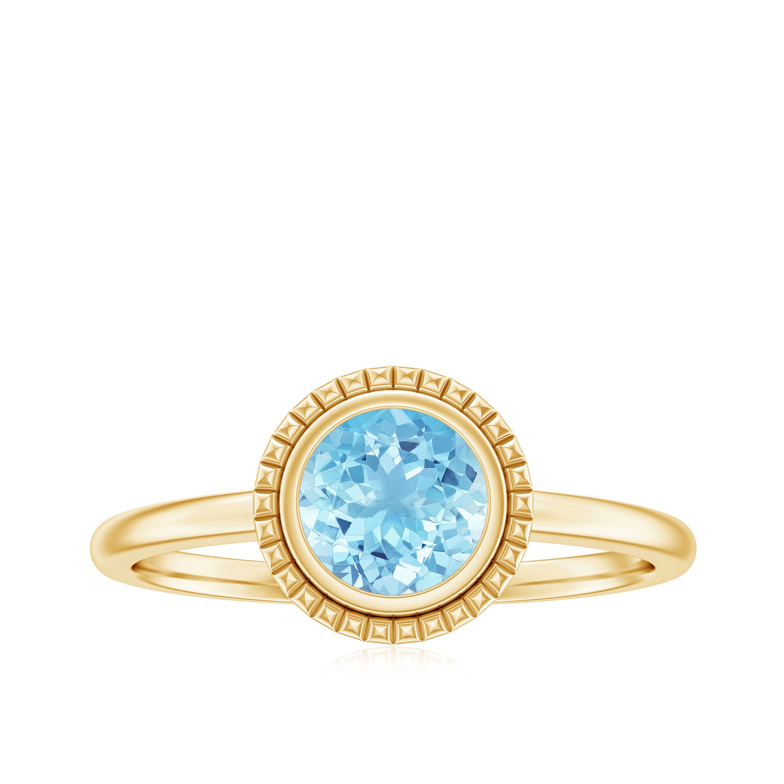 Bezel Set Round Aquamarine Solitaire Promise Ring