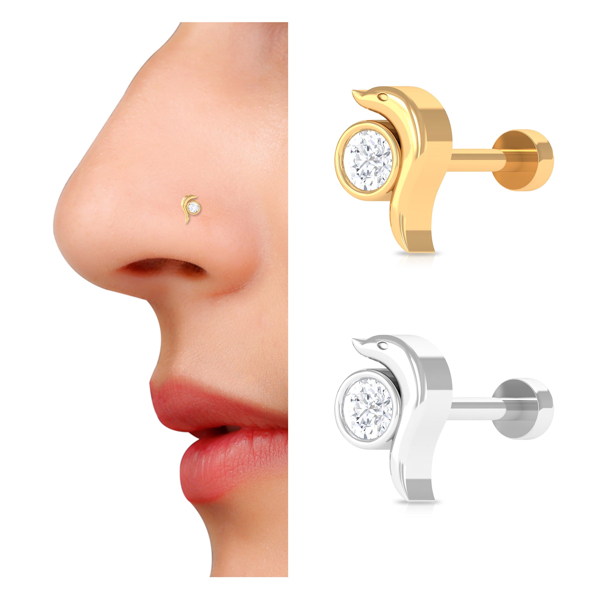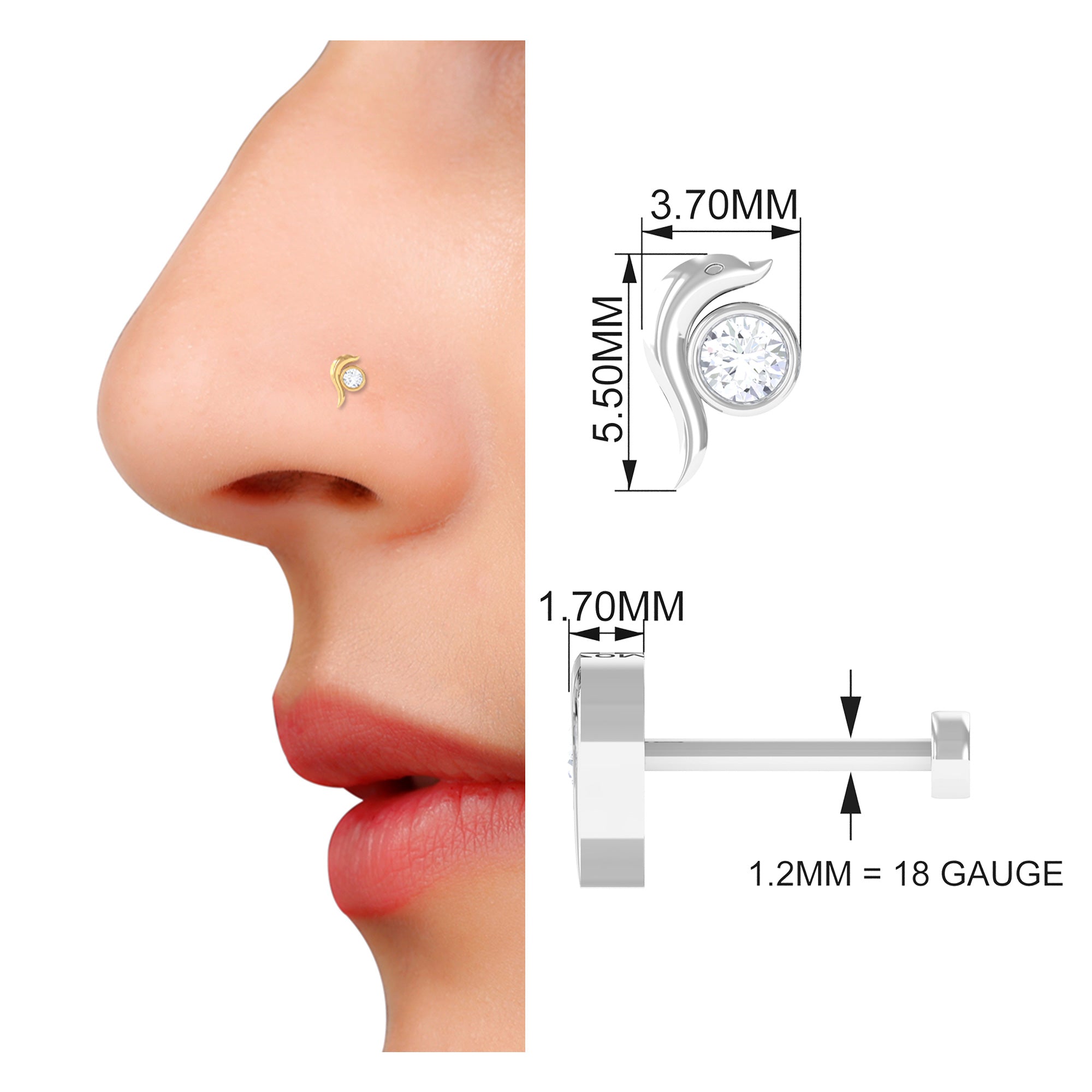 Bezel Set Round Shape Dainty Diamond Dolphin Nose Pin