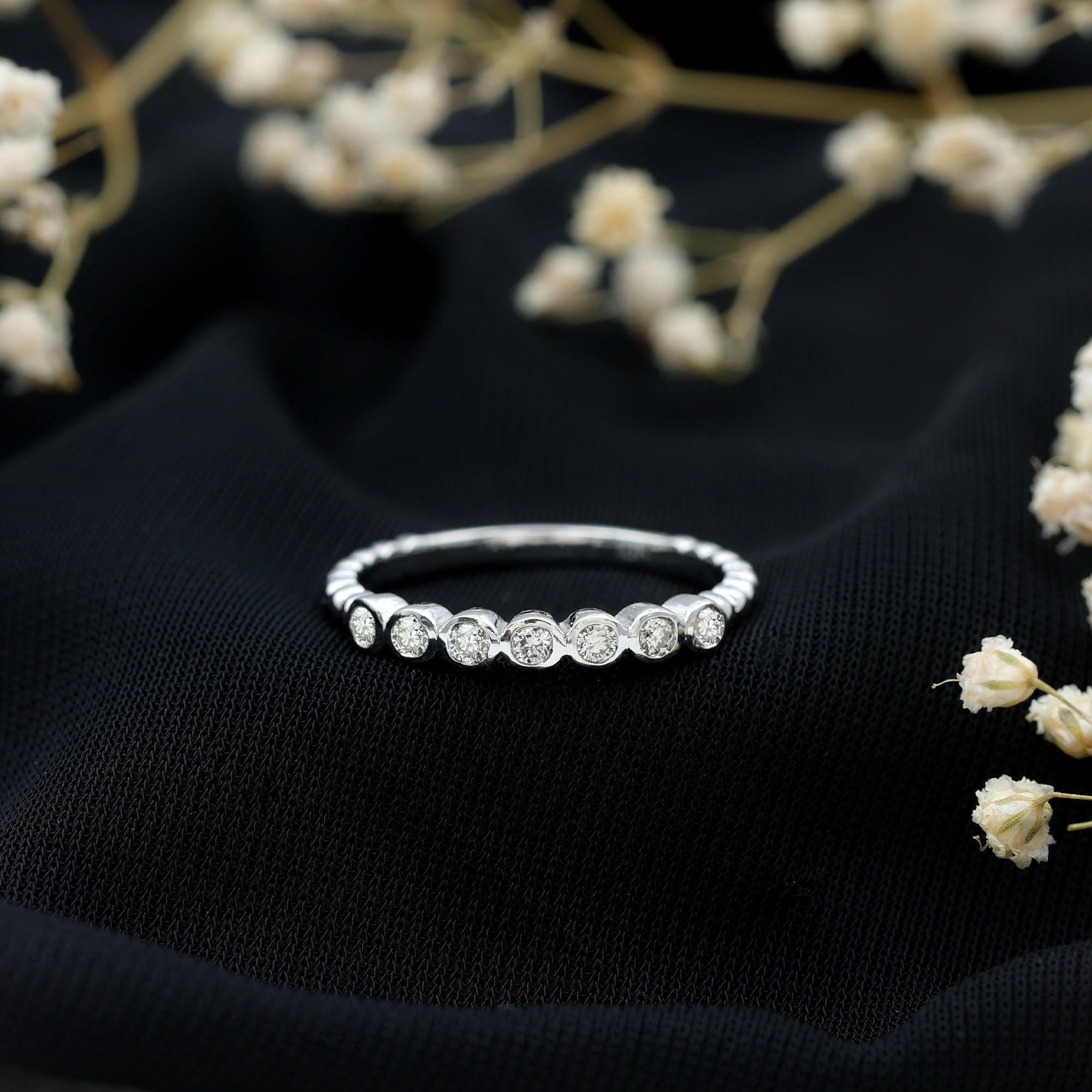 Bezel Set Round Diamond Half Eternity Ring
