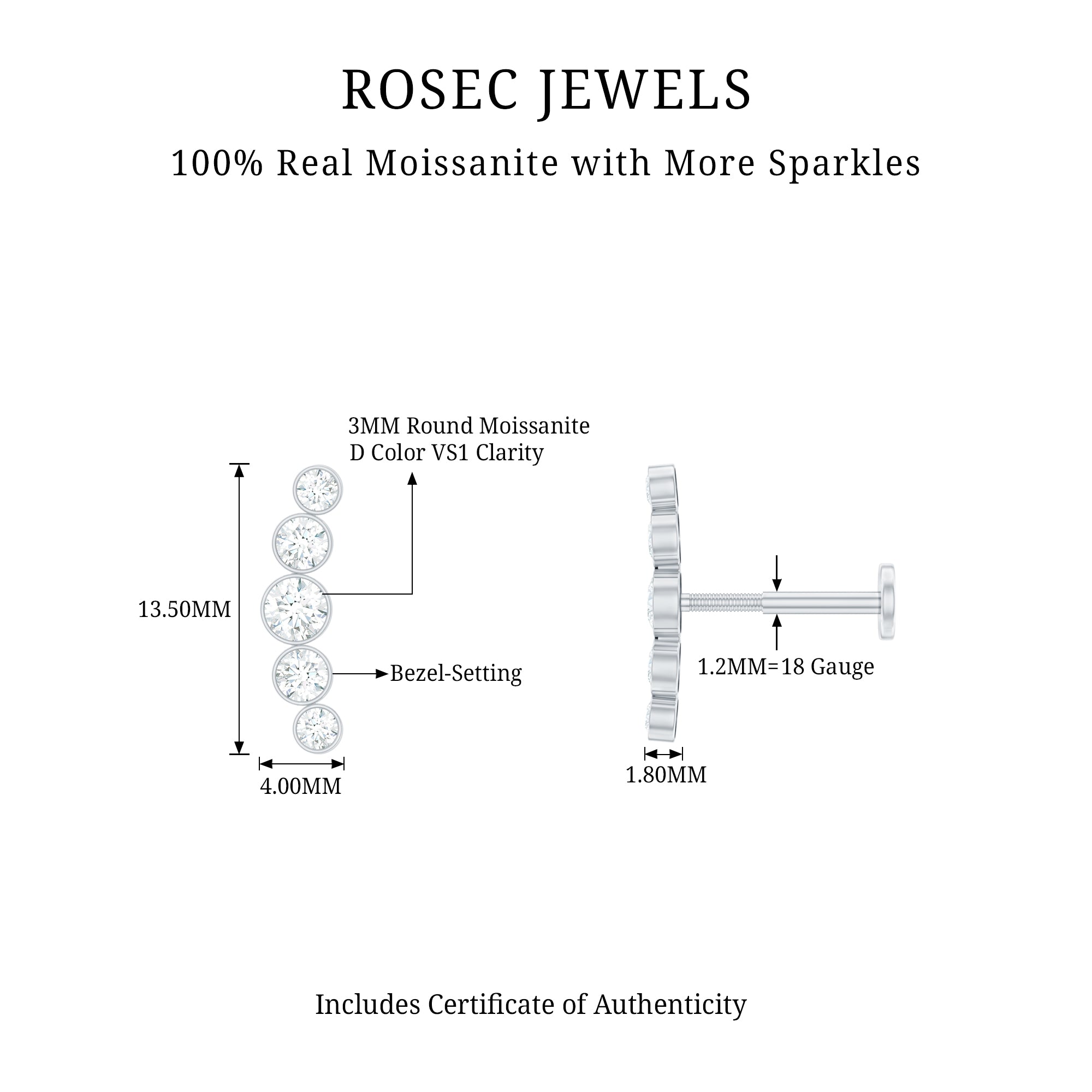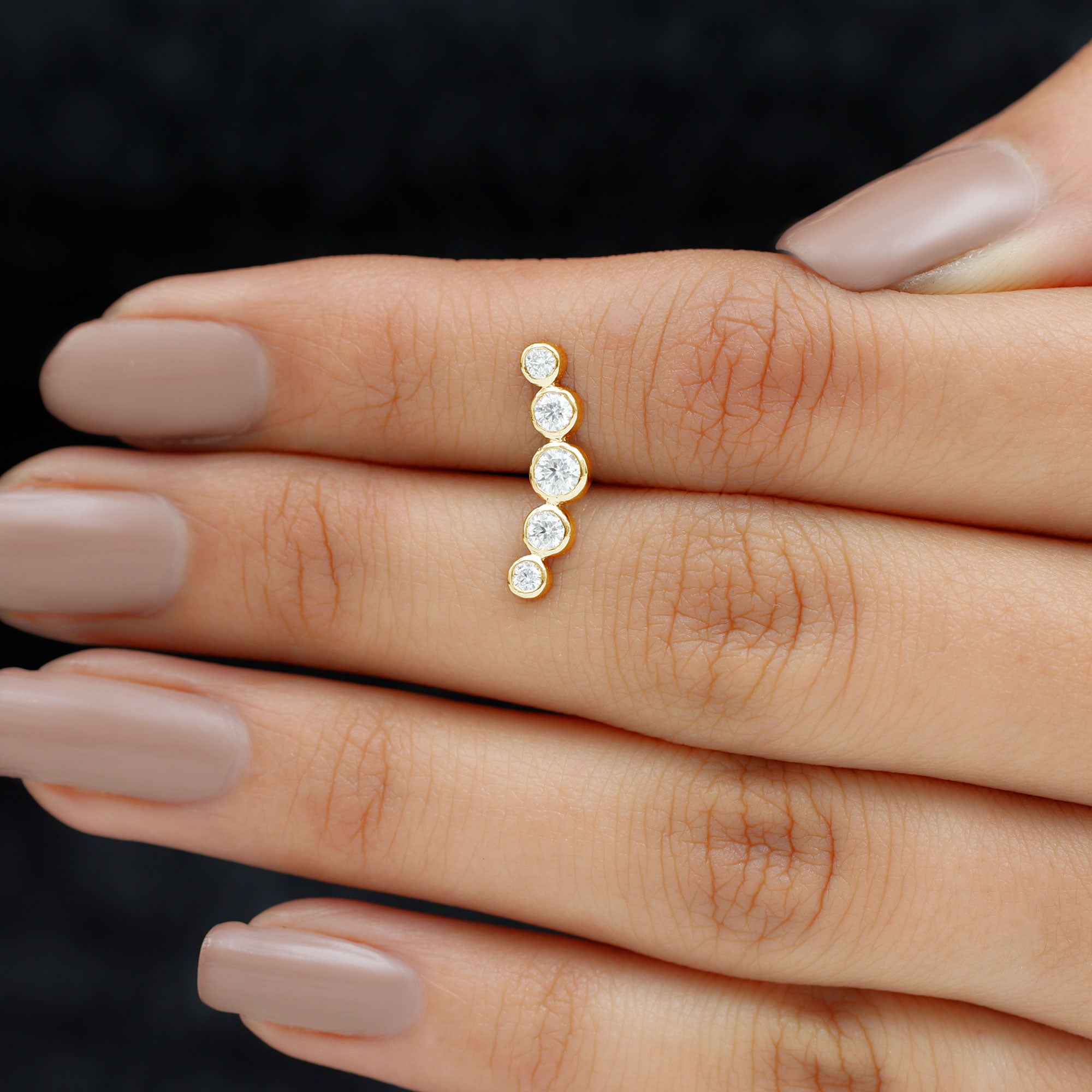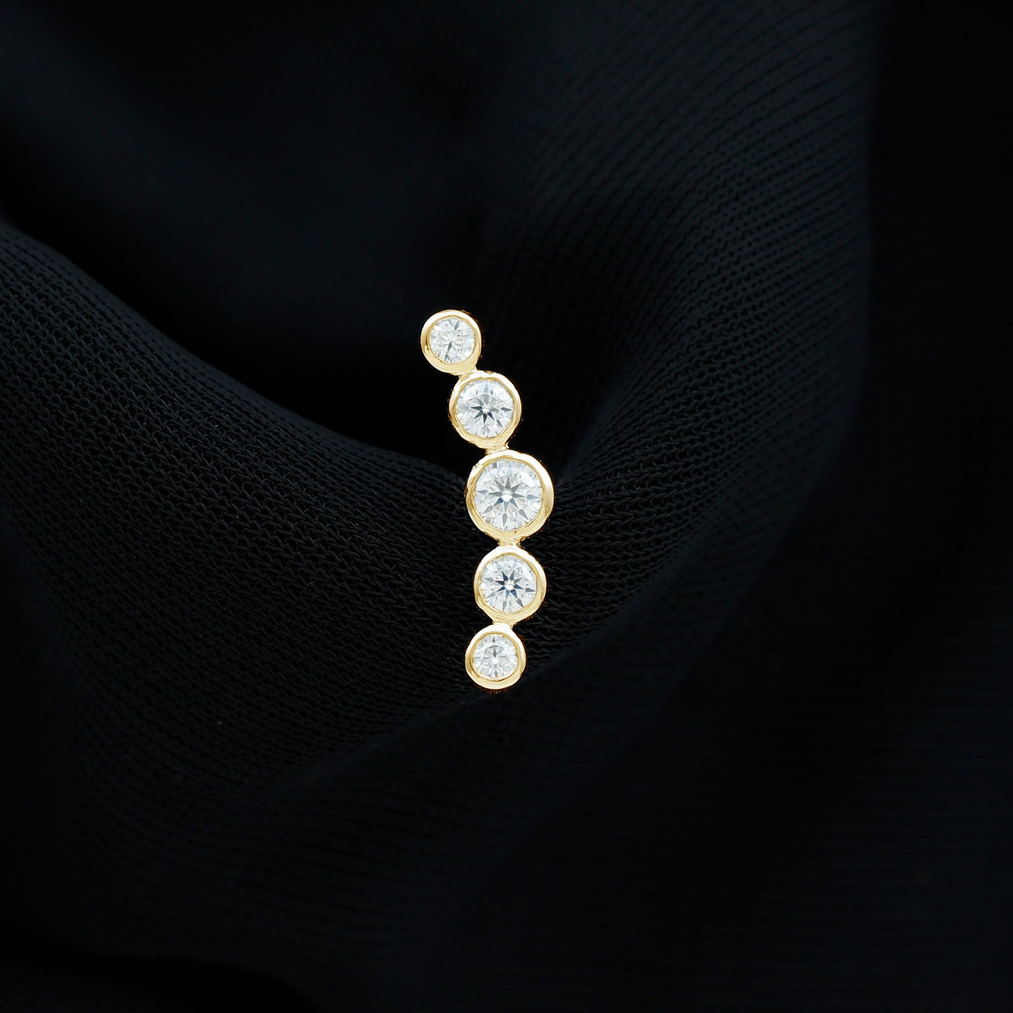 Indulge in the exquisite charm of our Ear Crawler Earring. This stunning piece is adorned with Moissanite stones that are securely set in a bezel setting, forming a radiant curved row that shines in all its glory. Crafted in gold, this earring exudes luxury and elegance, adding a touch of sophistication to any attire.