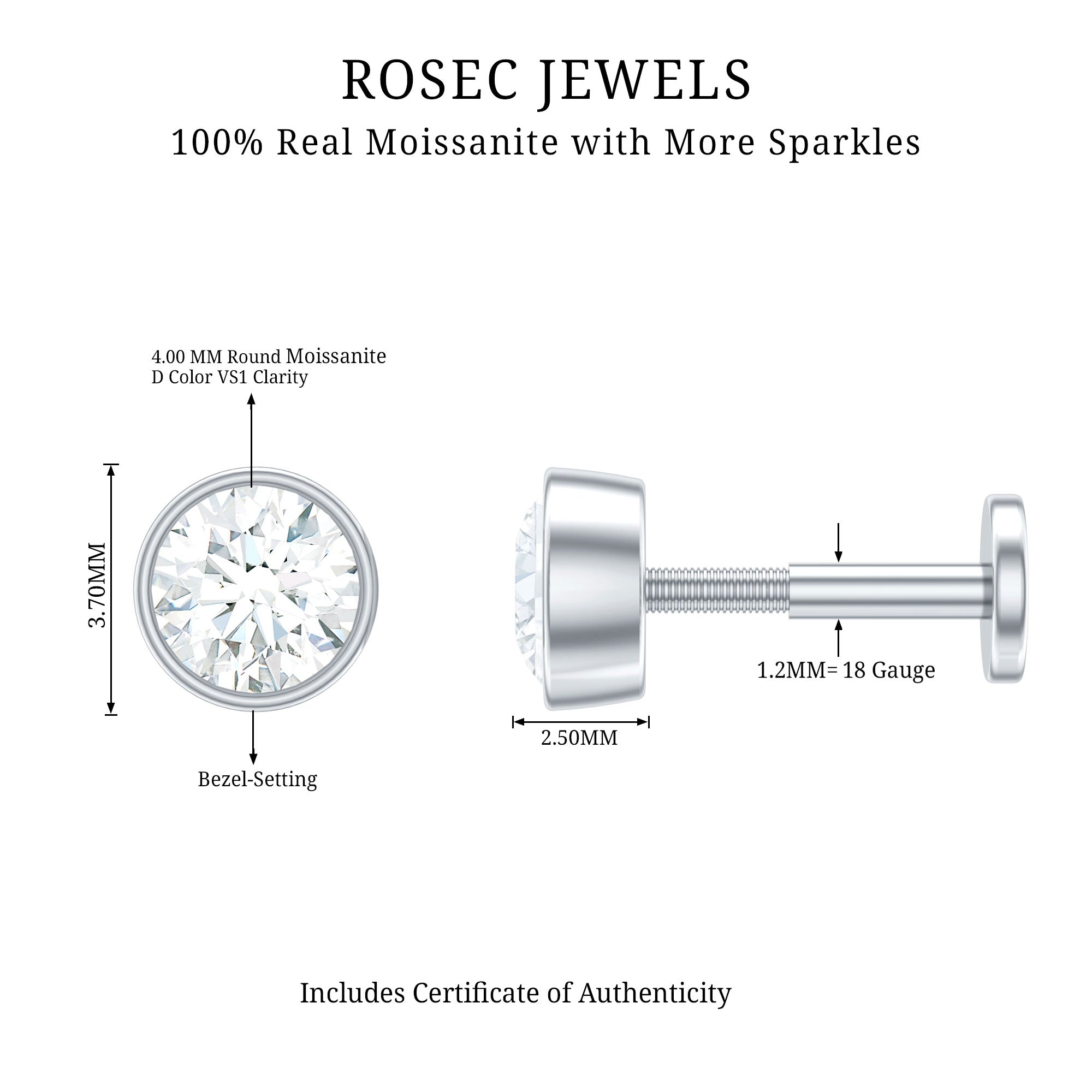 Bezel Set Round Moissanite Earring for Tragus Piercing