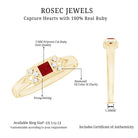 Wear this beautiful Engagement Ring everywhere you go. The 3X3 MM Princess Cut Ruby is set as Solitaire with Round Diamond around. Grab this ring for your lady love and make her feel more special on your Wedding Anniversary.