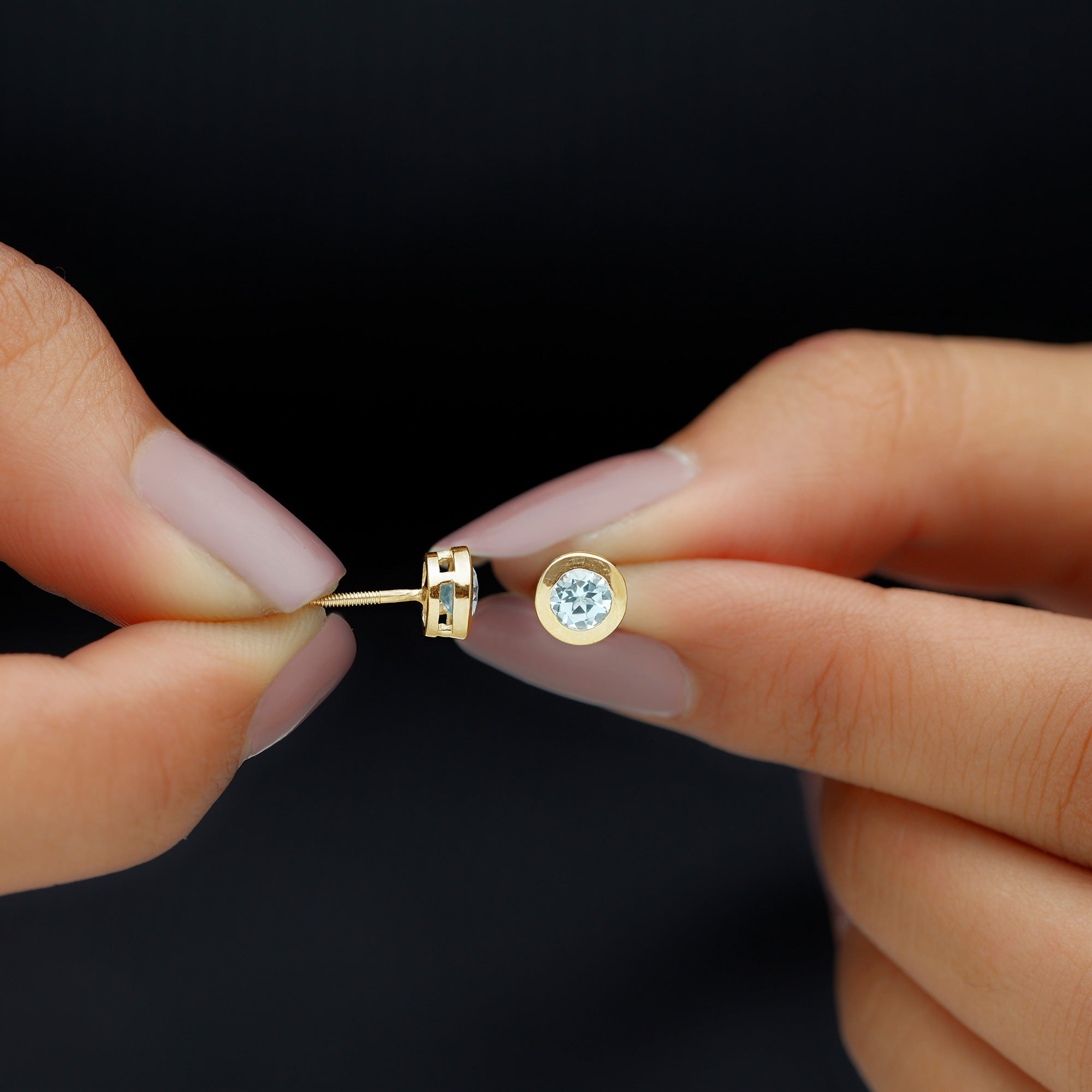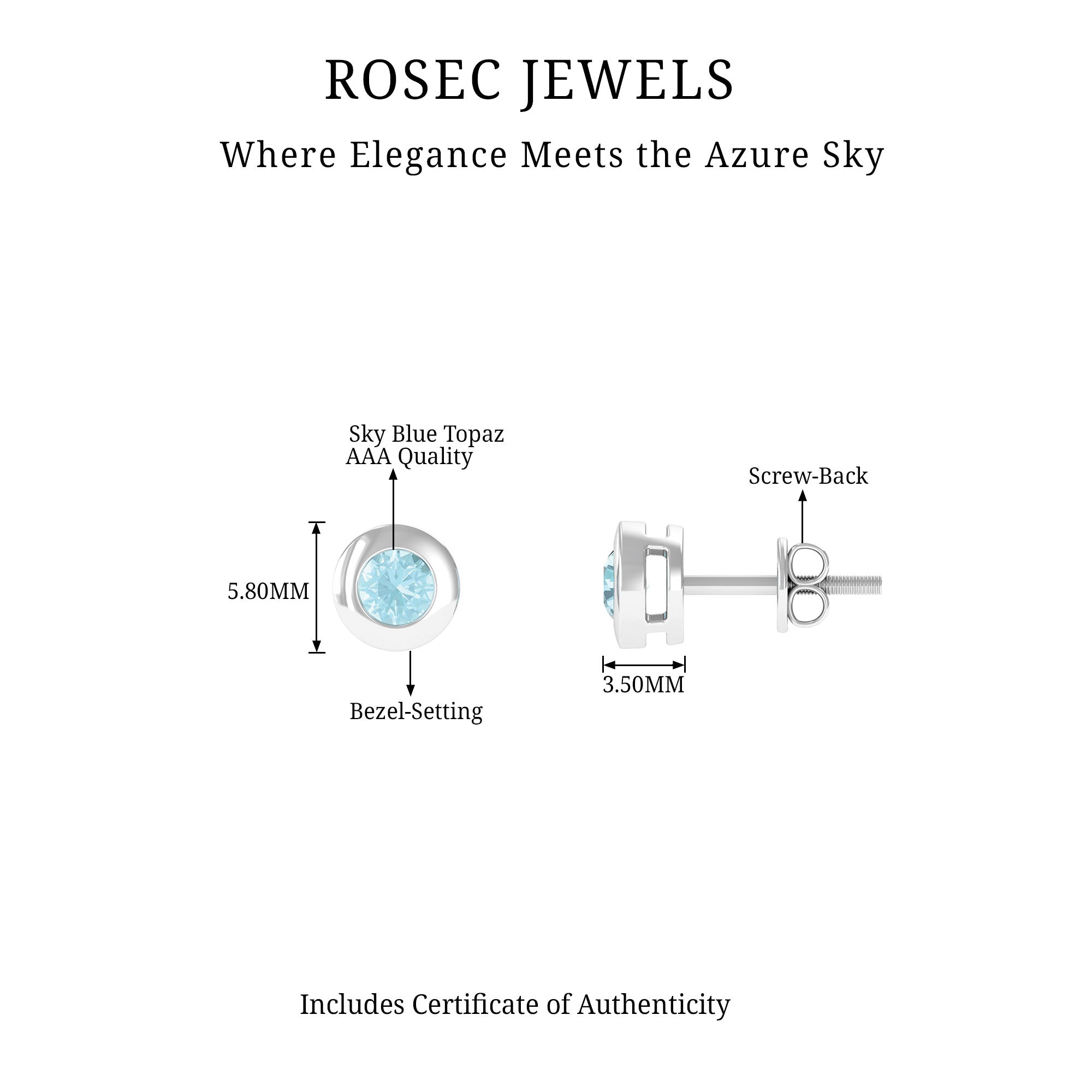 These delicate Sky Blue Topaz Earrings are perfect for celebrating any occasion. Featuring a Round Shape Sky Blue Topaz secured in Bezel Setting set as a Solitaire. The Screw Back Closure will keep these Simple Earrings secured in place. Shine all day in these Blue Topaz Stud Earrings for Women as you pair them with your casual, formal, or evening attire.