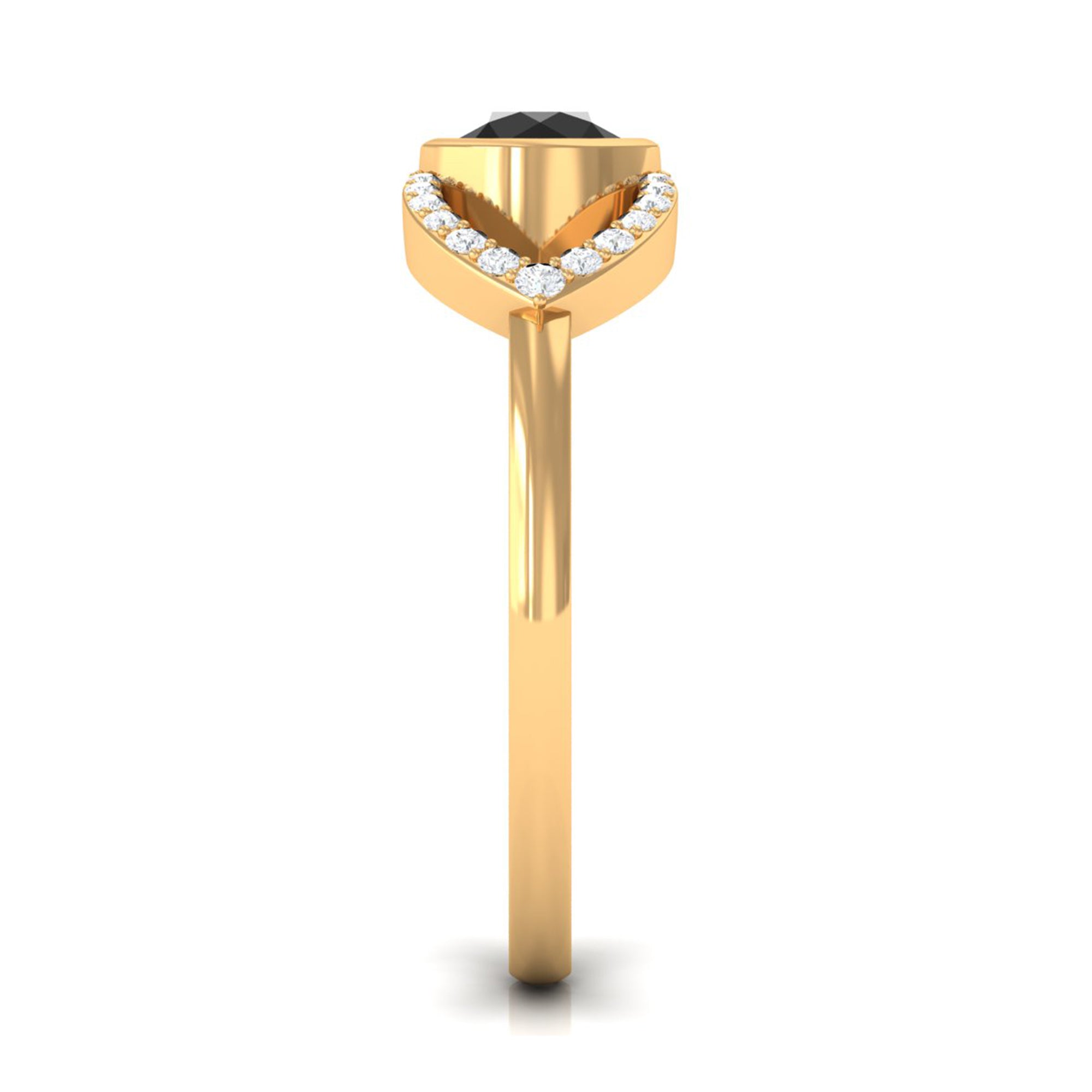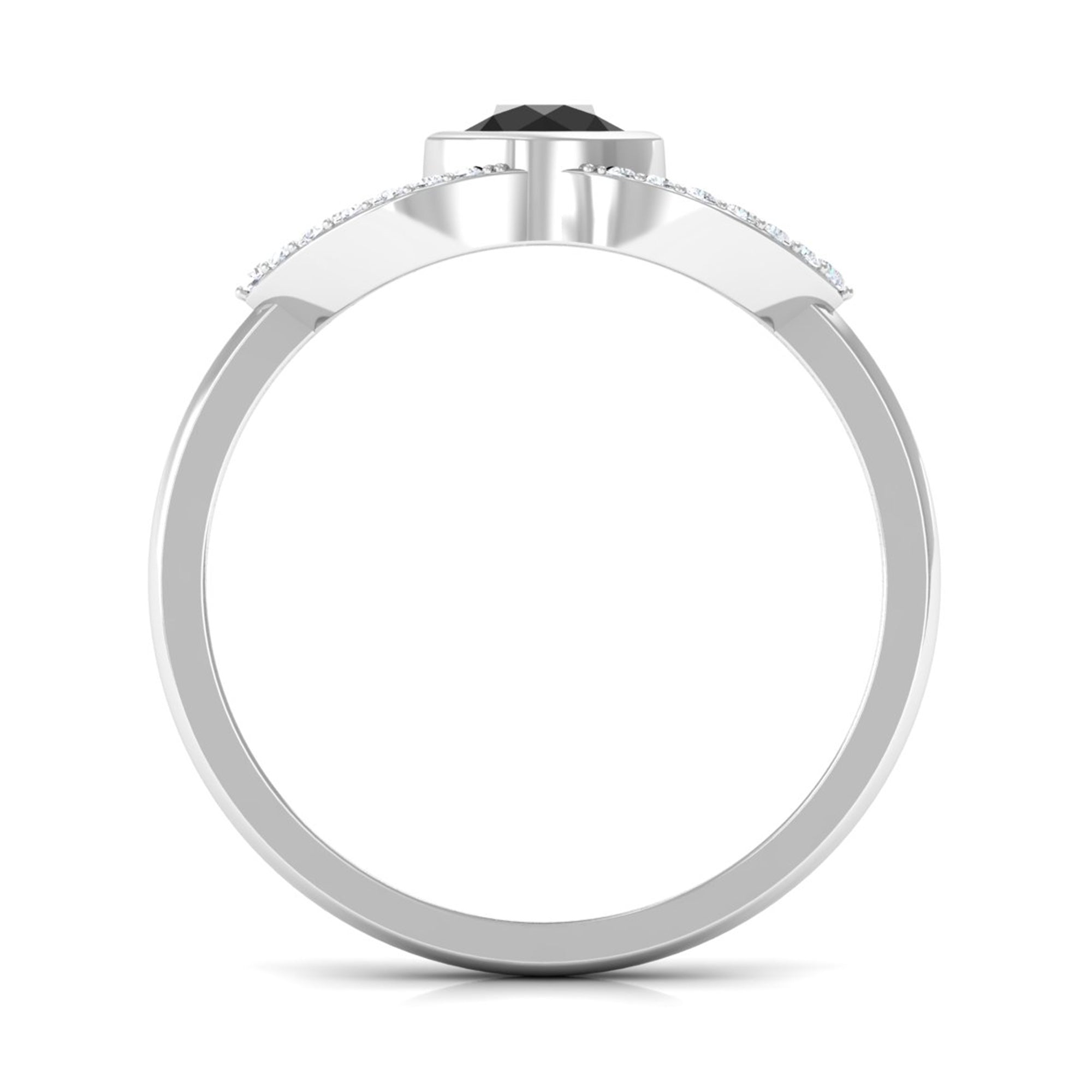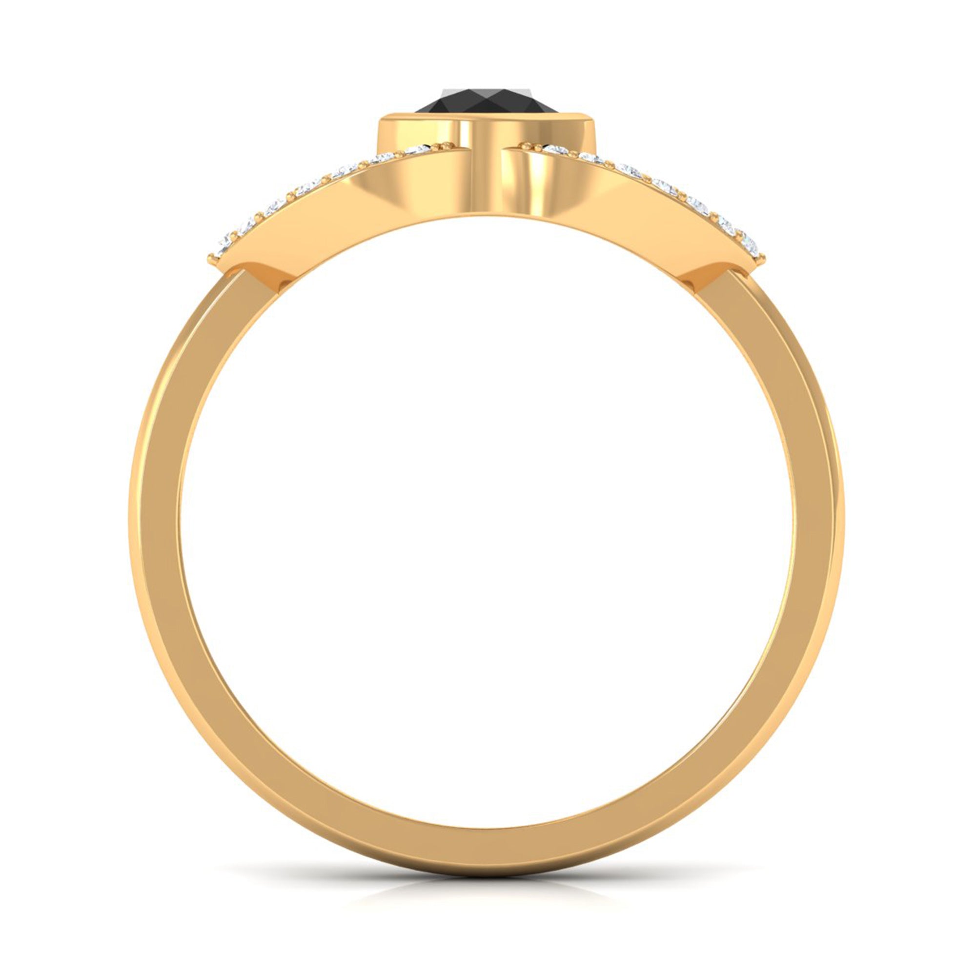 Impress your loved one with your excellent choice in fine jewelry, this solitaire ring is embellished with Round Shape black spinel set in bezel setting with Round Shape Diamond in split shank.