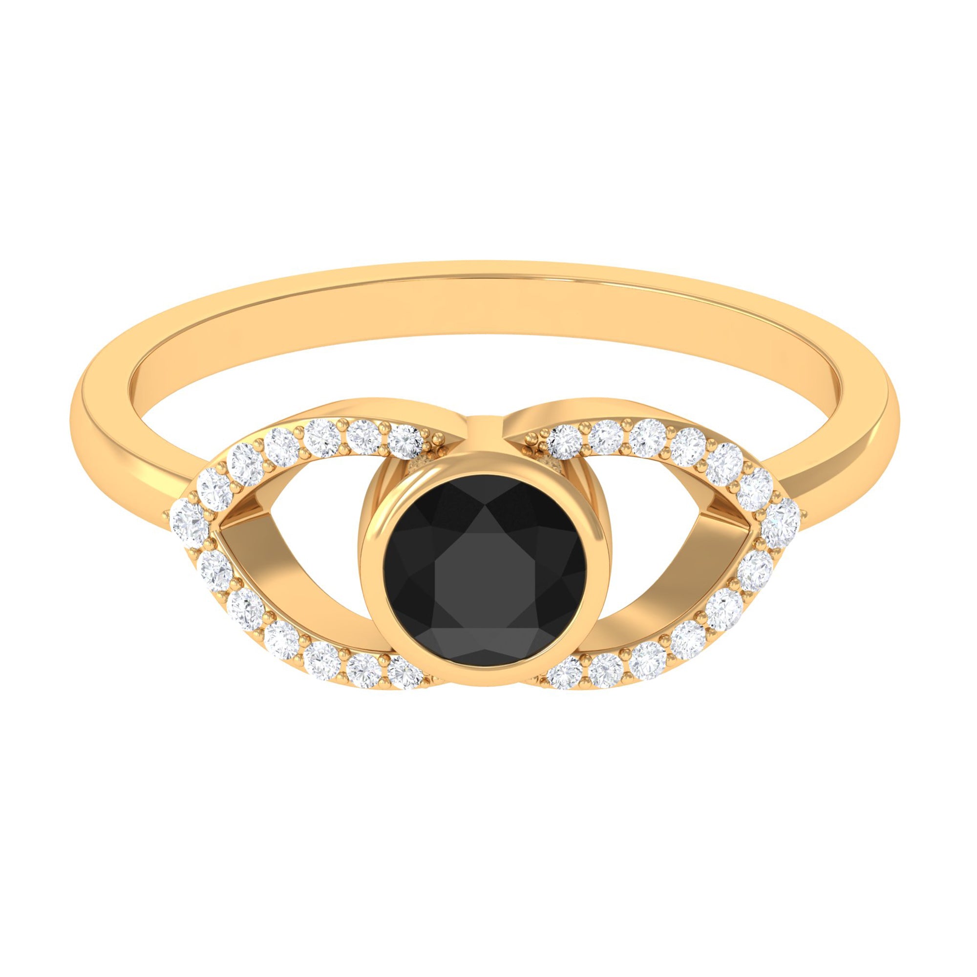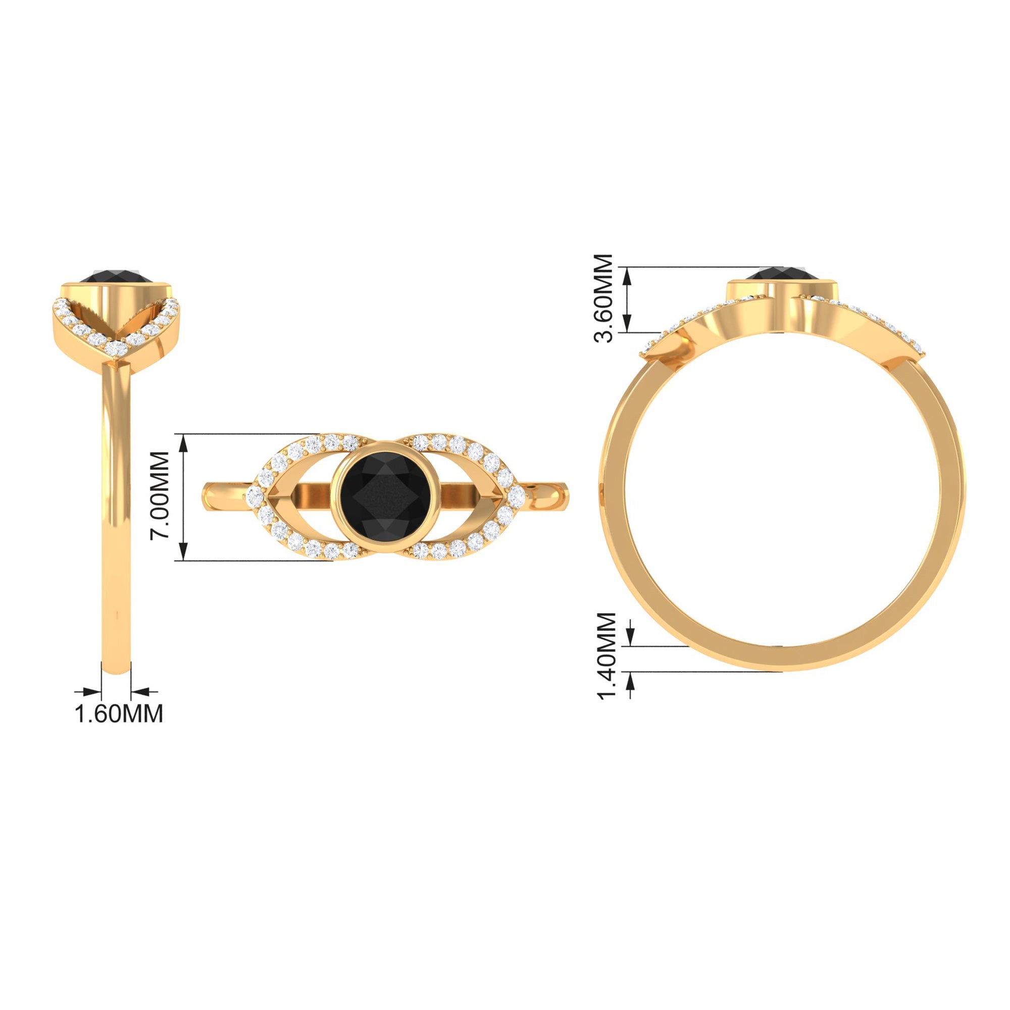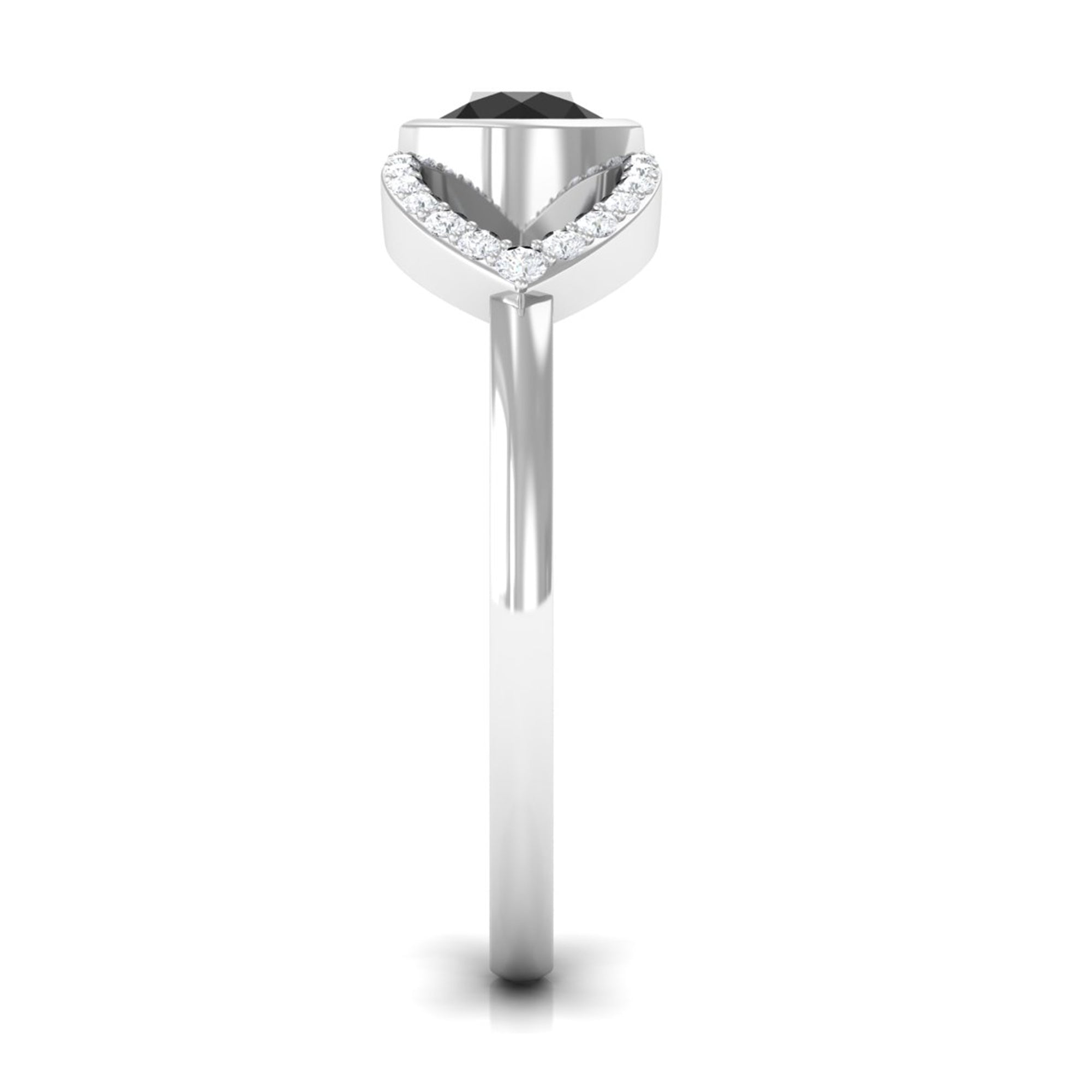 Impress your loved one with your excellent choice in fine jewelry, this solitaire ring is embellished with Round Shape black spinel set in bezel setting with Round Shape Diamond in split shank.