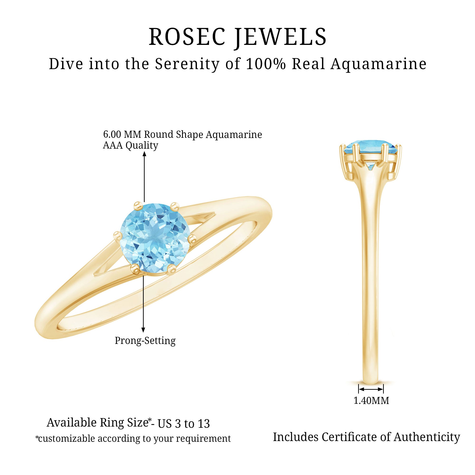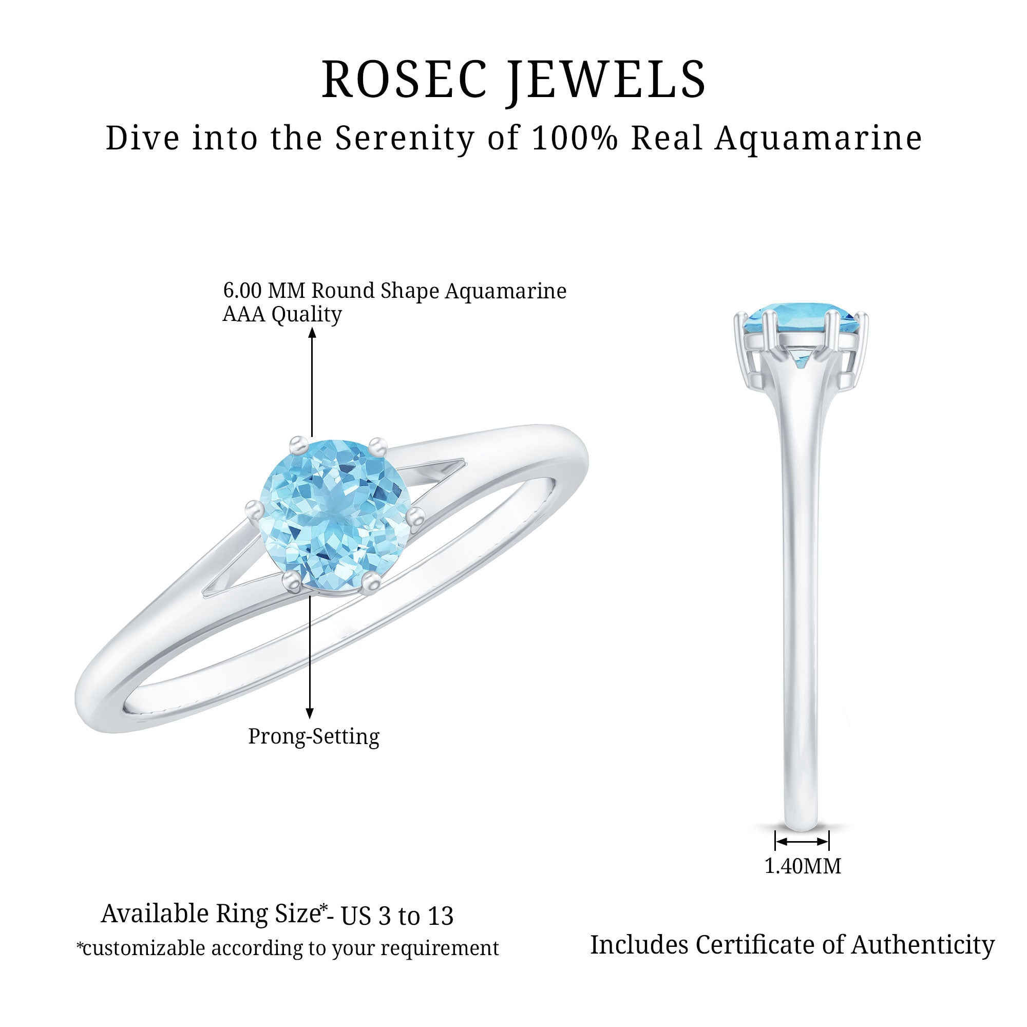 Our aquamarine gemstone rings are crafted in styles that bring out the brilliance of the stone — from sleek modern solitaires to ornate vintage-inspired settings.