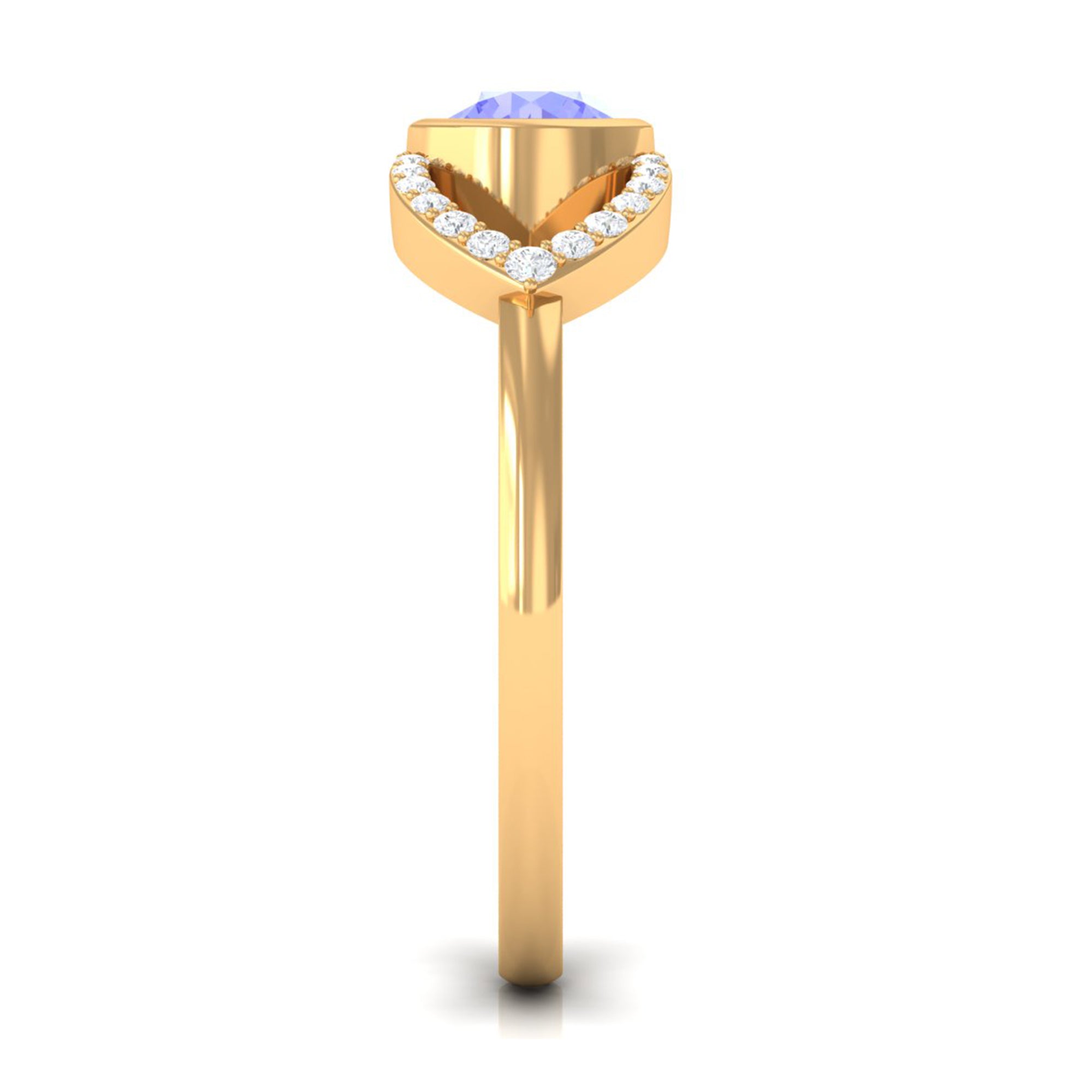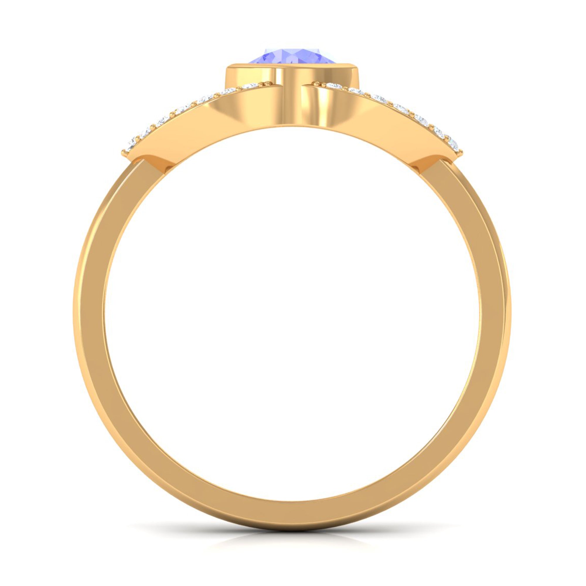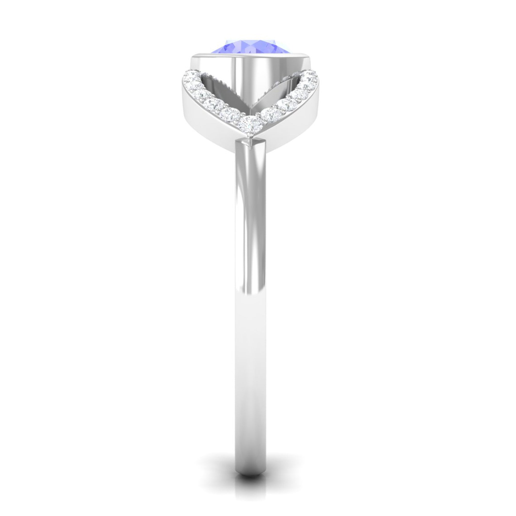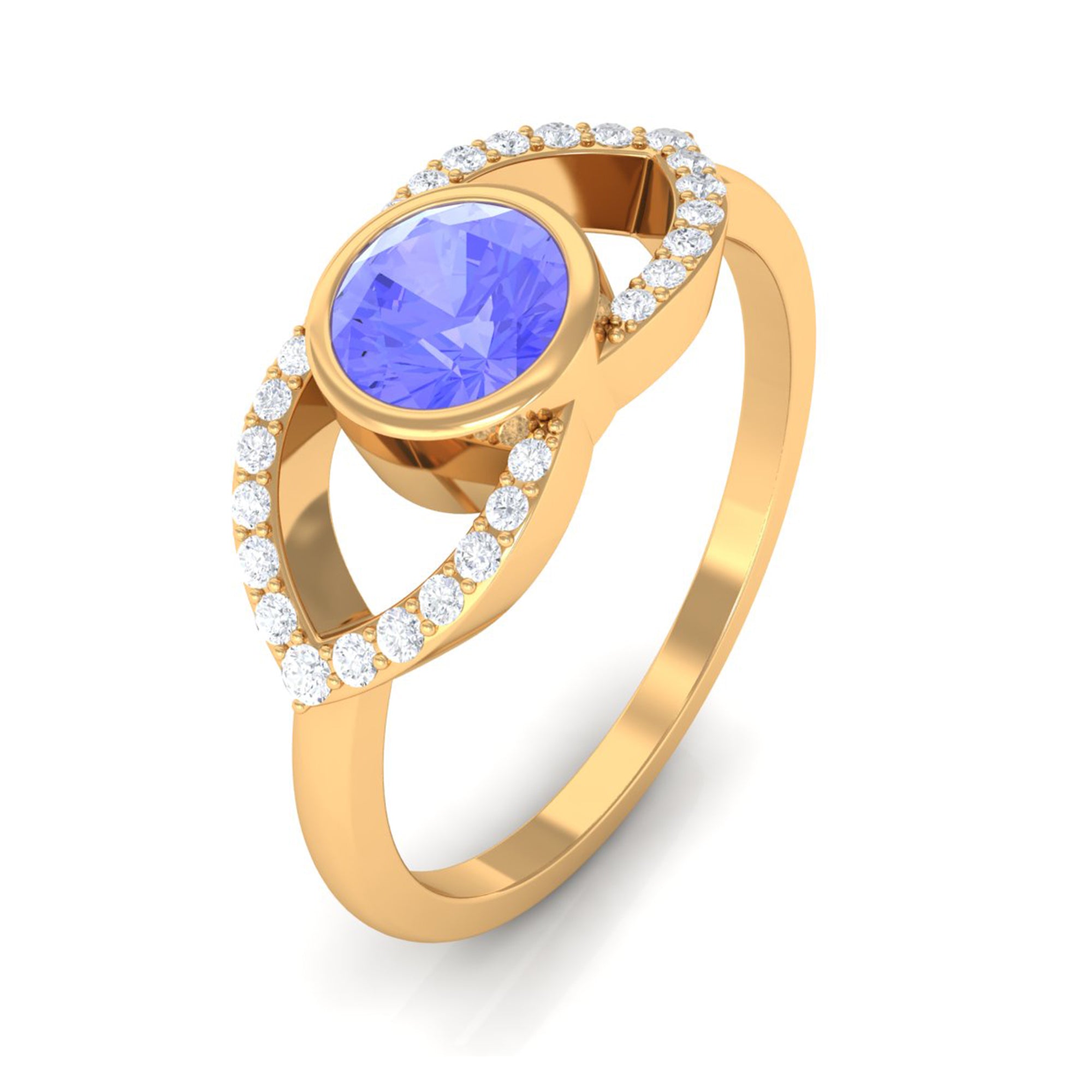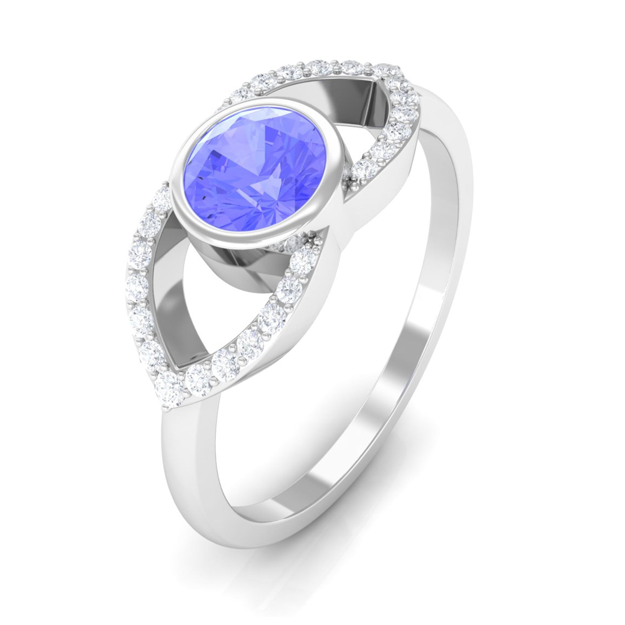 Bezel Set Tanzanite Solitaire Split Shank Ring with Diamond