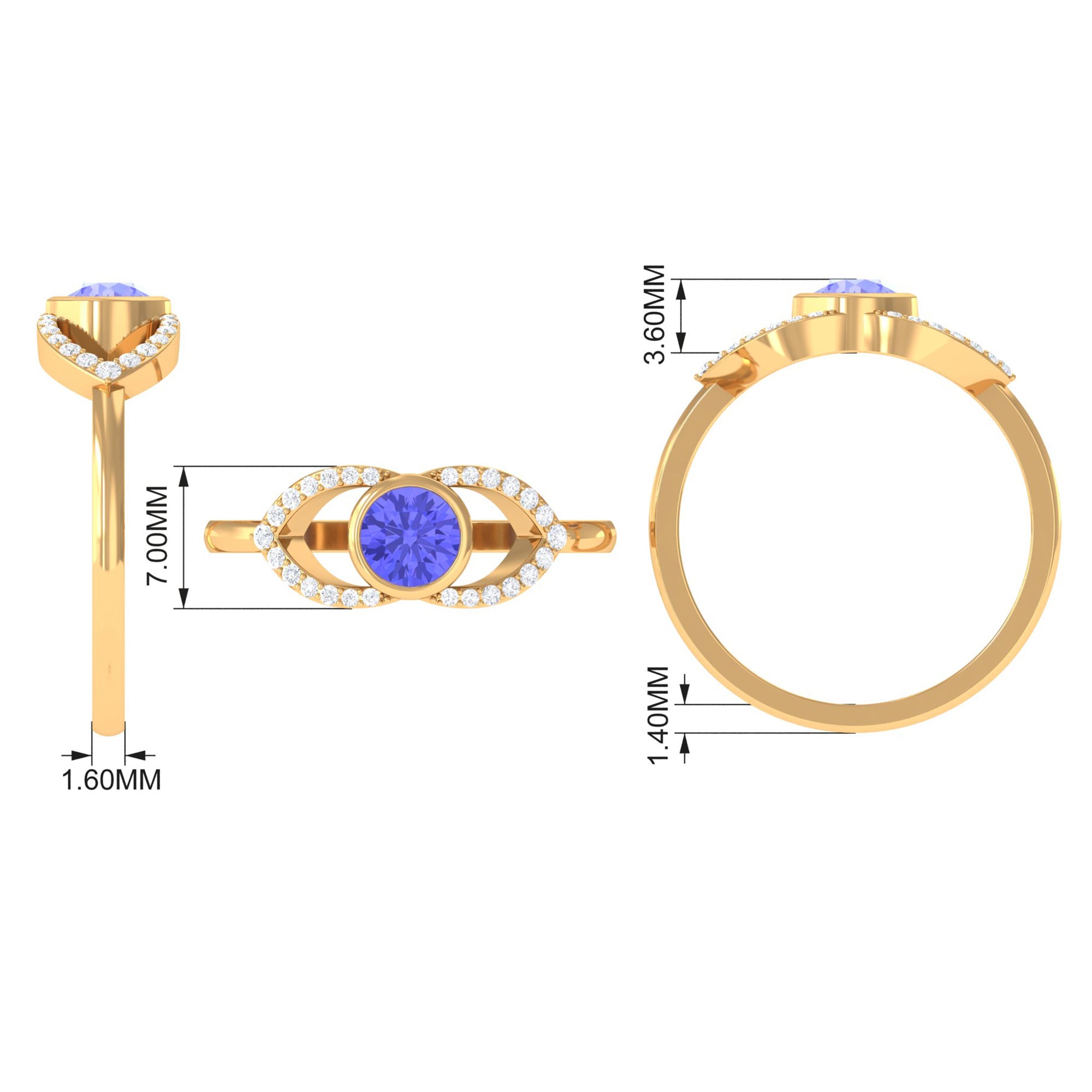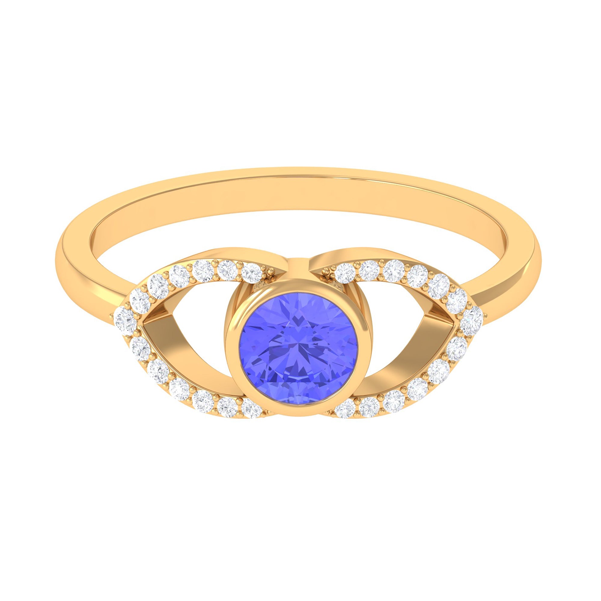Bring eye-catching color to your look with this gorgeous Blue Gemstone and Diamond Ring, embellished with Round Shape Tanzanite as Solitaire in Bezel Setting with Diamond Accents on Split Shank. This ring is the start of something beautiful.