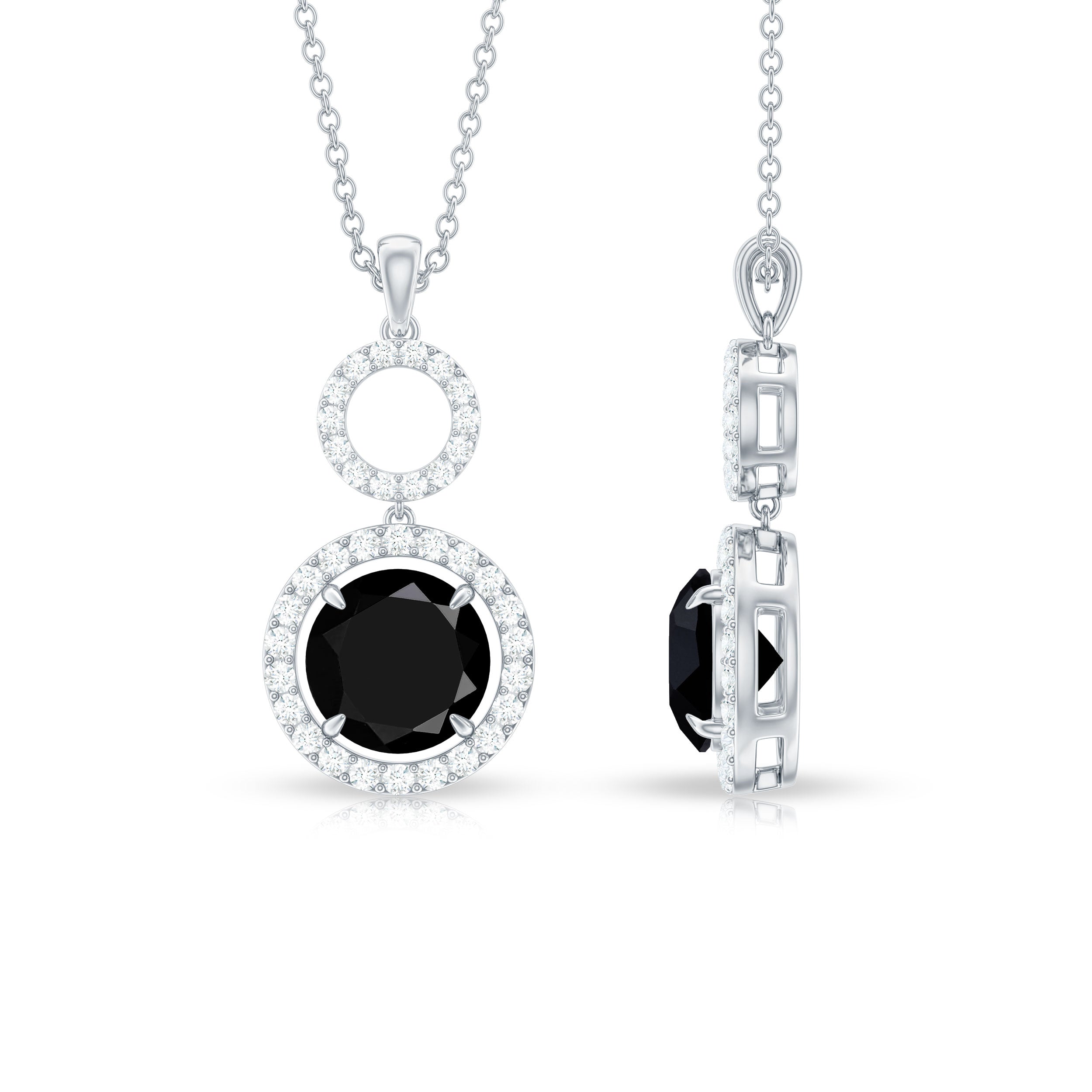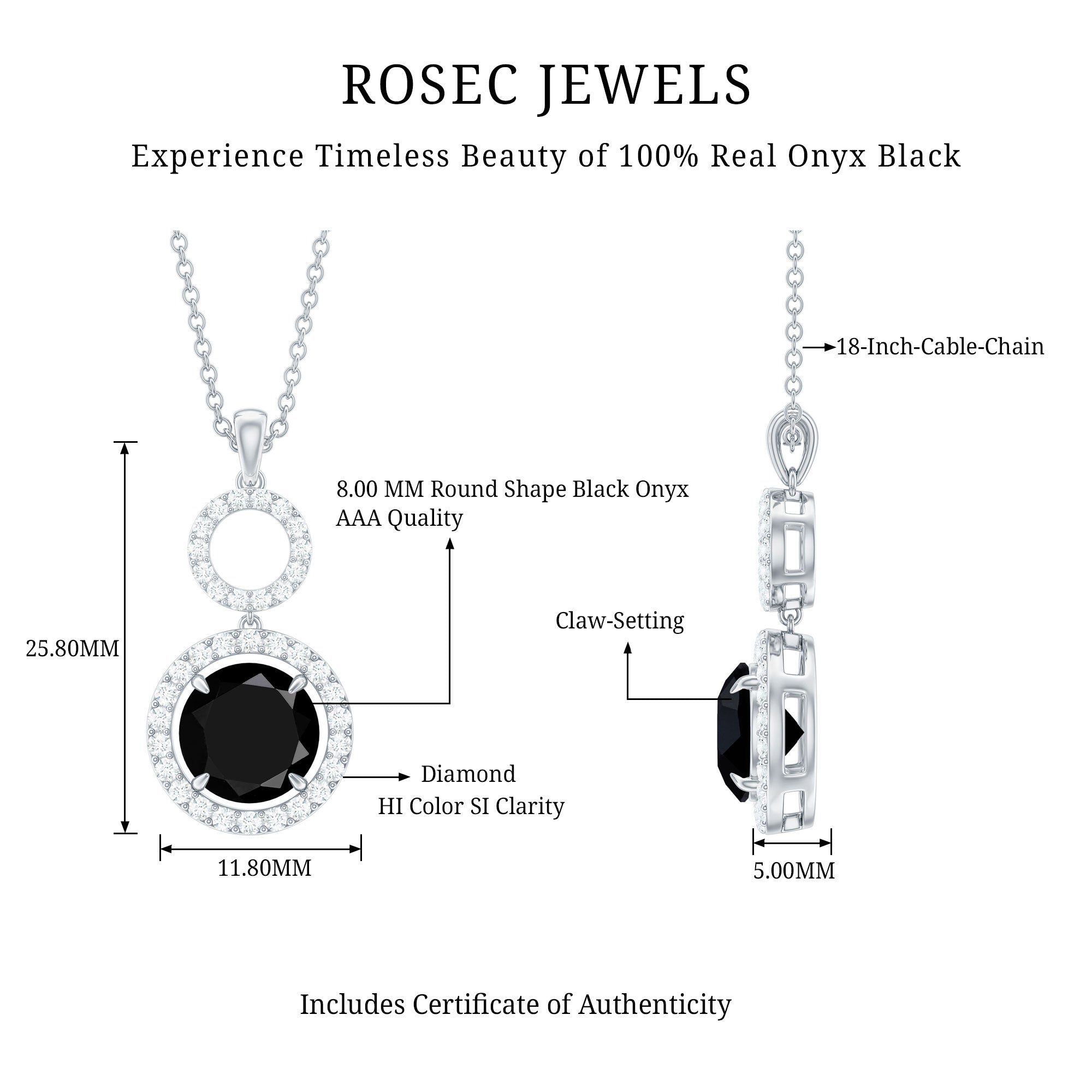Black Onyx and Diamond Halo Dangle Pendant Necklace