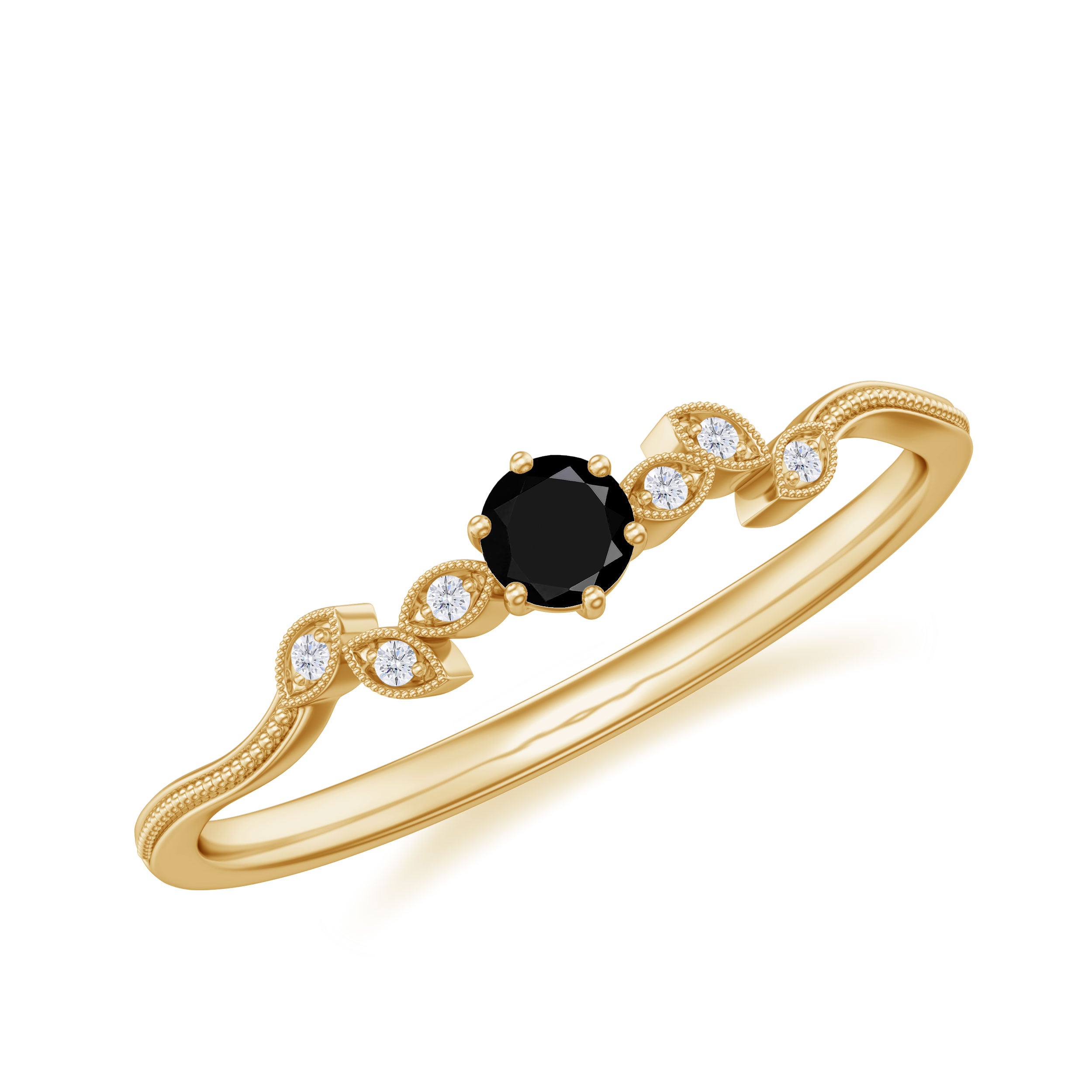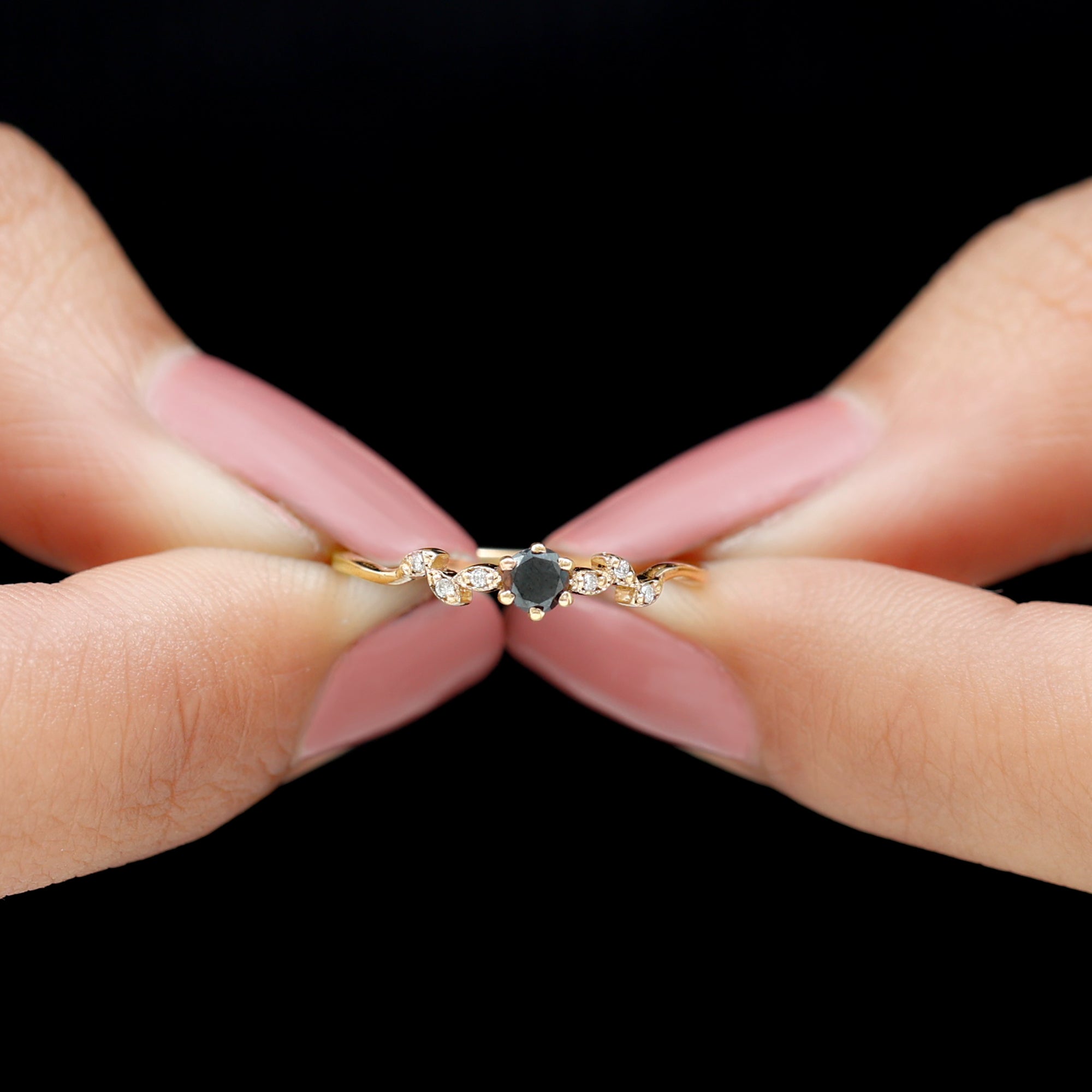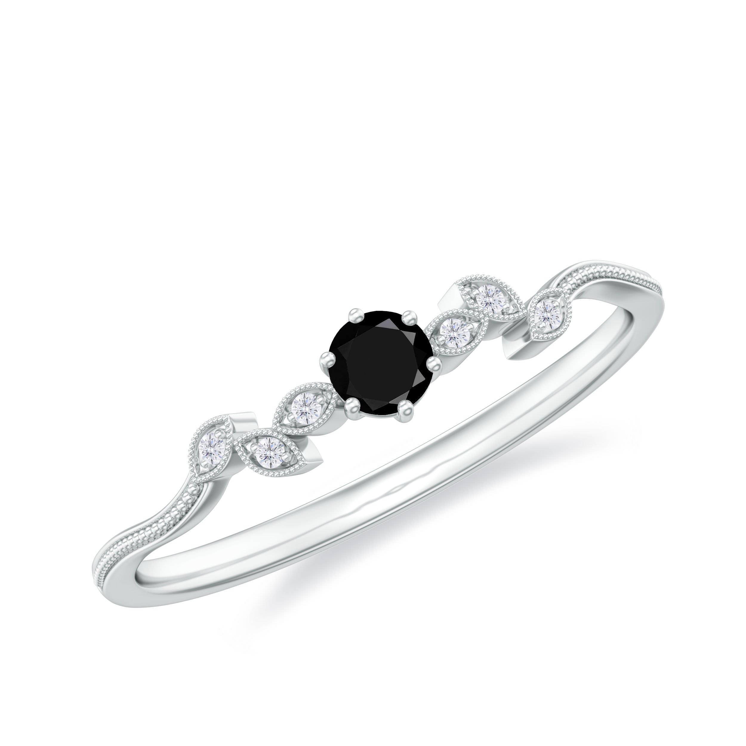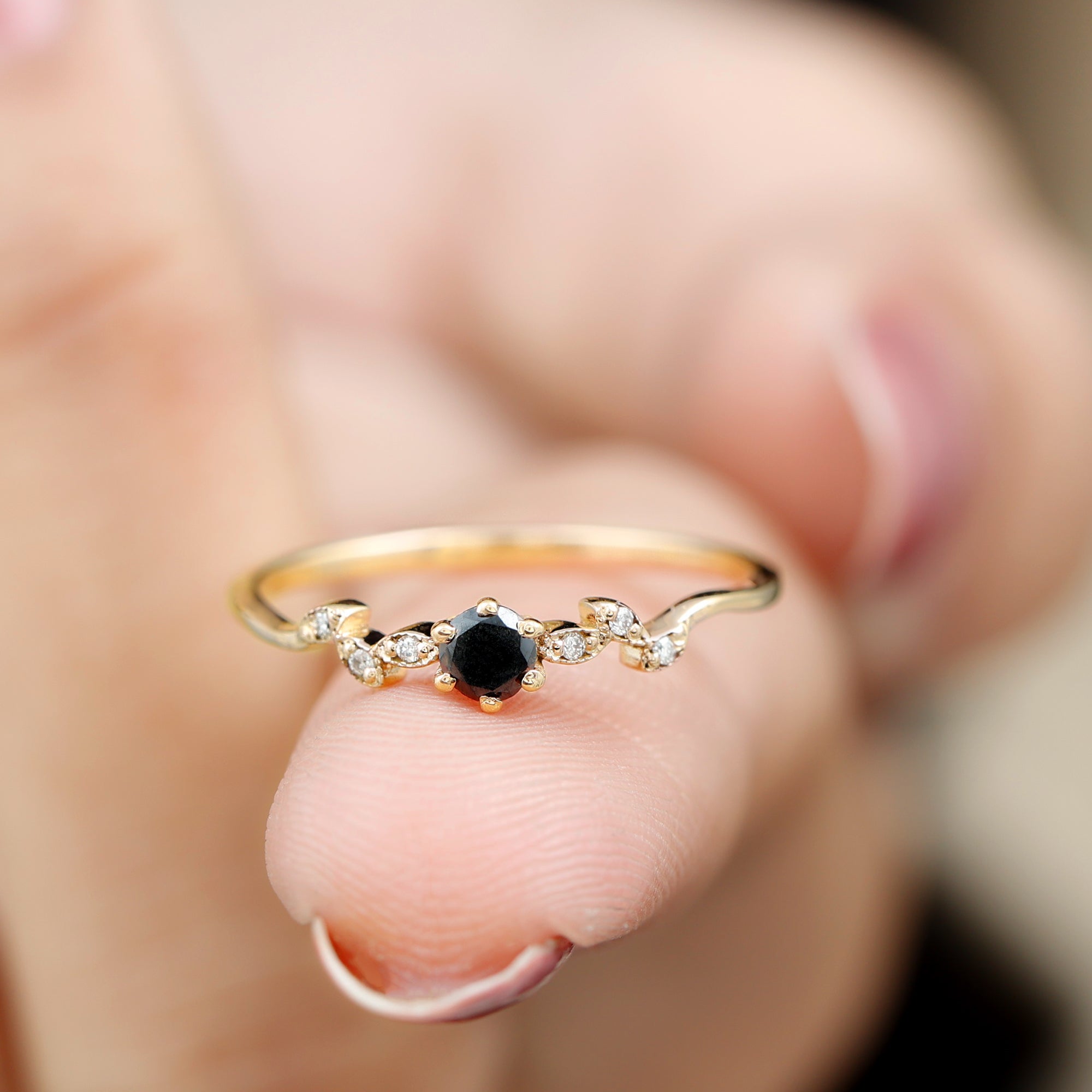 This exquisite promise ring boasts a minimalist design infused with a hint of nature-inspired elegance. At the heart of the ring lies a dazzling 4mm Round shape Black Onyx stone set at the center, elegantly set in a prong setting, accompanied by petite round shape Diamond stones arranged in a leaf motif. The beaded metal band introduces a distinctive texture to the ring, resulting in a subtle yet striking contrast. This Black Onyx Promise Ring is ideal for individuals who value understated beauty and seek a promise ring that embodies both elegance and uniqueness. It serves as a beautiful emblem of love and commitment, destined to be cherished for a lifetime. This Minimal ring is a classic piece that will remain timeless and never fade from style. Available in US sizes from 3 to 13, delivered in a signature jewelry box. Whether it is a promise ring, a gift for Valentine’s Day, or a token that signifies how much someone means to you, it is designed to warm hearts. It is straightforward, it is significant, and it possesses just the right touch of sparkle. Combine it with other jewelry items, wear it as a representation of love, or present it to your beloved, this Black Onyx Ring for Her is the type of piece that anyone would be reluctant to remove. Therefore, if your heart has been longing to express something special, allow this ring to convey your feelings.