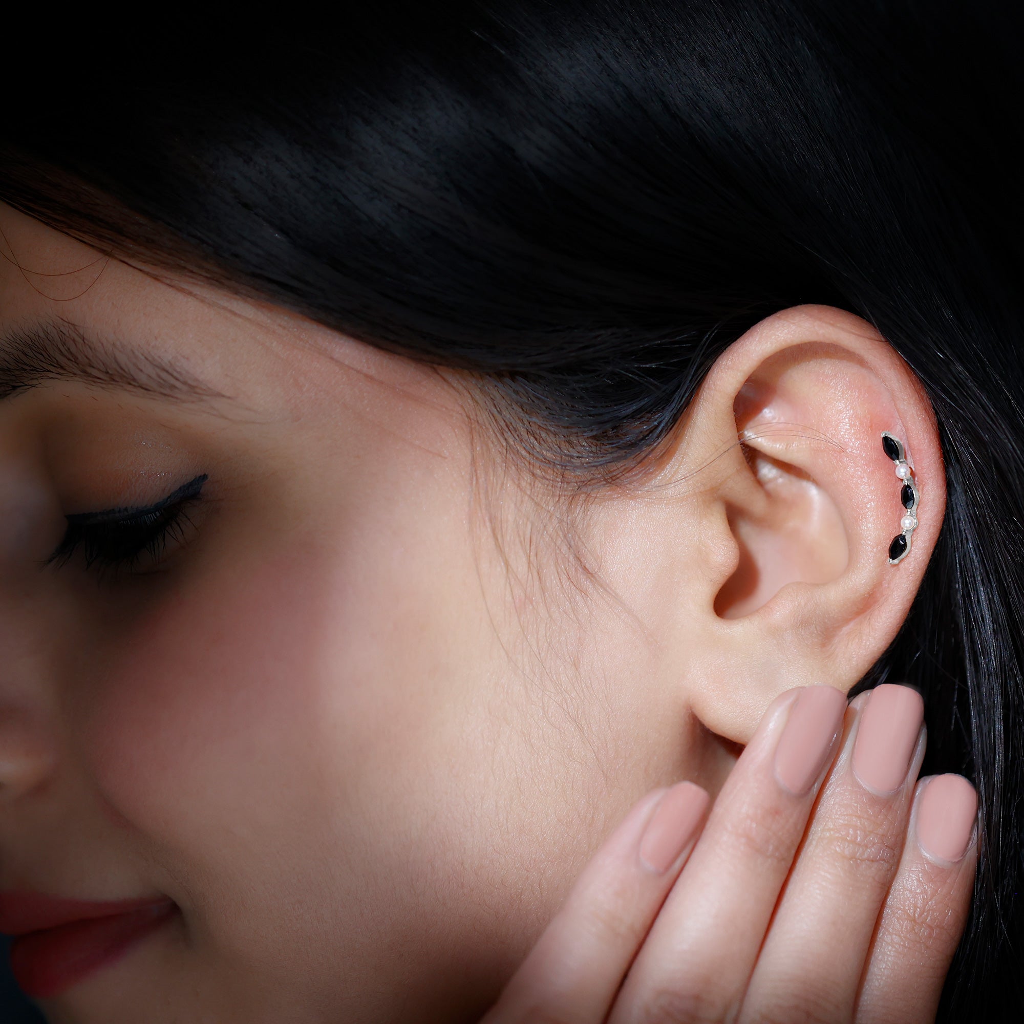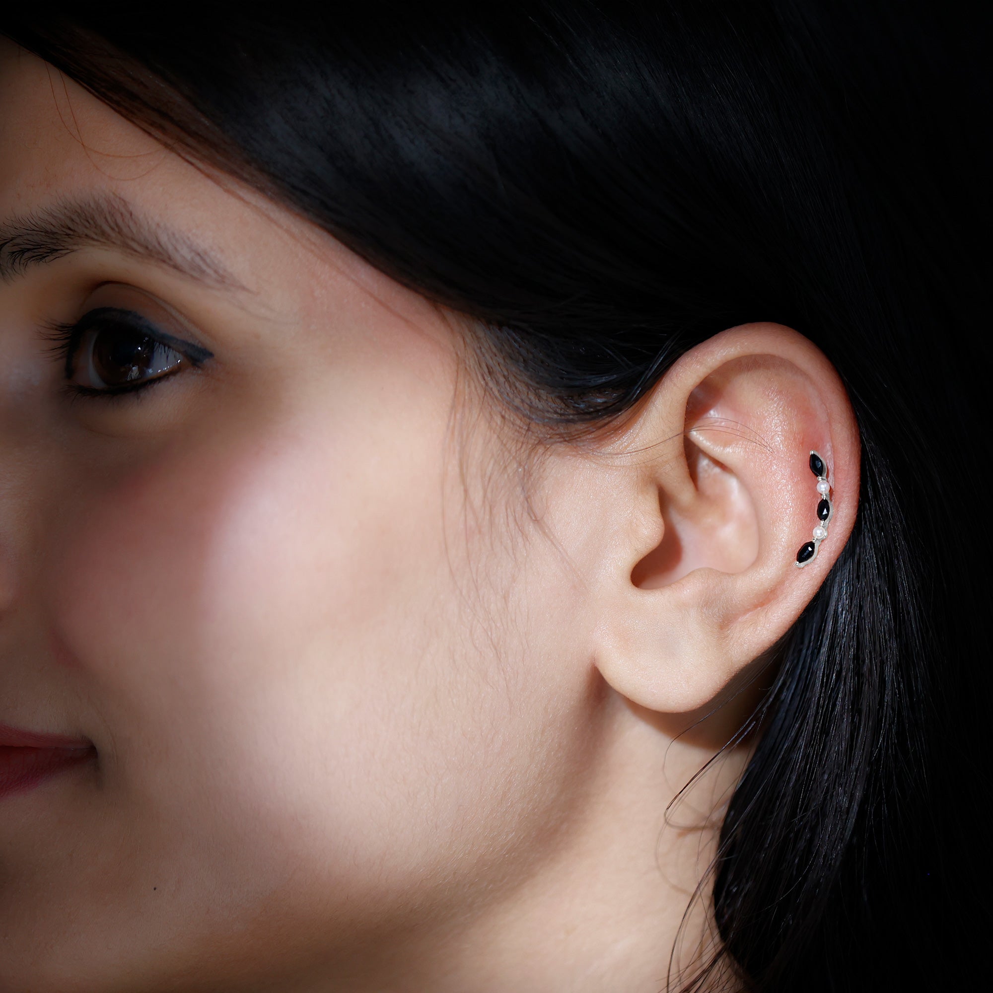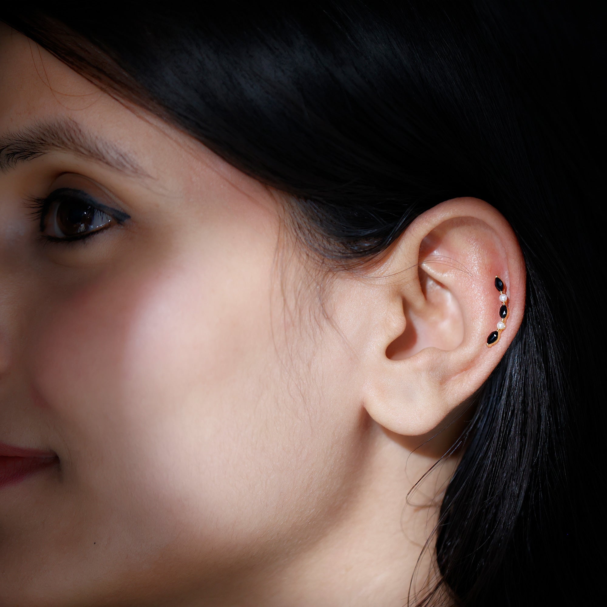 Black Onyx and Pearl Ear Crawler Earring for Helix Piercing