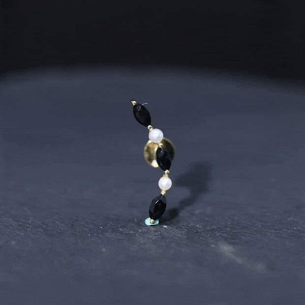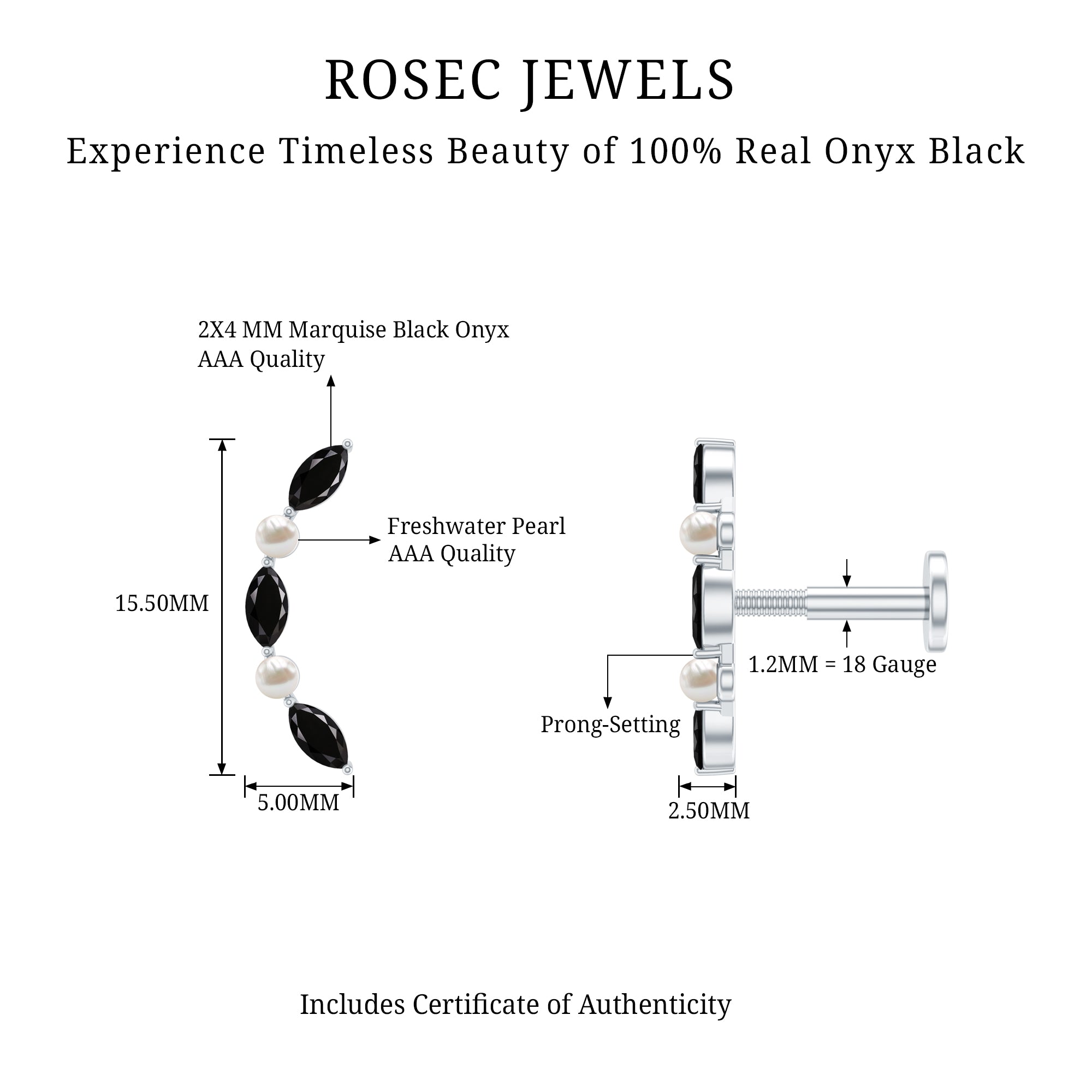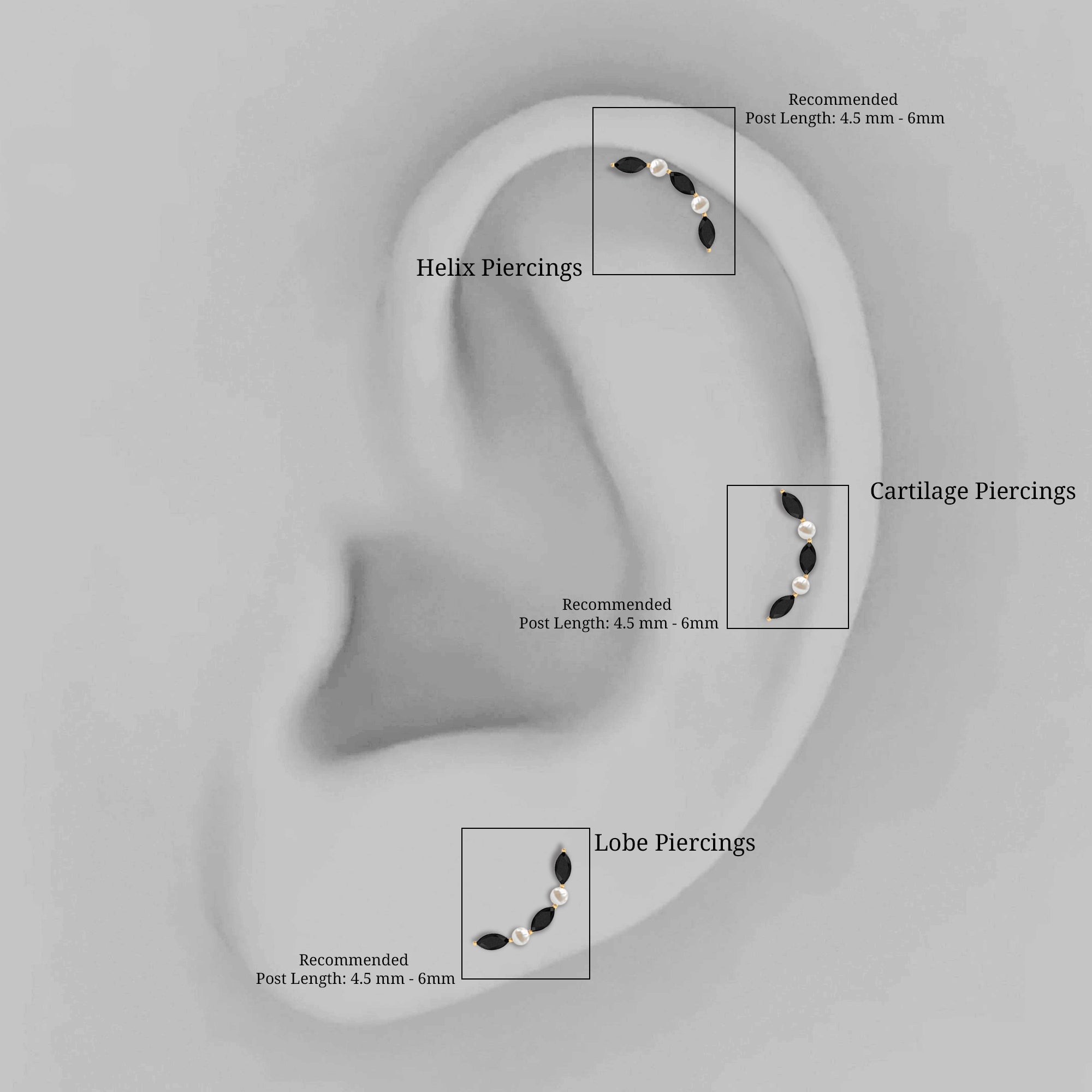 Black Onyx and Pearl Ear Crawler Earring for Helix Piercing