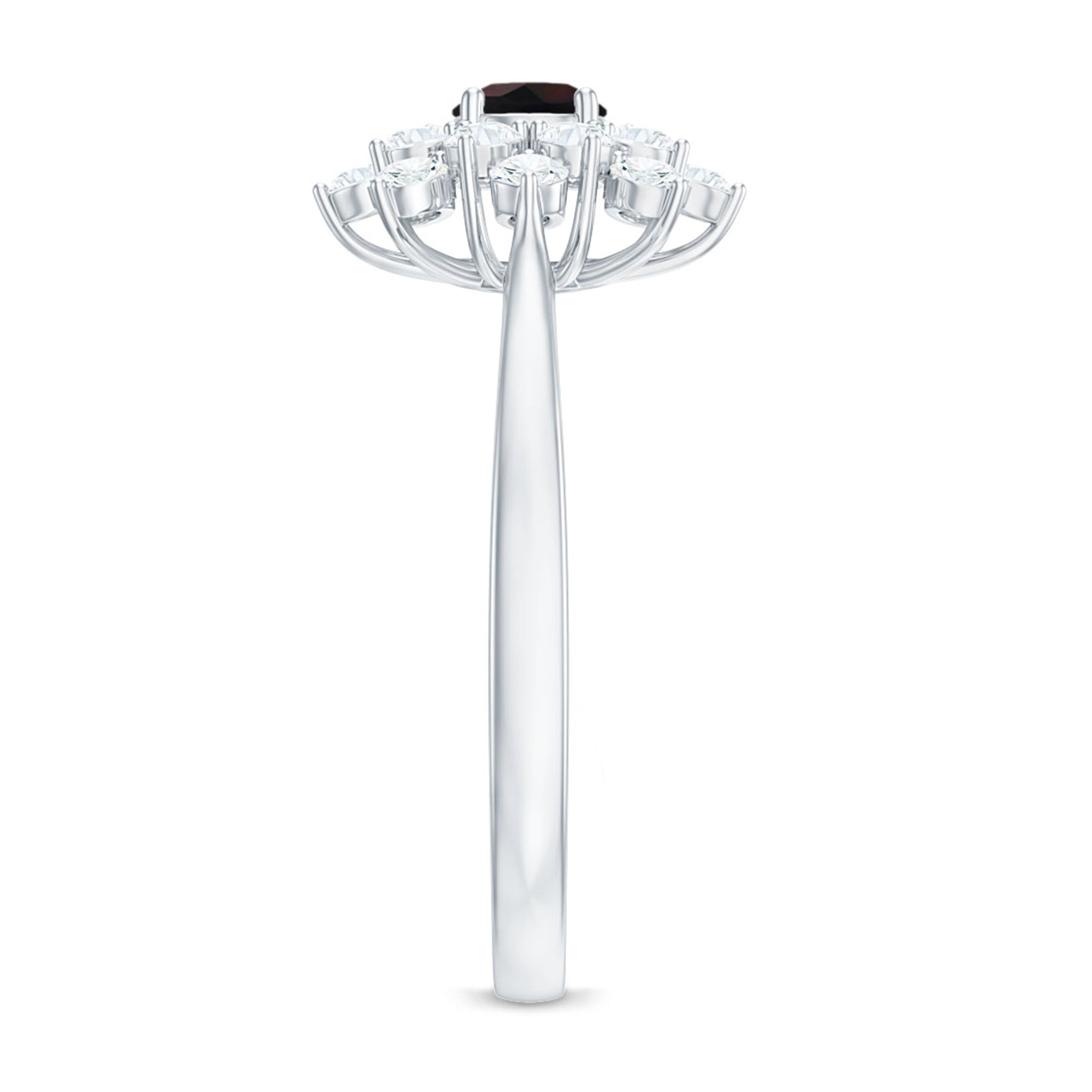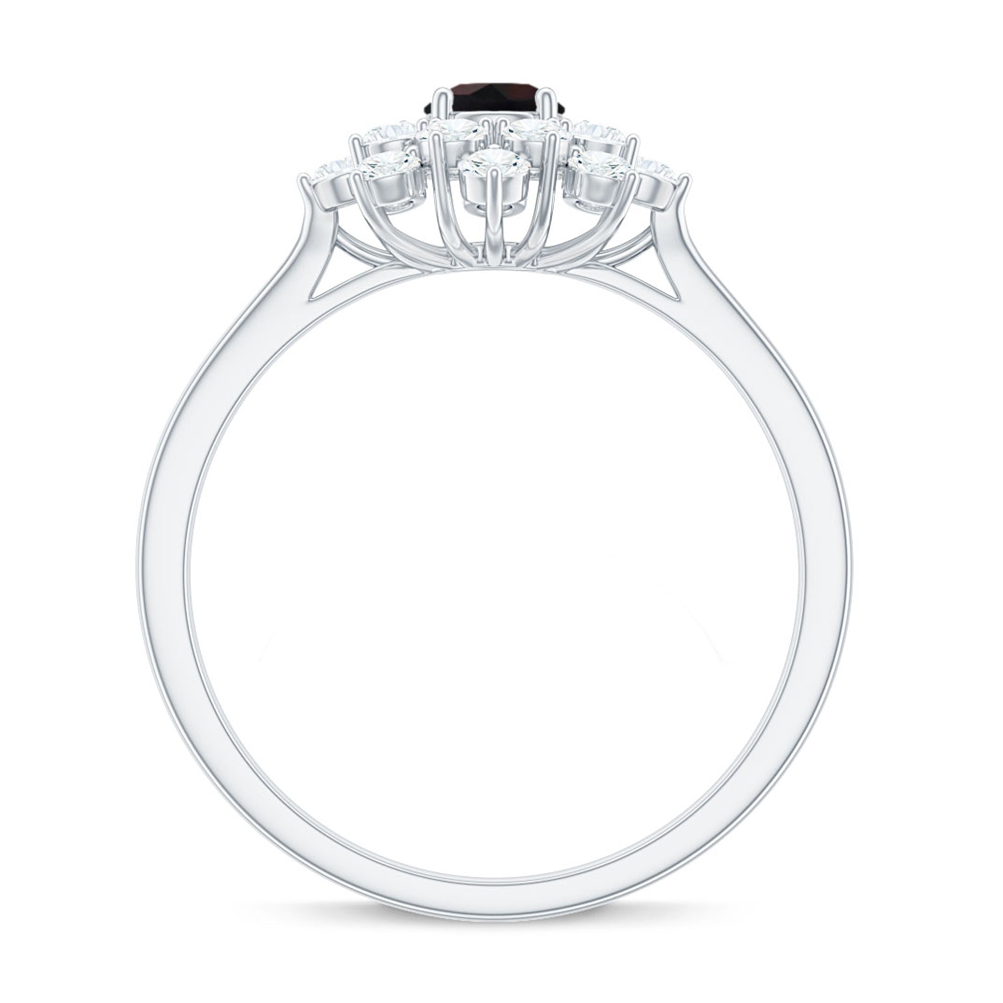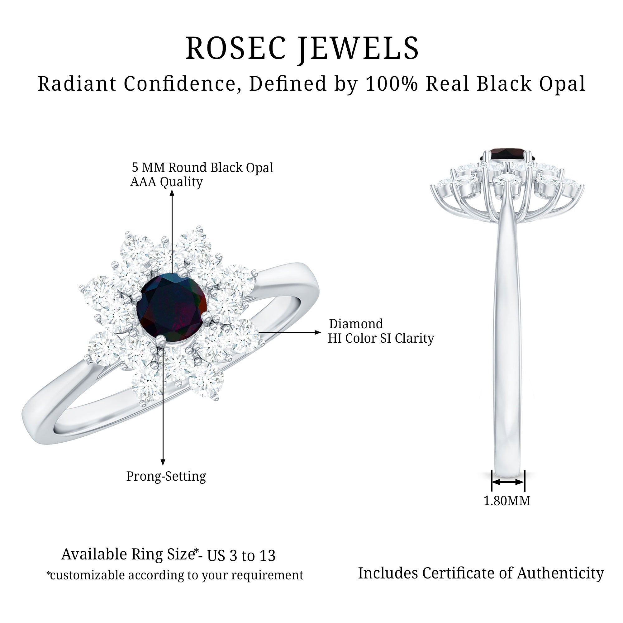 Black Opal and Diamond Flower Cluster Engagement Ring