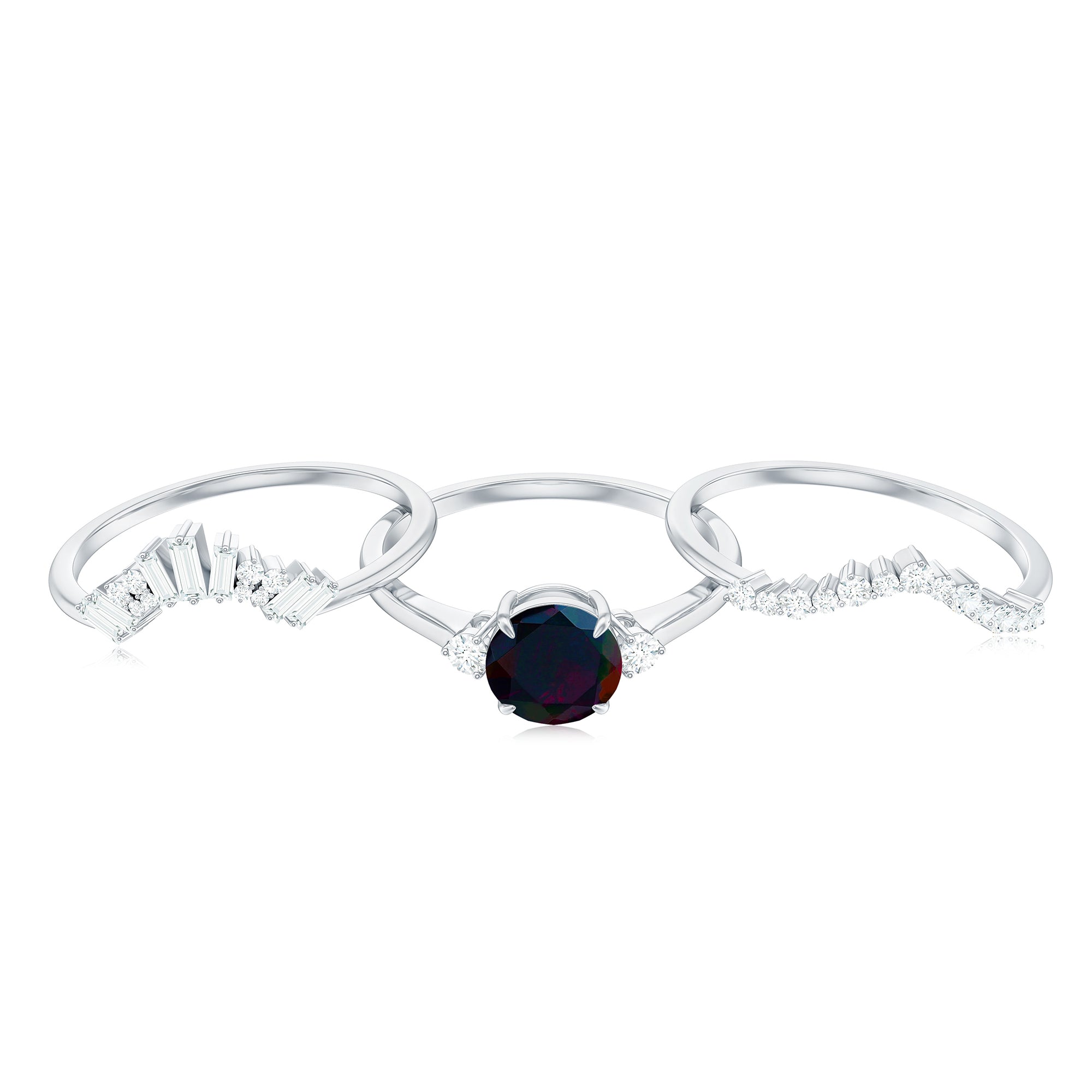 Black Opal Designer Trio Wedding Ring Set with Diamond