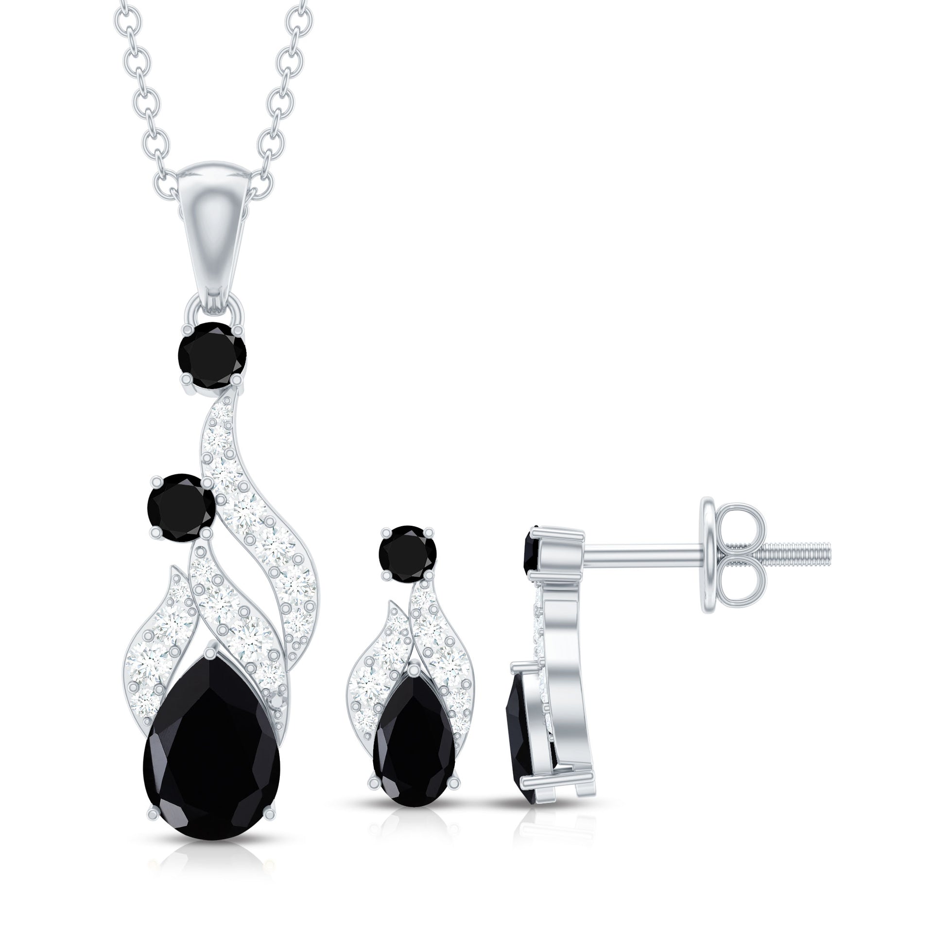Black Spinel and Diamond Bridal Dangle Jewelry Set