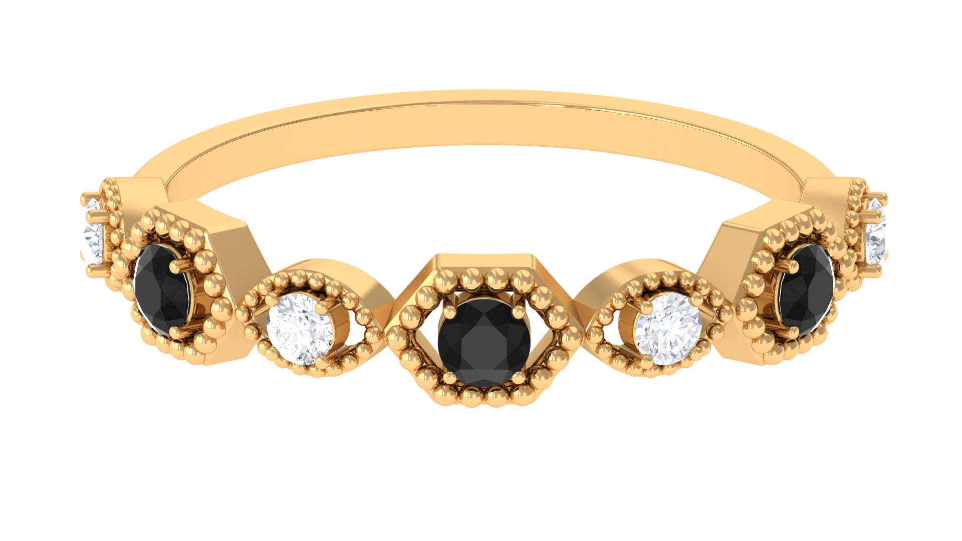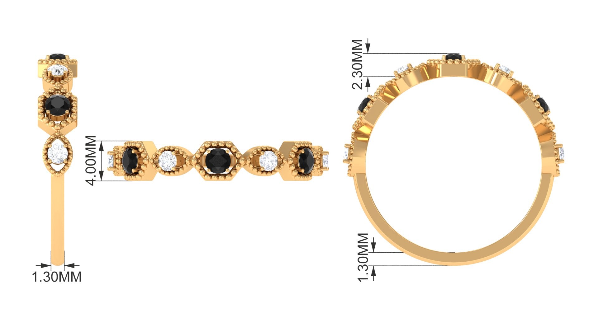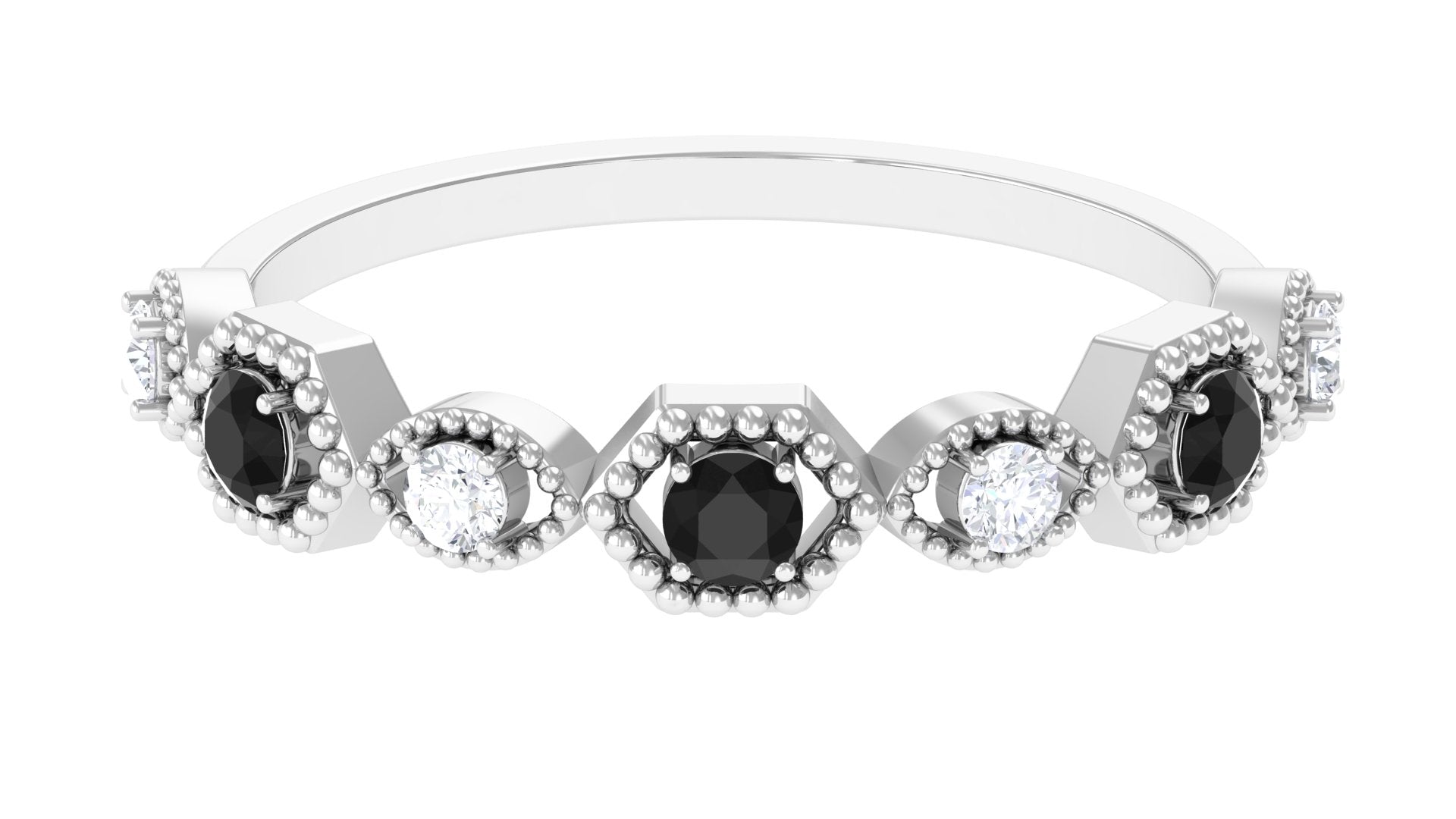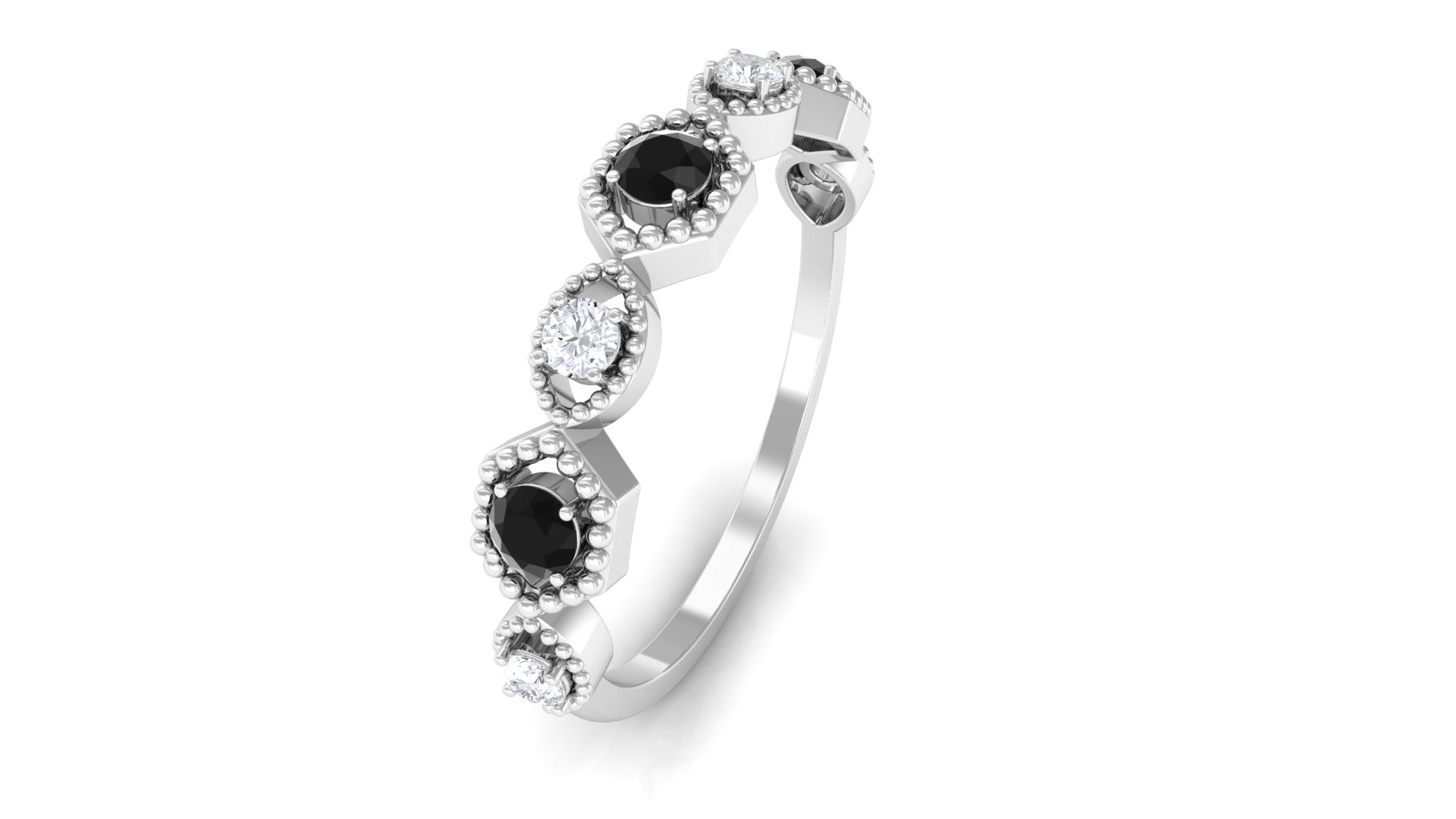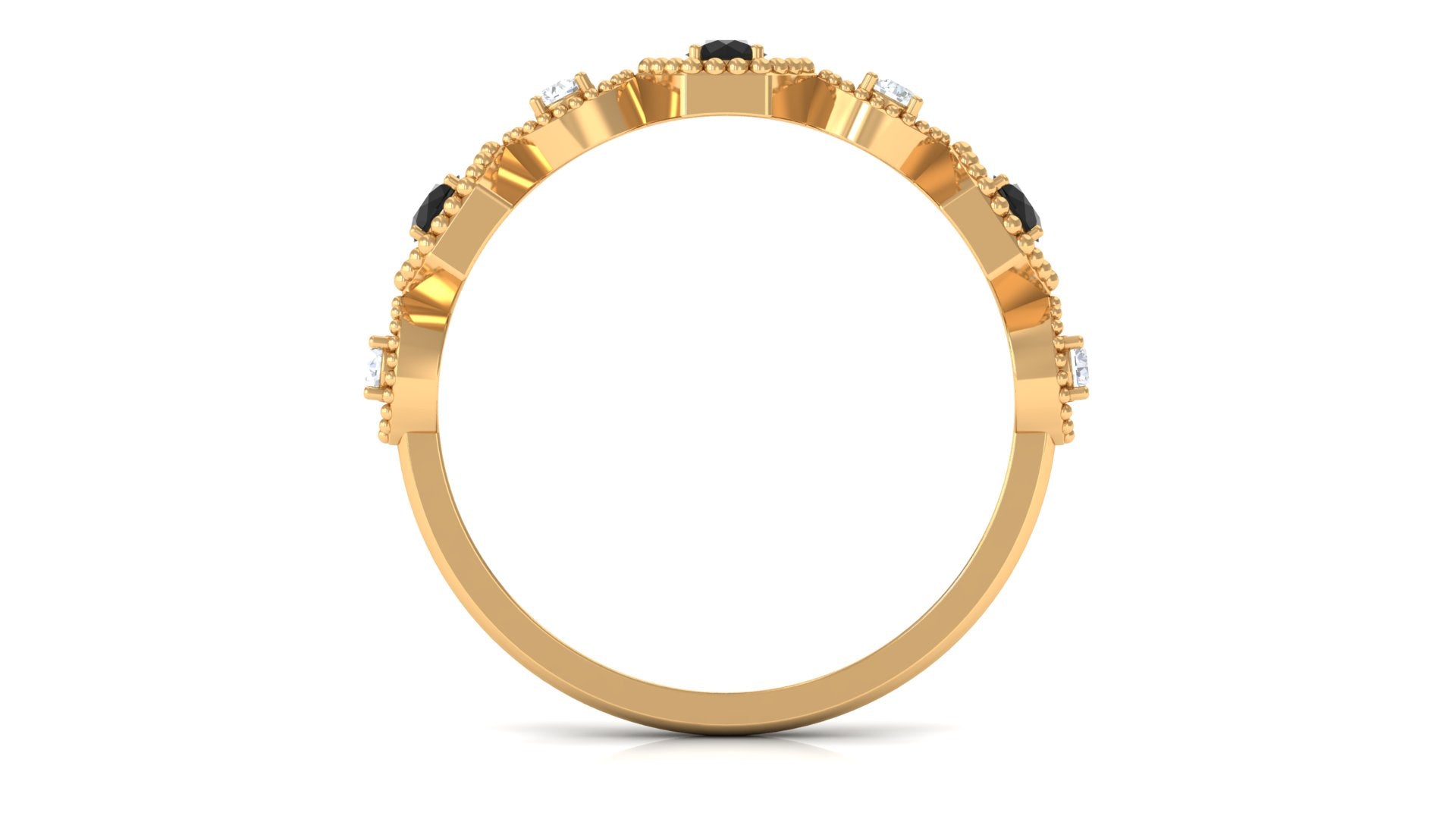 Get yourself this mesmerizing Half Eternity Beaded Stackable Ring, adorned with Round Shape Black Spinel in Prong Setting and Diamond.