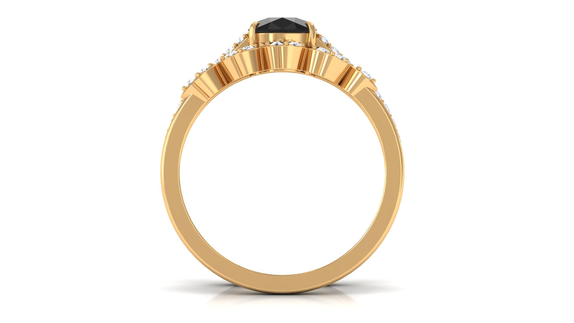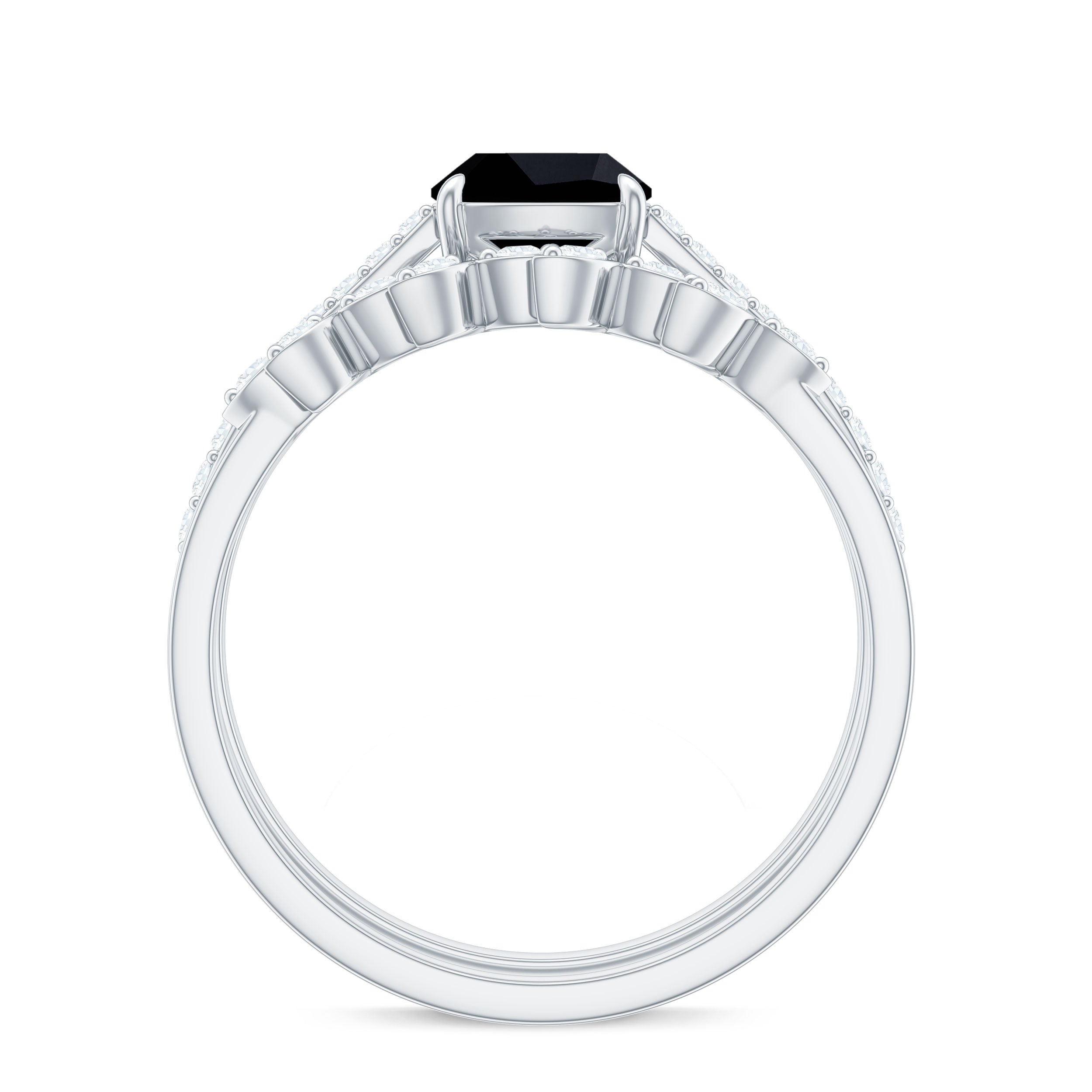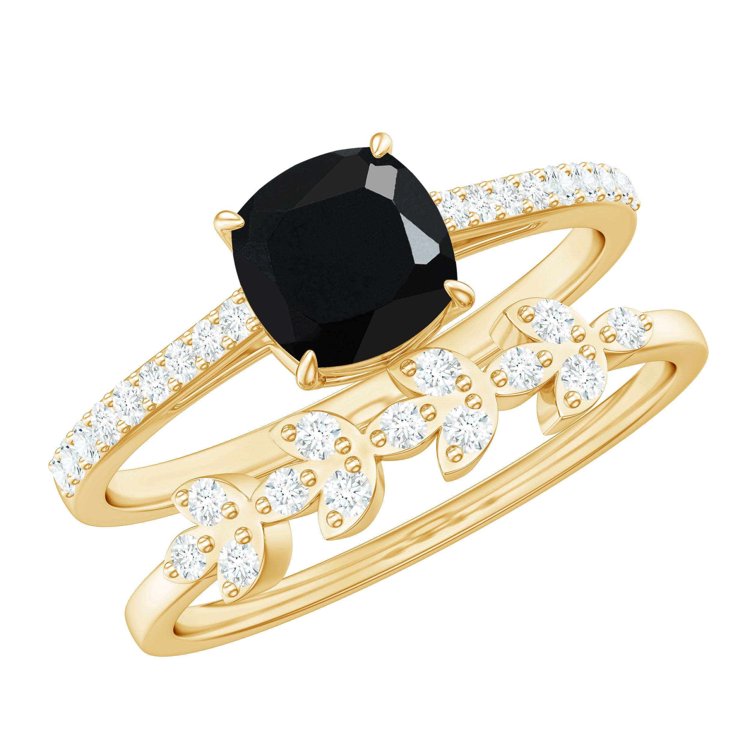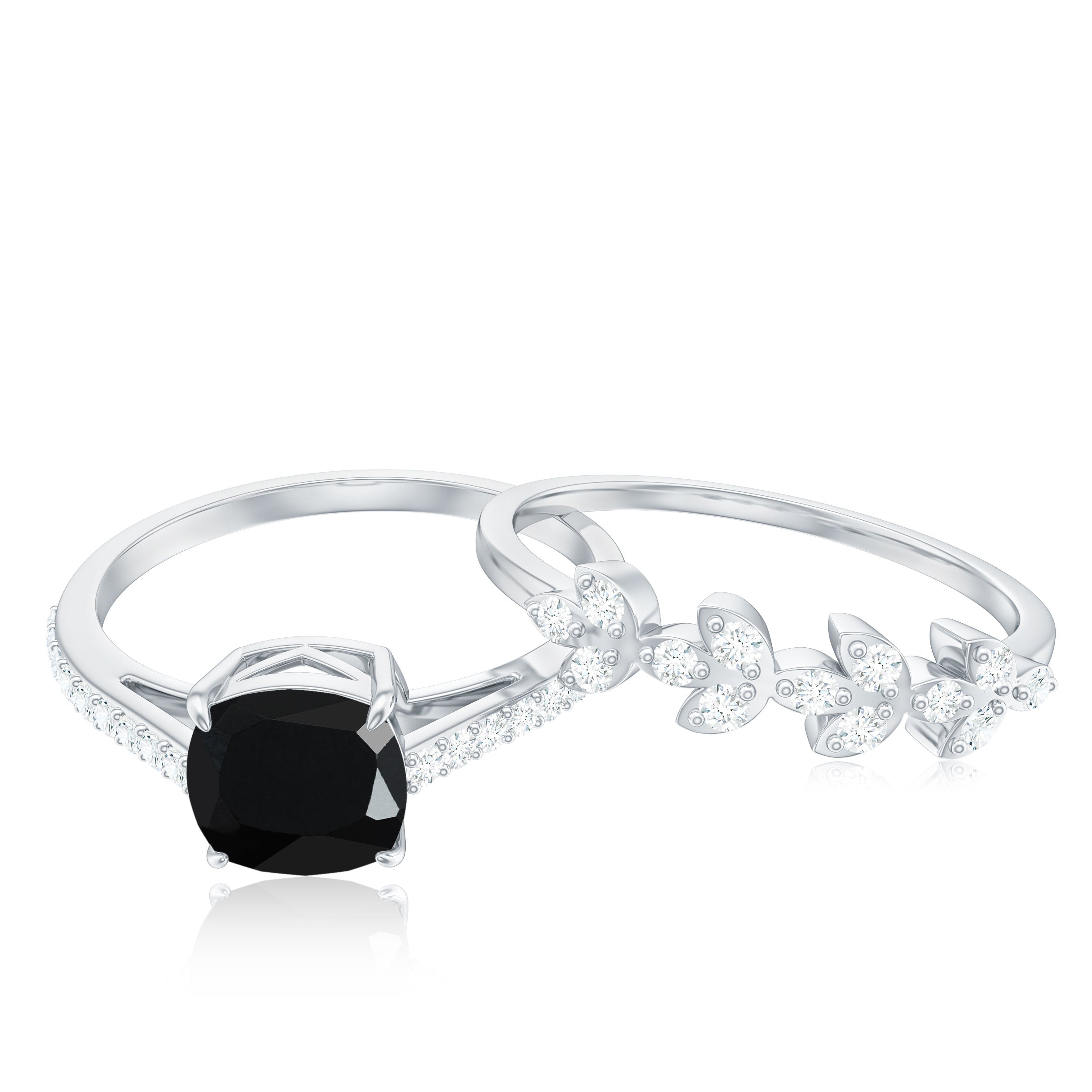 Fallen in love, havent you? Eye-catchy this Ring Set has Cushion Cut Black Spinel in Claw Setting with Diamond on the band is an elegant piece for you.