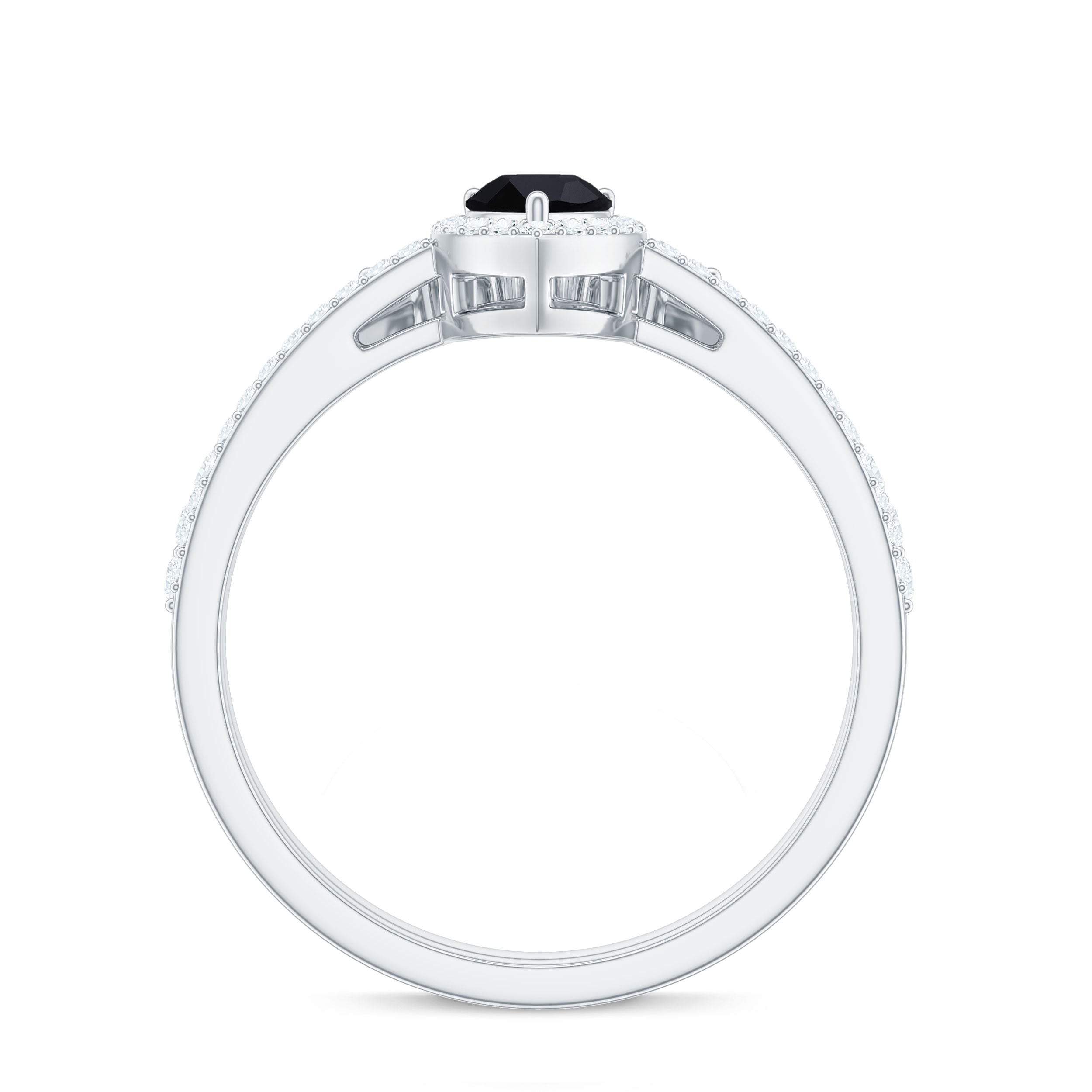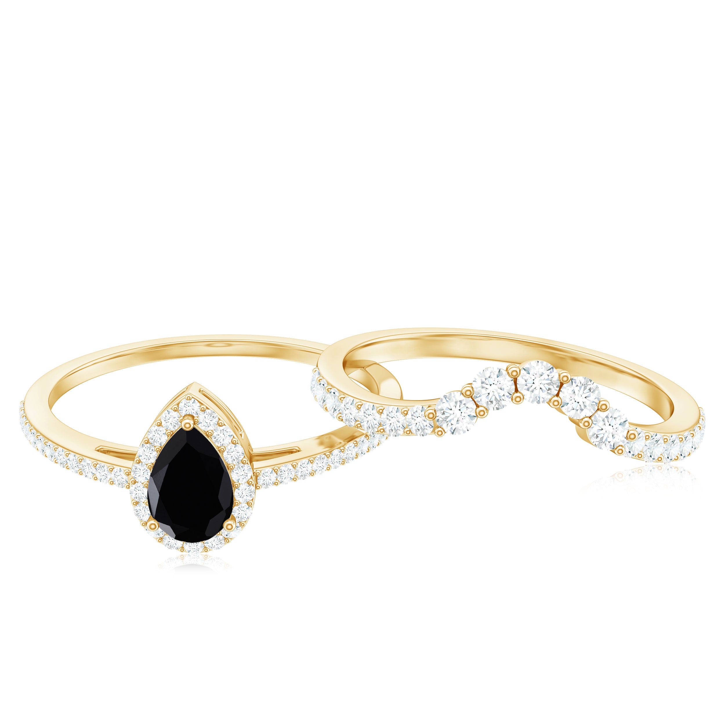 Black Spinel Designer Teardrop Ring Set with Moissanite Halo