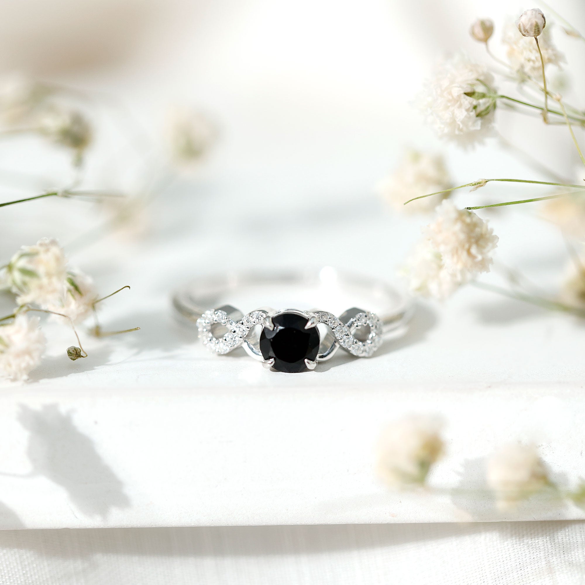 The Round Shape Black Spinel in Claw Setting with Infinity Shank studded with Diamond is a perfect way to express your love.
