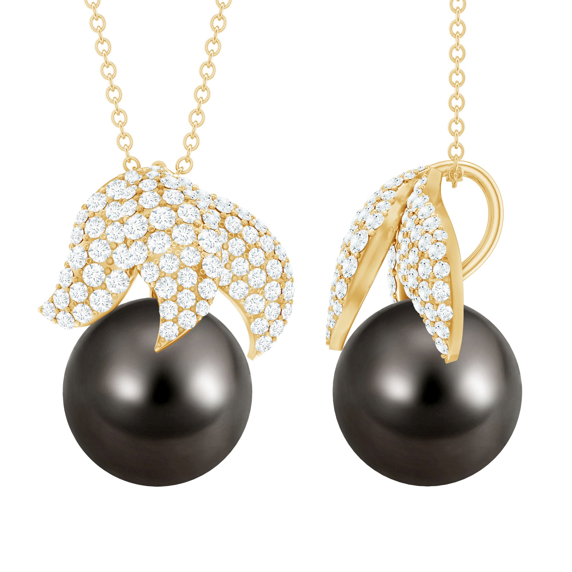 Black Tahitian Pearl and Diamond Leaf Pendant Necklace
