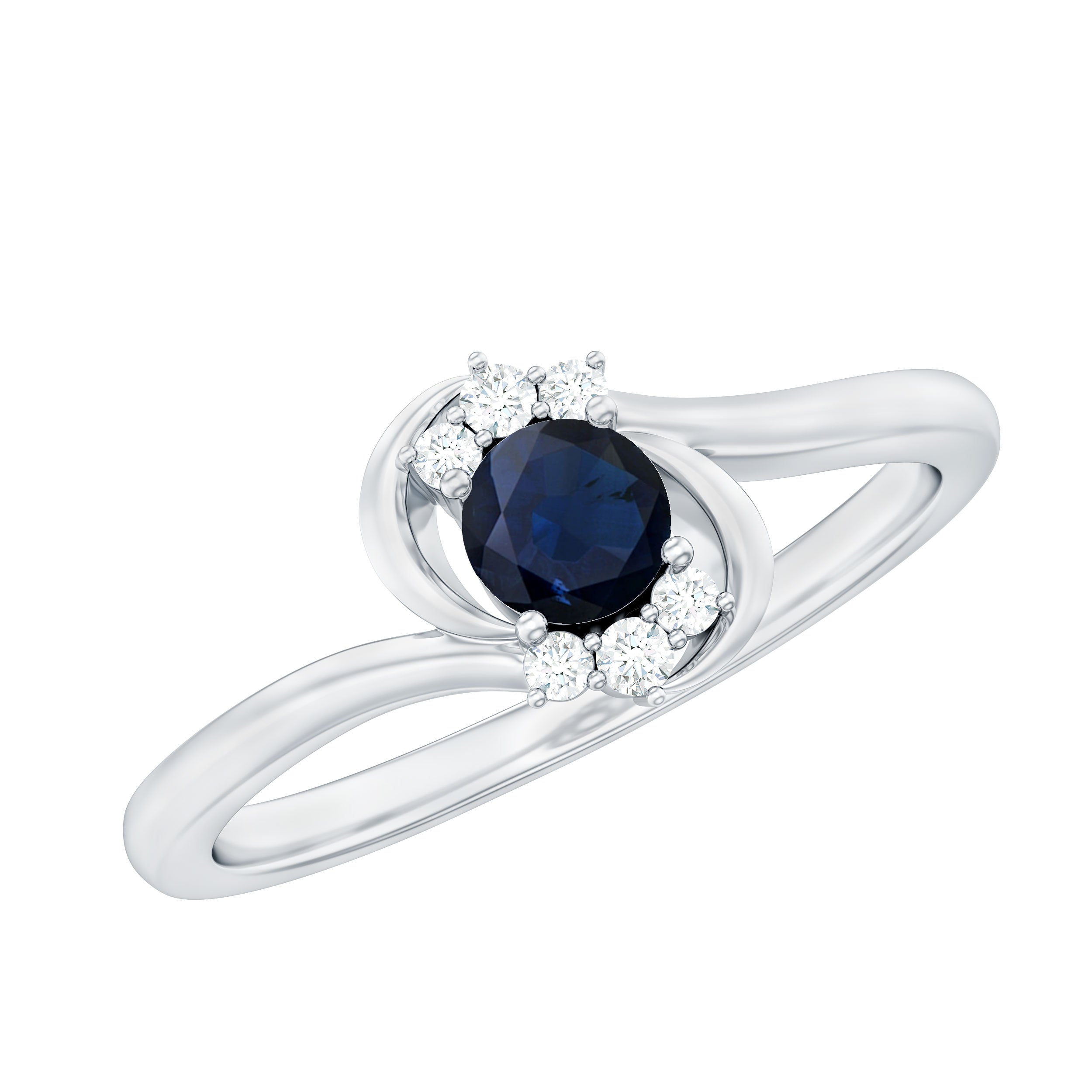 When youre ready to make a statement at the party, consider our captivating Blue Sapphire Promise Ring. This Bypass Ring features a Round Blue Sapphire gem in a secure prong setting, complemented by a trio of diamonds on both the upper and lower sides of the central gemstone. The unique Bypass Shank design adds a fashionable touch that will elevate your style to new heights.