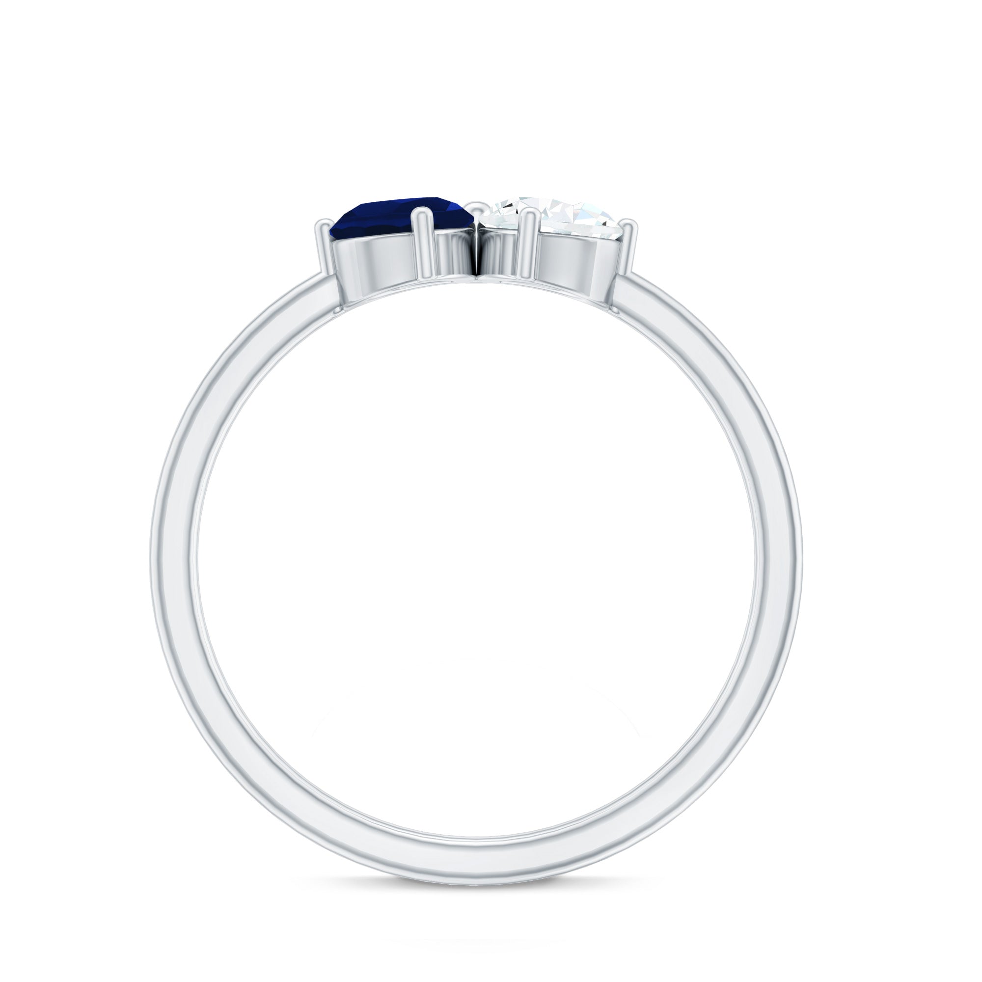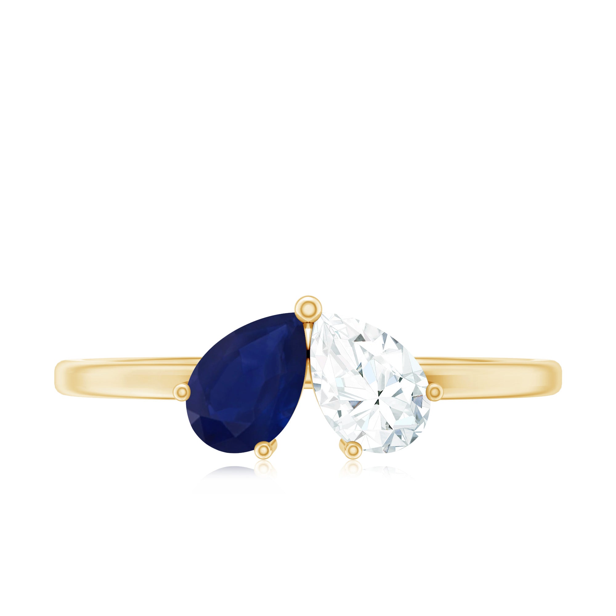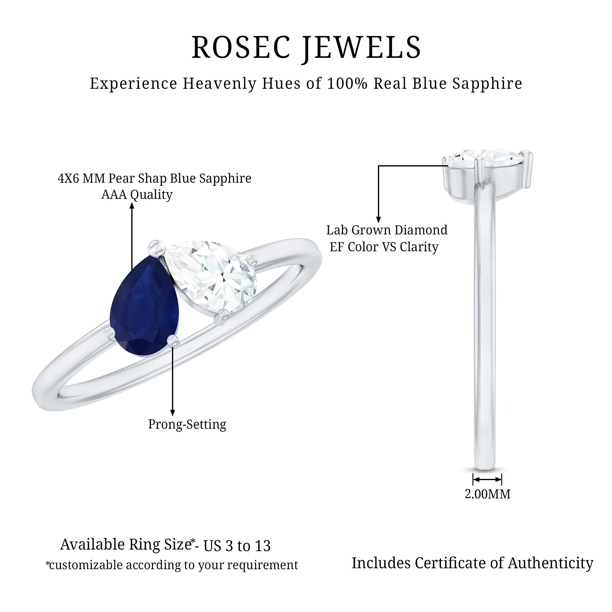 This 2 Stone Ring is crafted to showcase the beautiful connection between two lives, featuring elegant curves and dazzling stones. Made with AAA quality natural blue sapphire and EF-VS quality lab created diamond, this Toi Et Moi Ring merges modern aesthetics with significant details. At its heart, a 4X6 MM pear cut blue sapphire is paired with a similarly sized pear lab grown diamond, with each stone symbolizing balance, unity, and the bond between two hearts, all securely held in prong setting. The outcome is a ring that feels both timeless and modern. Ideal for proposals, anniversaries, or commemorating a special relationship, this Blue Sapphire and Diamond Ring is meant to be worn daily while making a bold statement of love and commitment. It arrives in a signature jewelry box along with a certificate of authenticity, ready to be treasured for years to come. This Blue Sapphire Ring serves as a meaningful emblem of your love story and a beautiful beginning to a shared journey.