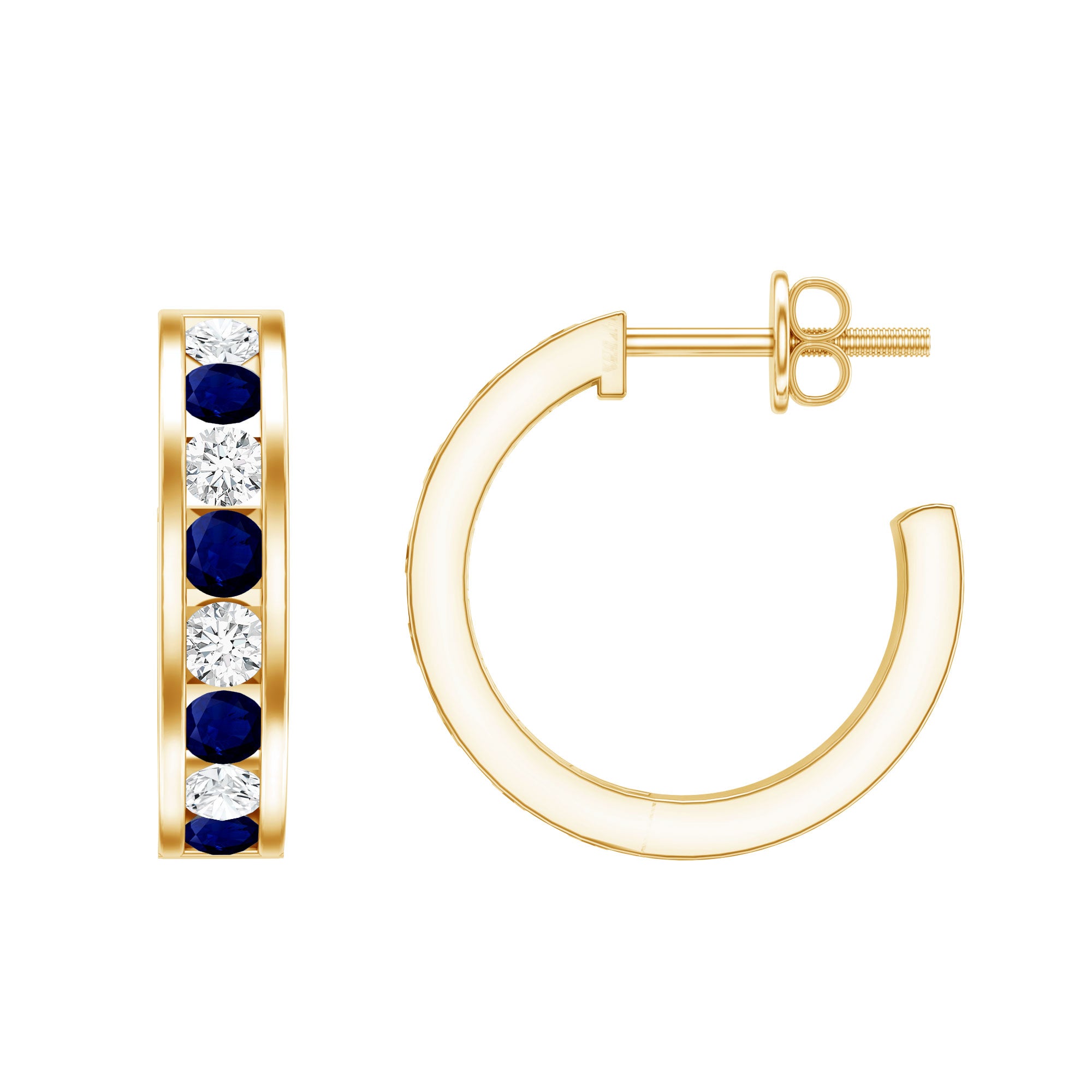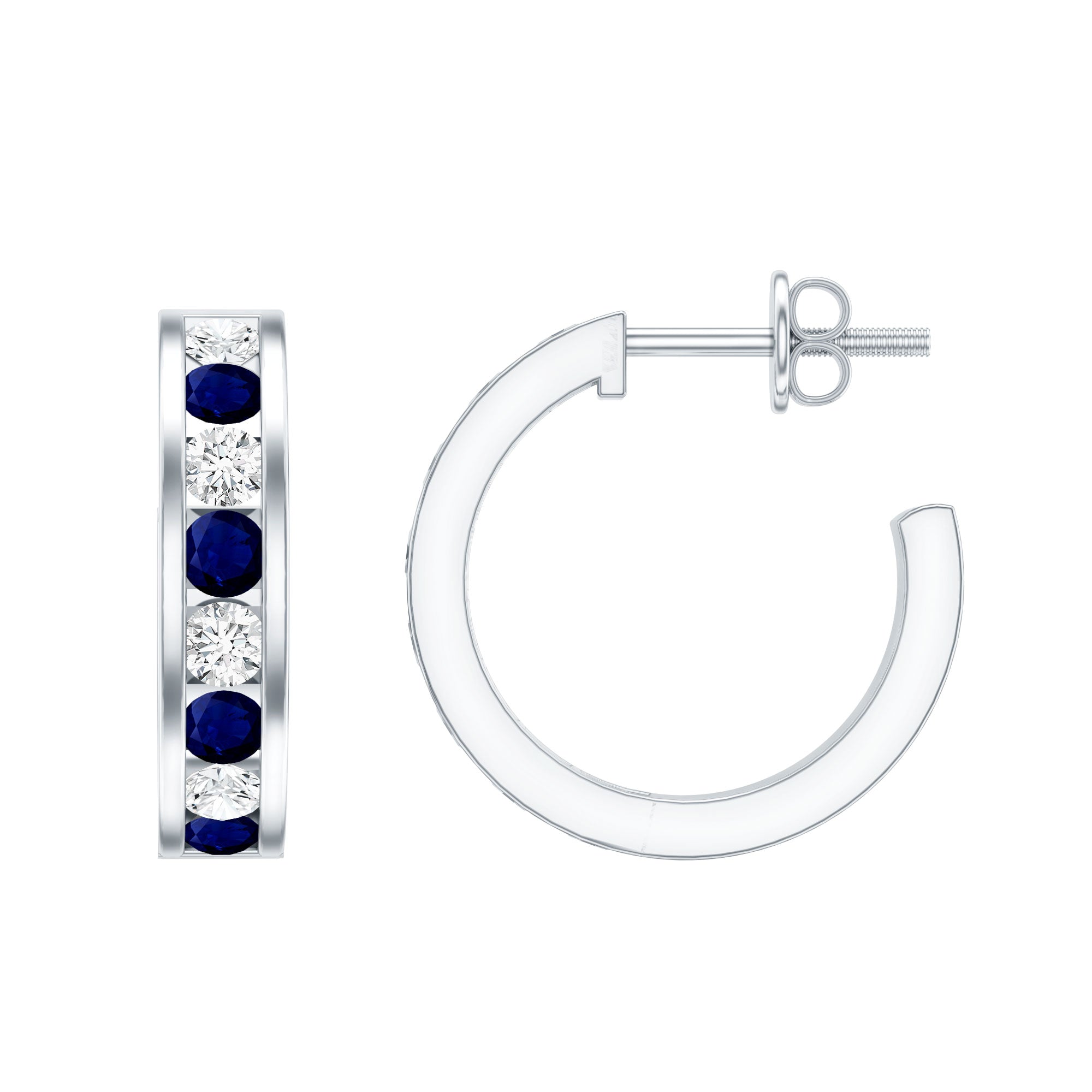 Blue Sapphire Hoop Earrings with Lab Grown Diamond