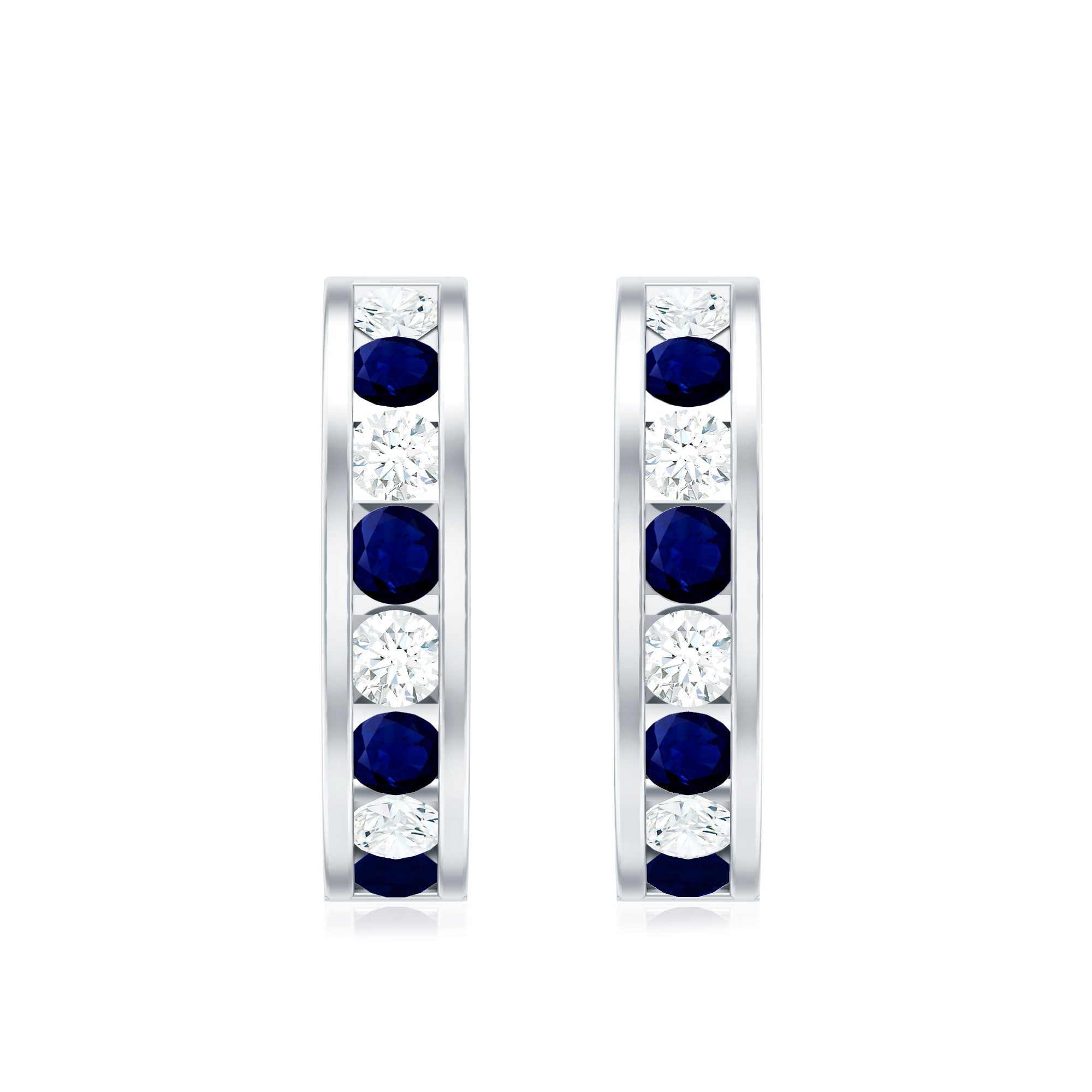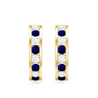 Blue Sapphire Hoop Earrings with Lab Grown Diamond