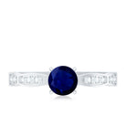 Blue Sapphire Solitaire Engagement Ring with Diamond Side Stones