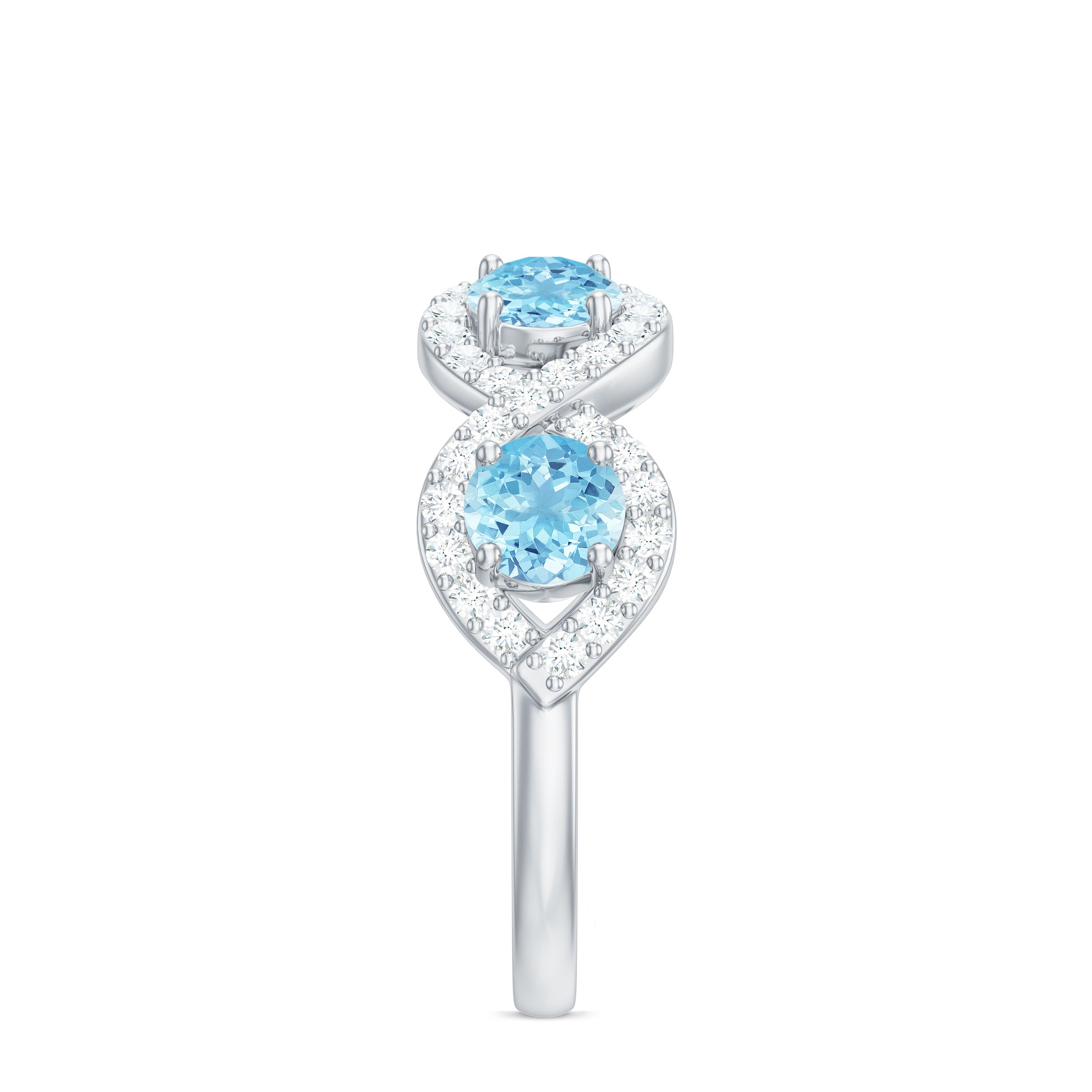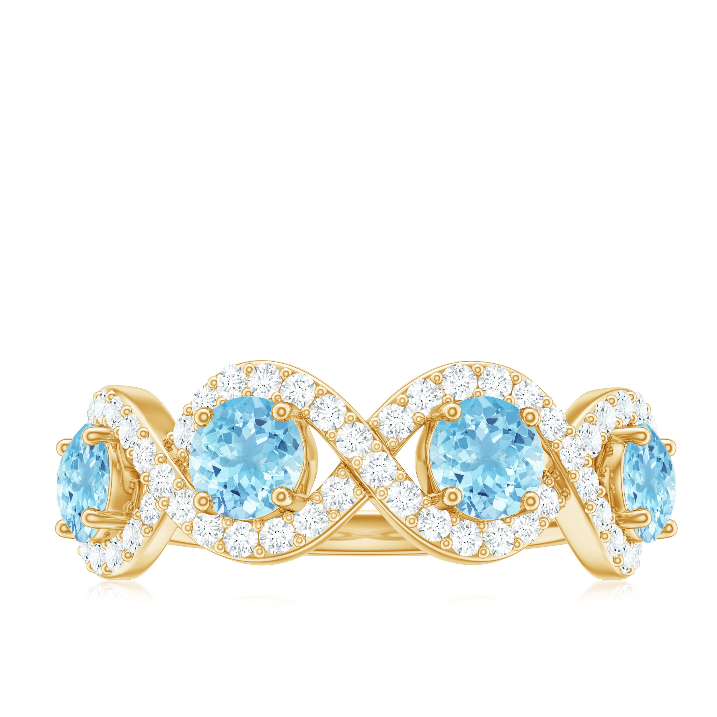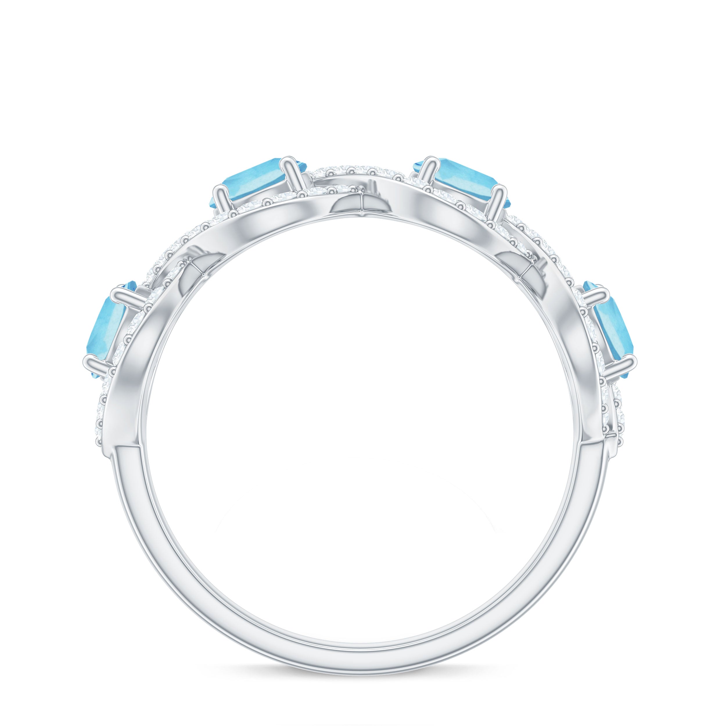 Representing two lives walking through life hand in hand, this Braided Ring creates a constant reminder of an unbreakable connection. This Half Eternity Ring features Round Shape Aquamarine gemstones set in Prong Setting highlighted by Diamond gemstones studded over the braided design. It would be a perfect Anniversary gift for your beloved wife and will be cherished by her for lifetime.