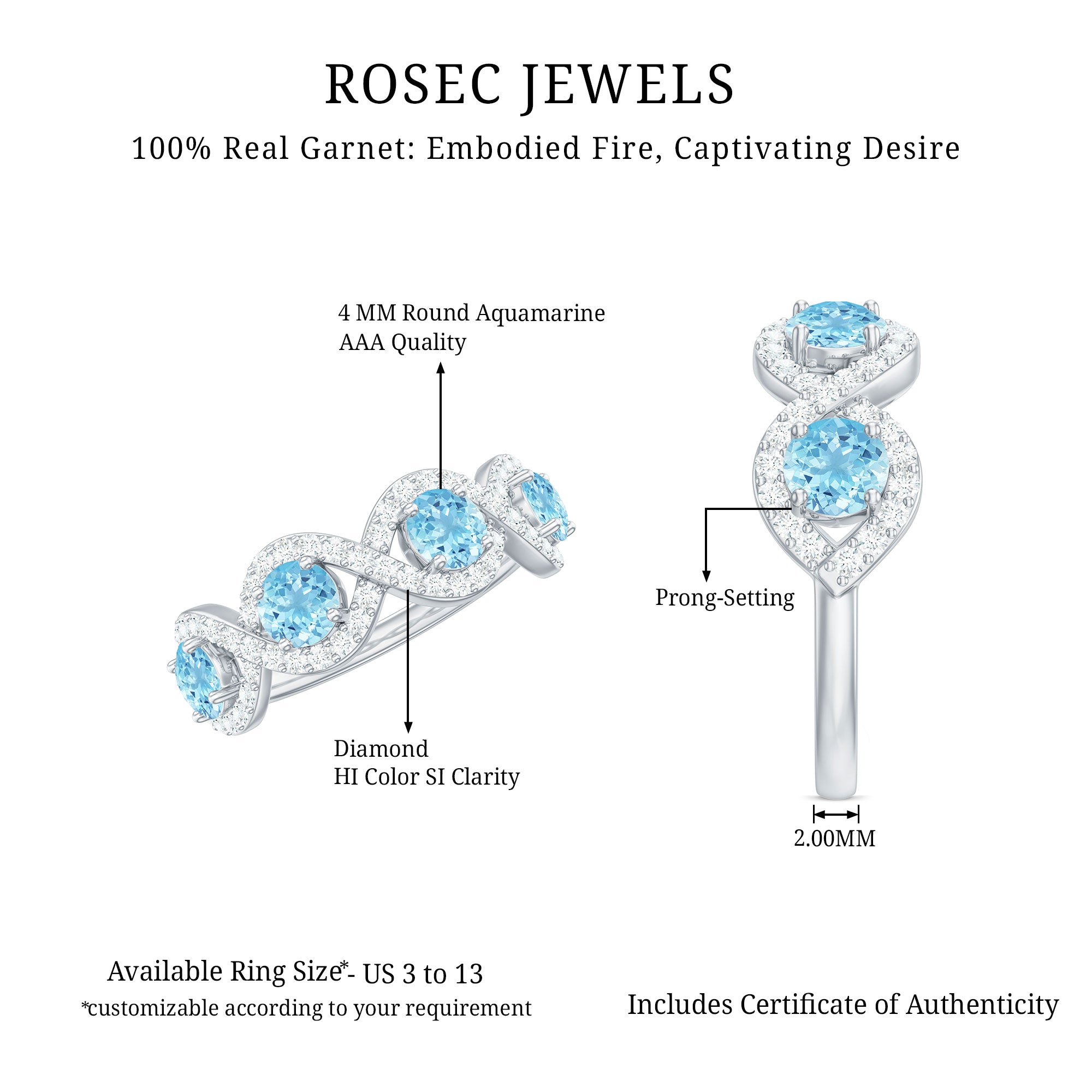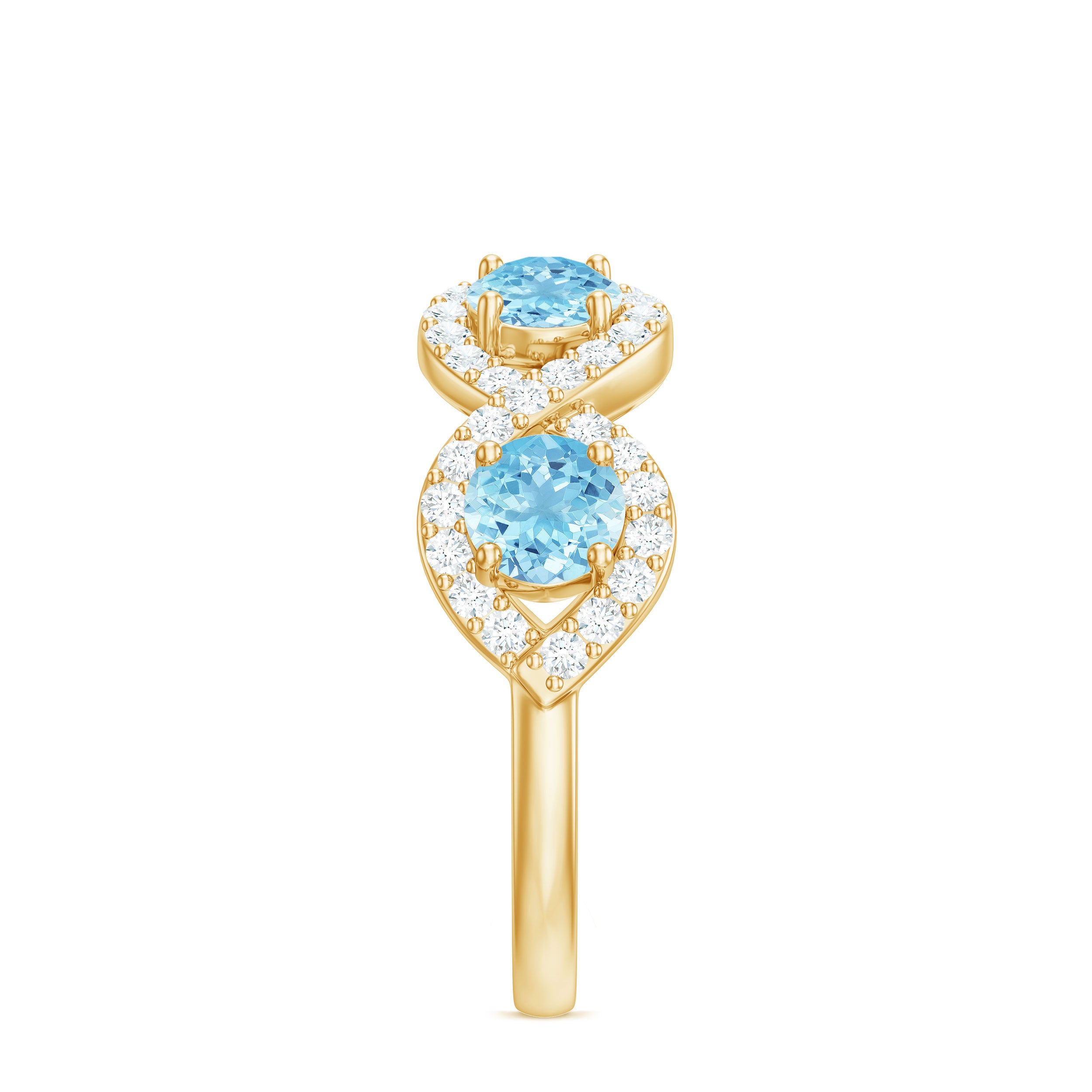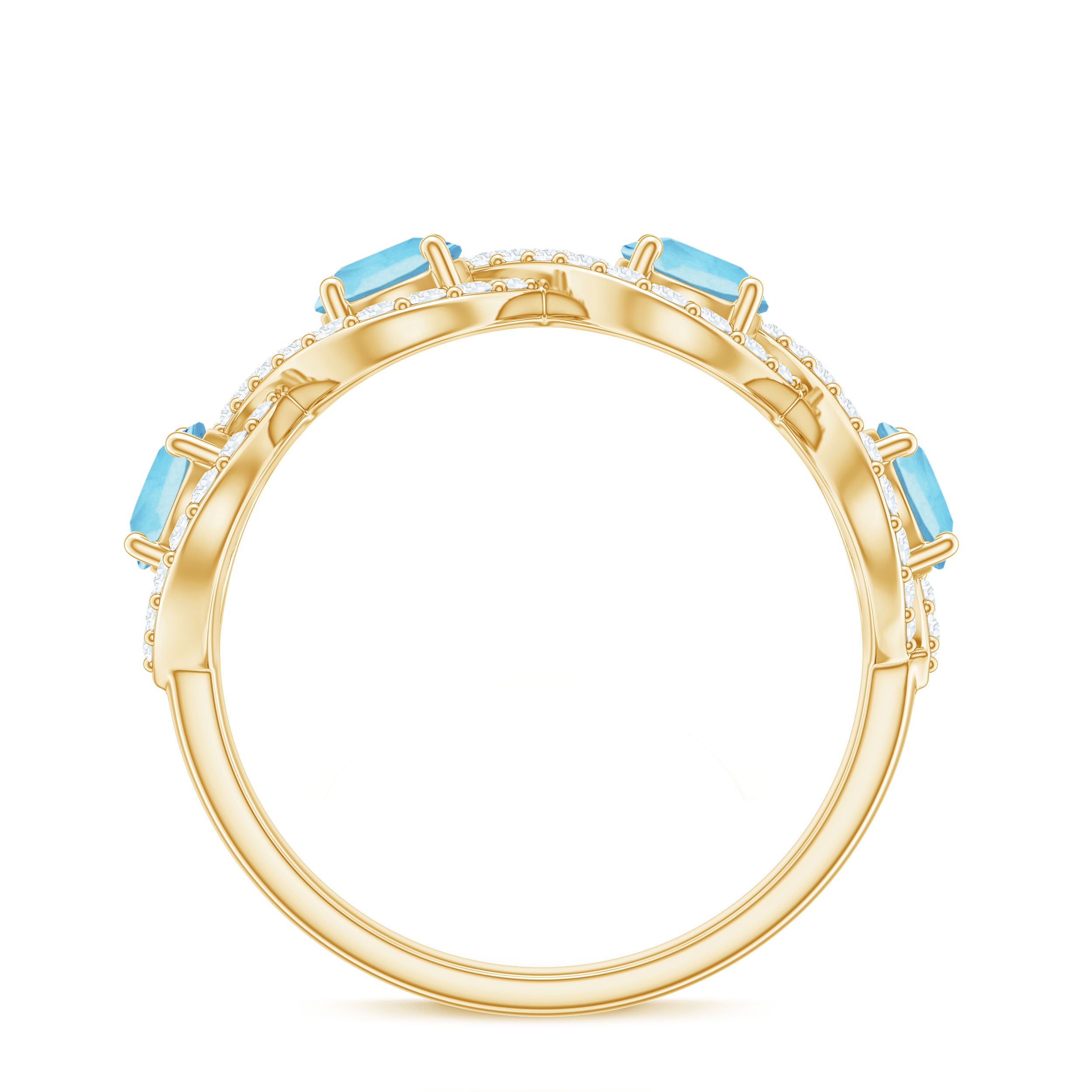 Representing two lives walking through life hand in hand, this Braided Ring creates a constant reminder of an unbreakable connection. This Half Eternity Ring features Round Shape Aquamarine gemstones set in Prong Setting highlighted by Diamond gemstones studded over the braided design. It would be a perfect Anniversary gift for your beloved wife and will be cherished by her for lifetime.