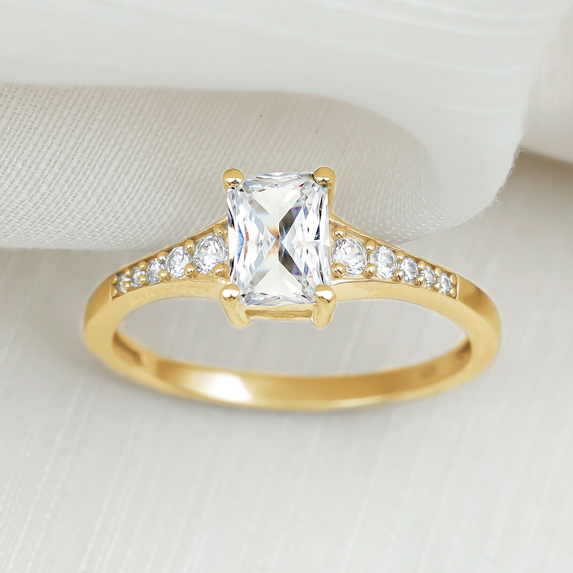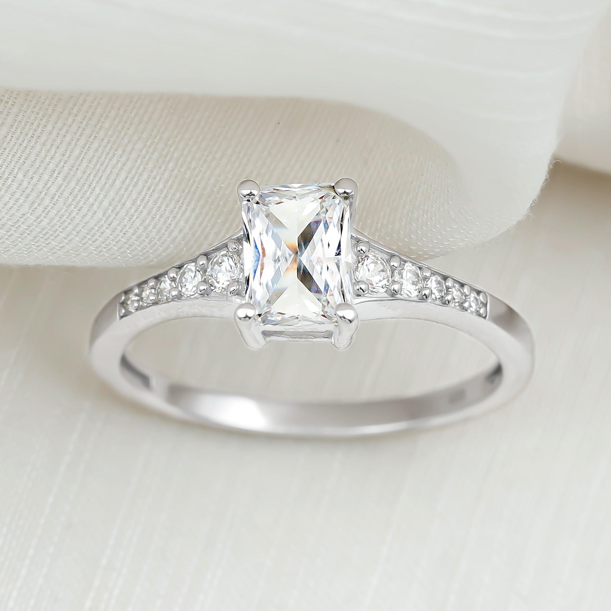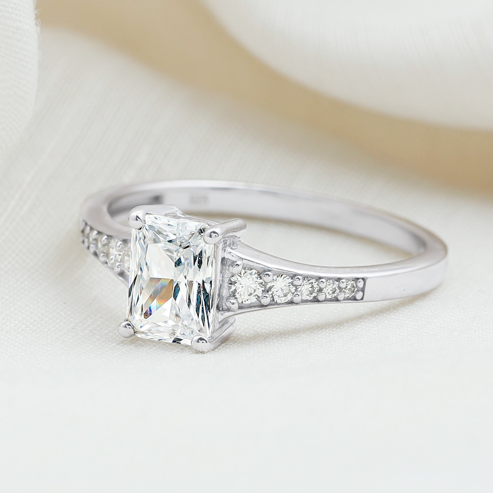 Brilliant Cut 7X5 MM Lab Grown Diamond Emerald Cut Engagement Ring