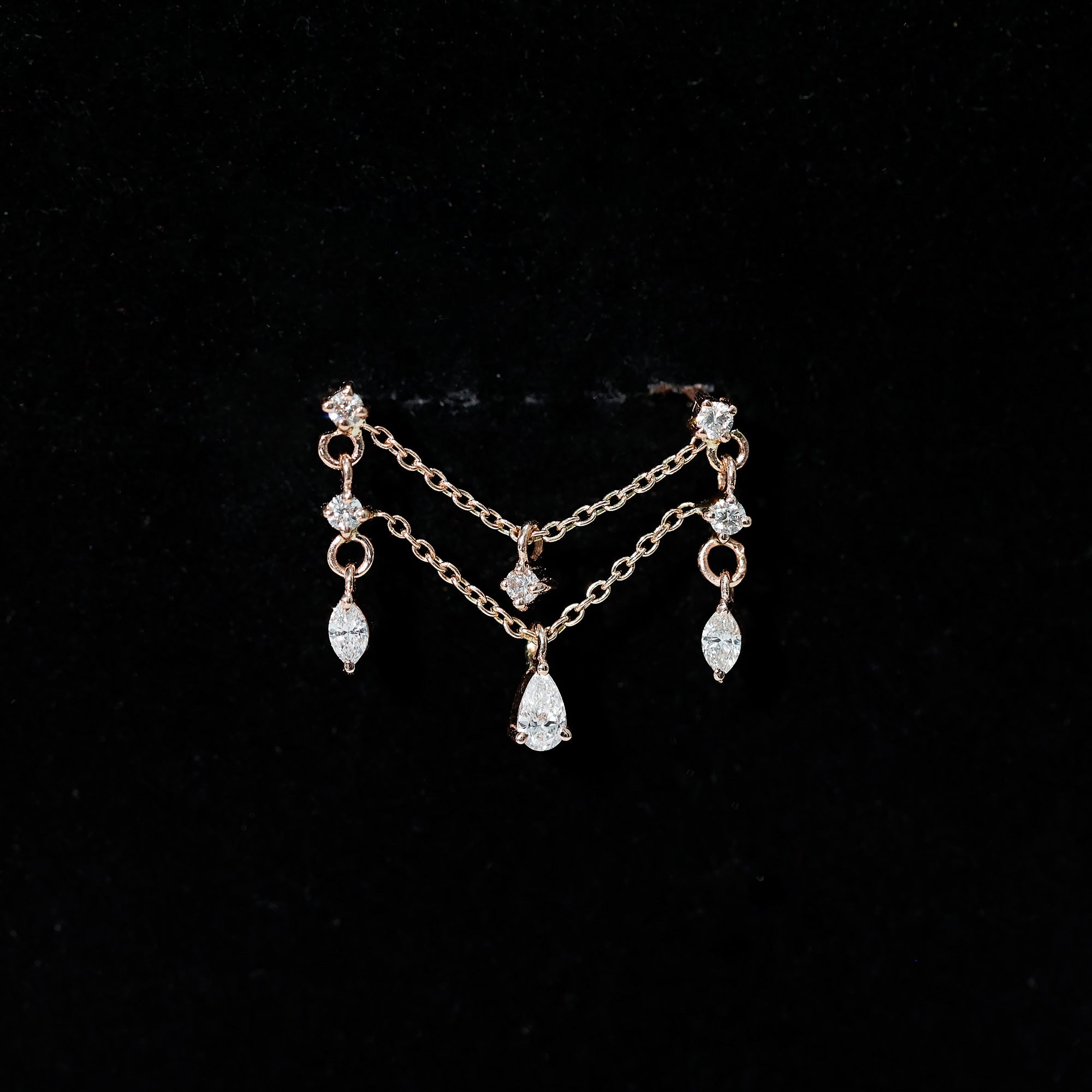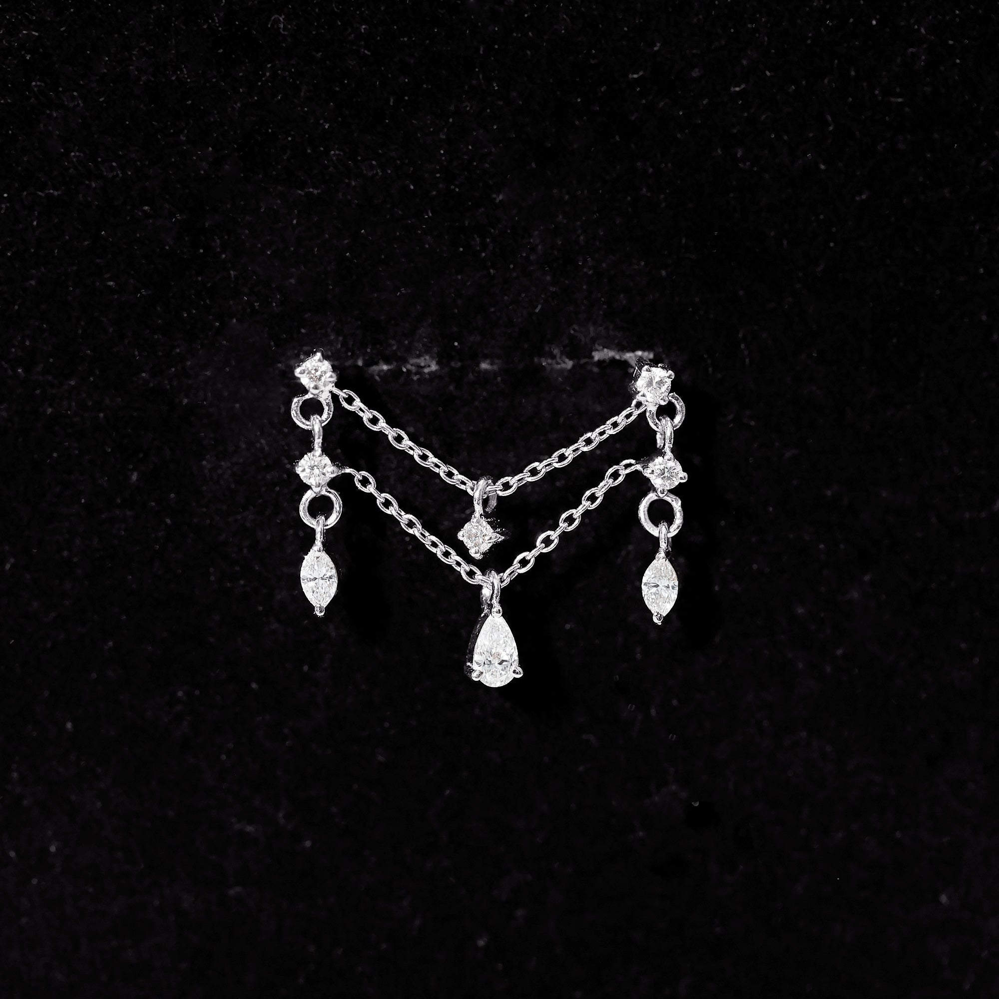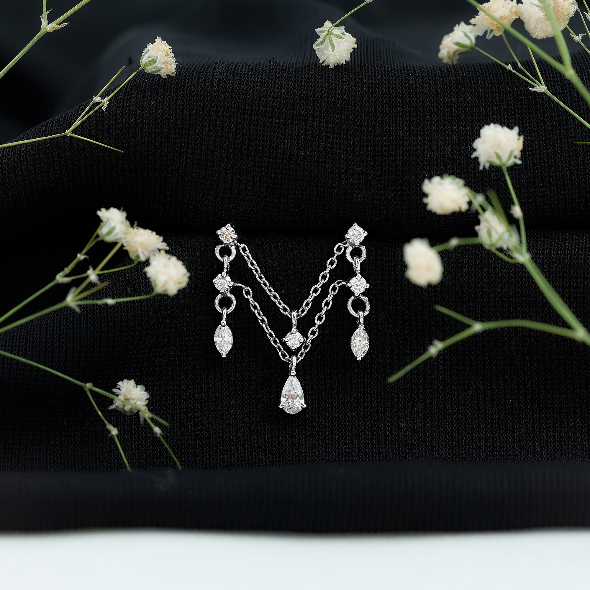 Brilliant Cut Diamond Double Chain Drop Earring for Cartilage Piercing