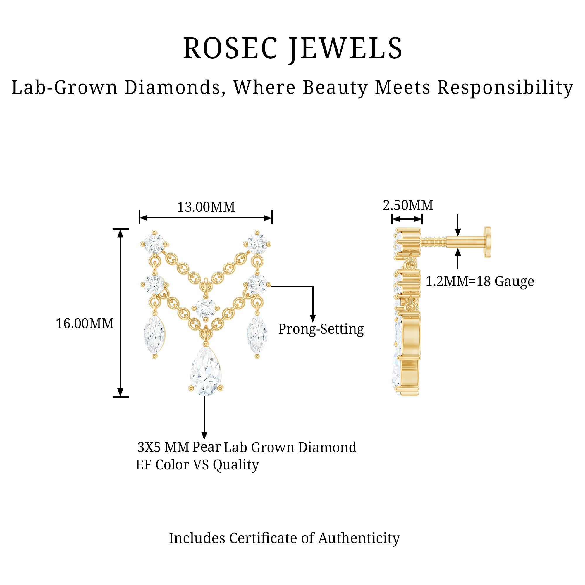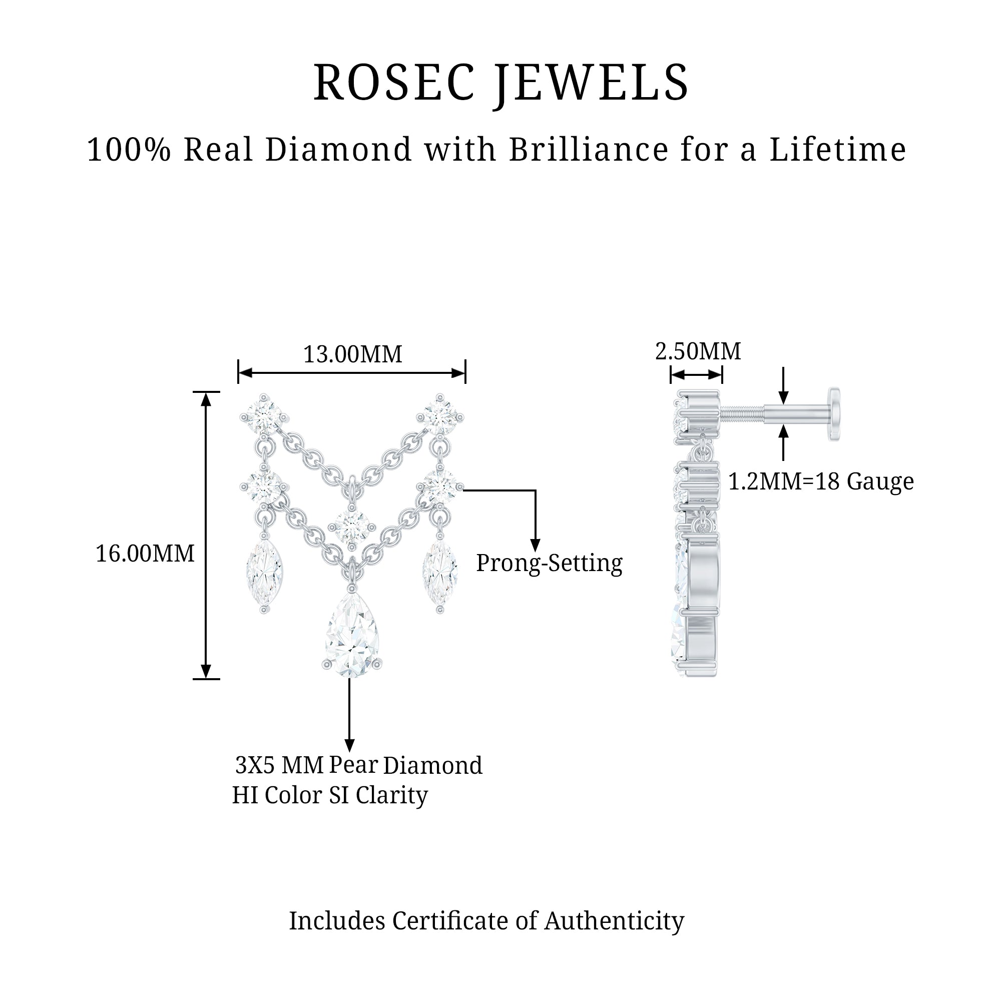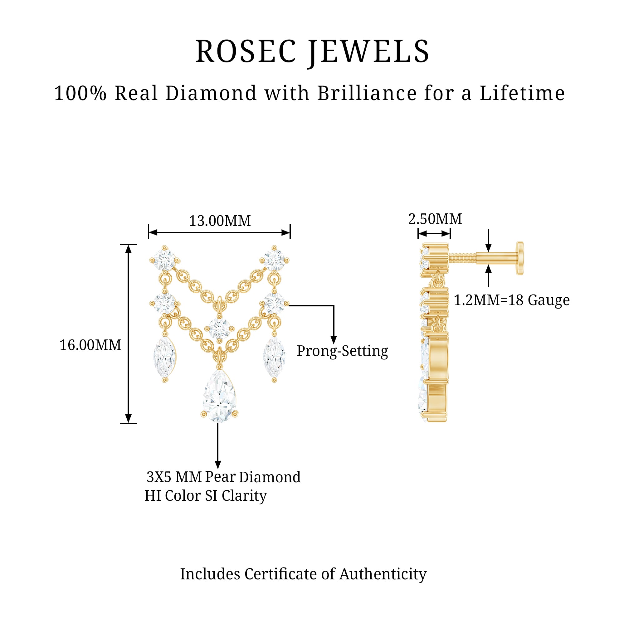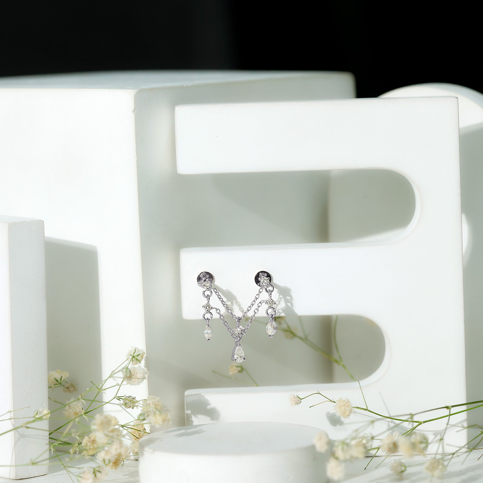 Brilliant Cut Diamond Double Chain Drop Earring for Cartilage Piercing