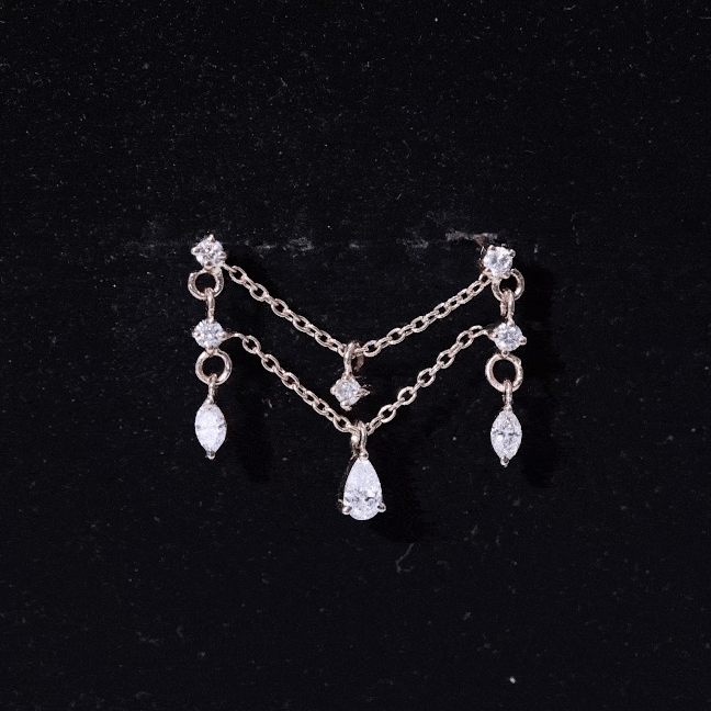 - The Double Hole Earring will bring captivating flair to your ear piercings, featuring round diamonds at the top and pear and marquise-shaped diamonds dangling below with a chain.