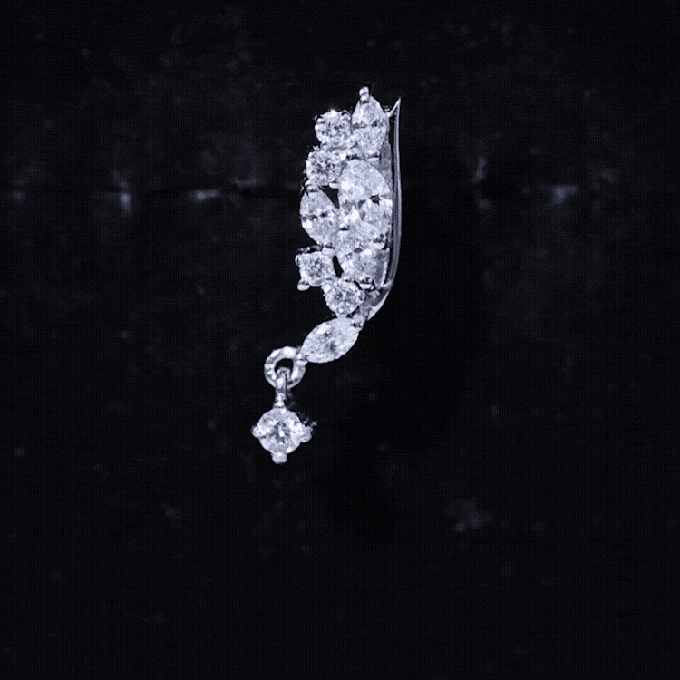 This brilliant cut diamond wing helix drop earring is designed for those who appreciate refined cartilage jewelry with a distinctive silhouette. The wing-inspired form follows the natural curve of the ear, creating a subtle yet expressive statement.