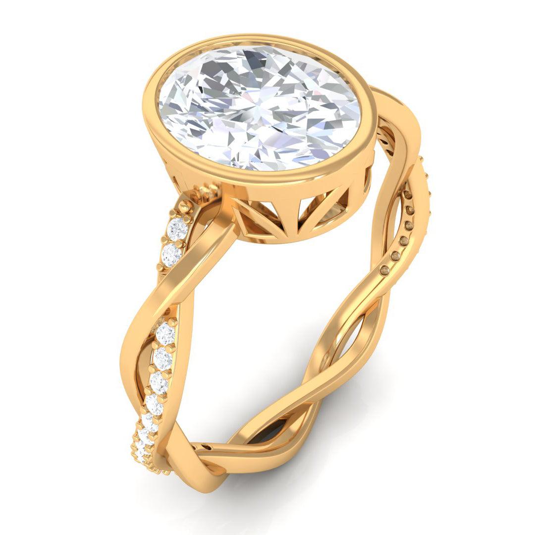 Brilliant Cut Moissanite Bezel Set Engagement Ring in Braided Shank