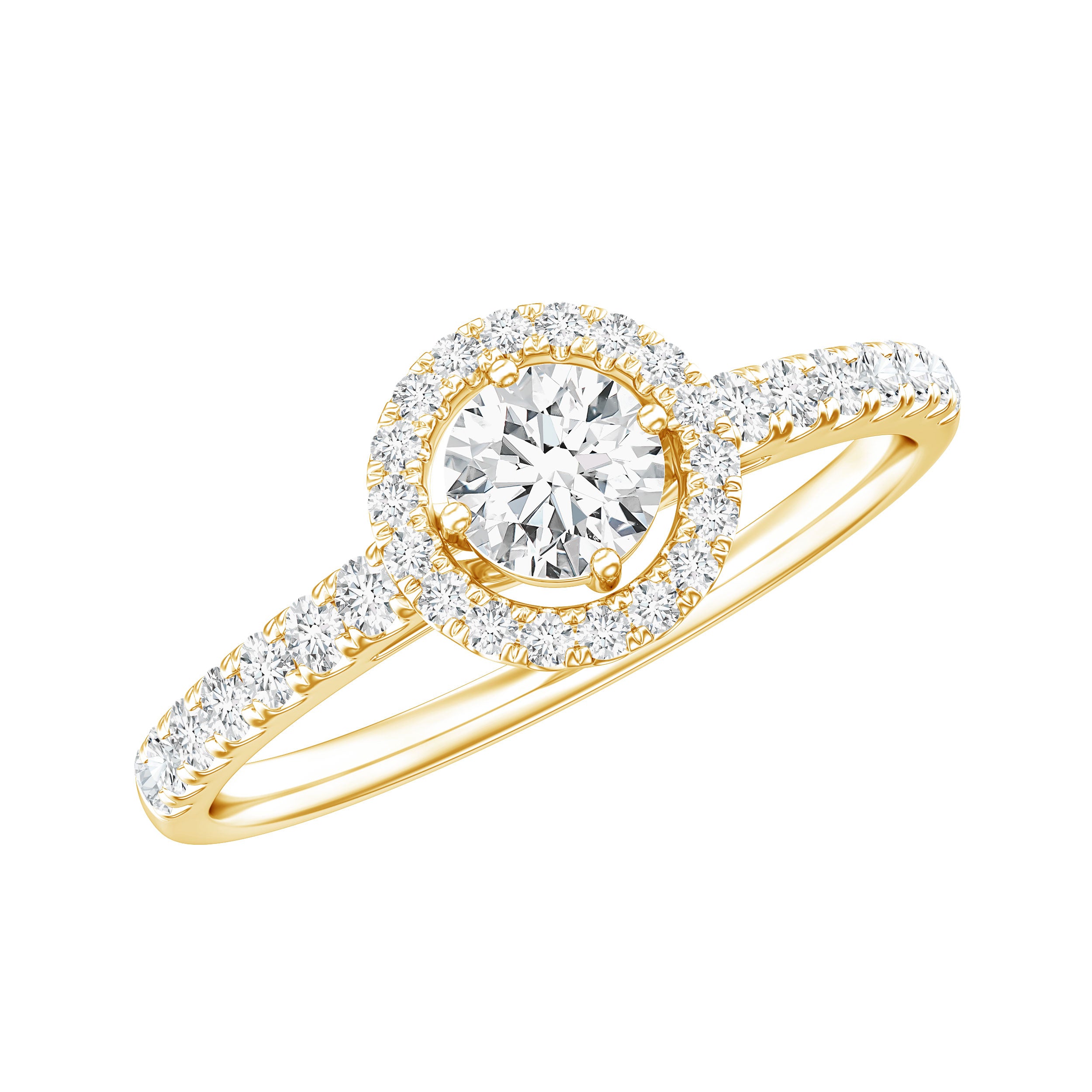 Elegant yet simple, this Moissanite Promise Ring will continue to shine for many years. Its classic and timeless design will make you look stunning. Unique and special, it is a piece of jewelry that is both classic and timeless, sure to impress anyone who sees it. The dramatic effect enhances its sparkle, making its brilliance truly extraordinary. This Classic Ring features a 5 MM Round Shape Moissanite set beautifully in a 4 Prong Diagonal Setting. Surrounding the center stone is a Round brilliant cut Moissanite Floating Halo, which is endlessly elegant and iconic. This Half Carat Moissanite Ring is further enhanced with side stones that add even more brilliance. Designed to win her heart, this exquisite Commitment Ring shines with timeless elegance. It amplifies its sparkle, creating a stunning display of light, making this Promise Engagement Ring a significant symbol of your unwavering commitment and the love you share, as well as the future you dream of together. It tells a story of devotion and a beautiful future. Additionally, this Moissanite Halo Ring is a tangible expression of your deepest feelings, crafted to be treasured for a lifetime.