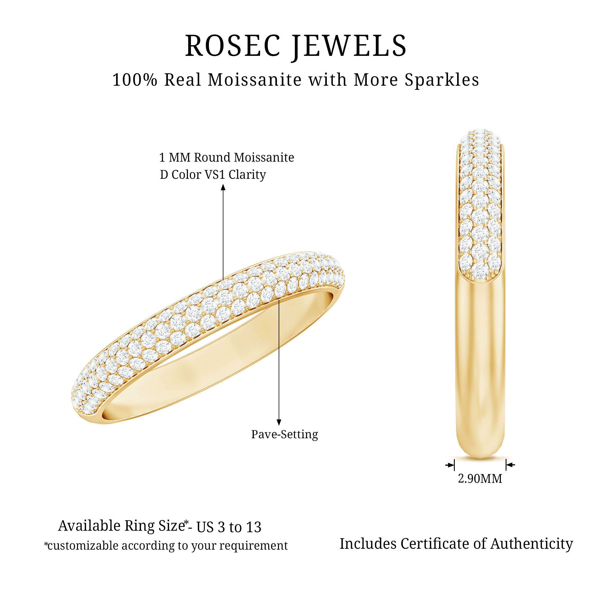 This Moissanite Wedding Band combines timeless elegance with modern brilliance, featuring a Half Eternity Band that exudes love, style, and sparkle. It is adorned with D-VS1 Quality Moissanite stones set in Pave Setting, providing a graceful shimmer that adds just the right touch of sparkle for both everyday luxury and special occasions. The half eternity design is perfect for daily wear, stacking with your engagement ring, or celebrating a significant milestone. Designed for comfort and lasting beauty, this Moissanite Eternity Band comes in US standard sizes ranging from 3 to 13, ensuring a perfect fit for every love story. Presented in a beautifully crafted signature jewelry box, this Eternity Wedding Band is ready to be gifted and treasured forever. Elegant, enduring, and ethically produced, this Stackable Band is more than just jewelry, it is a sparkling promise that shines with intention. Let your love radiate through every facet, every moment, every day, with a band that beautifully reflects forever.