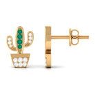 Cactus Stud Earrings with Emerald and Diamond Stones