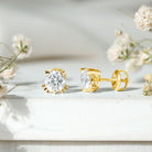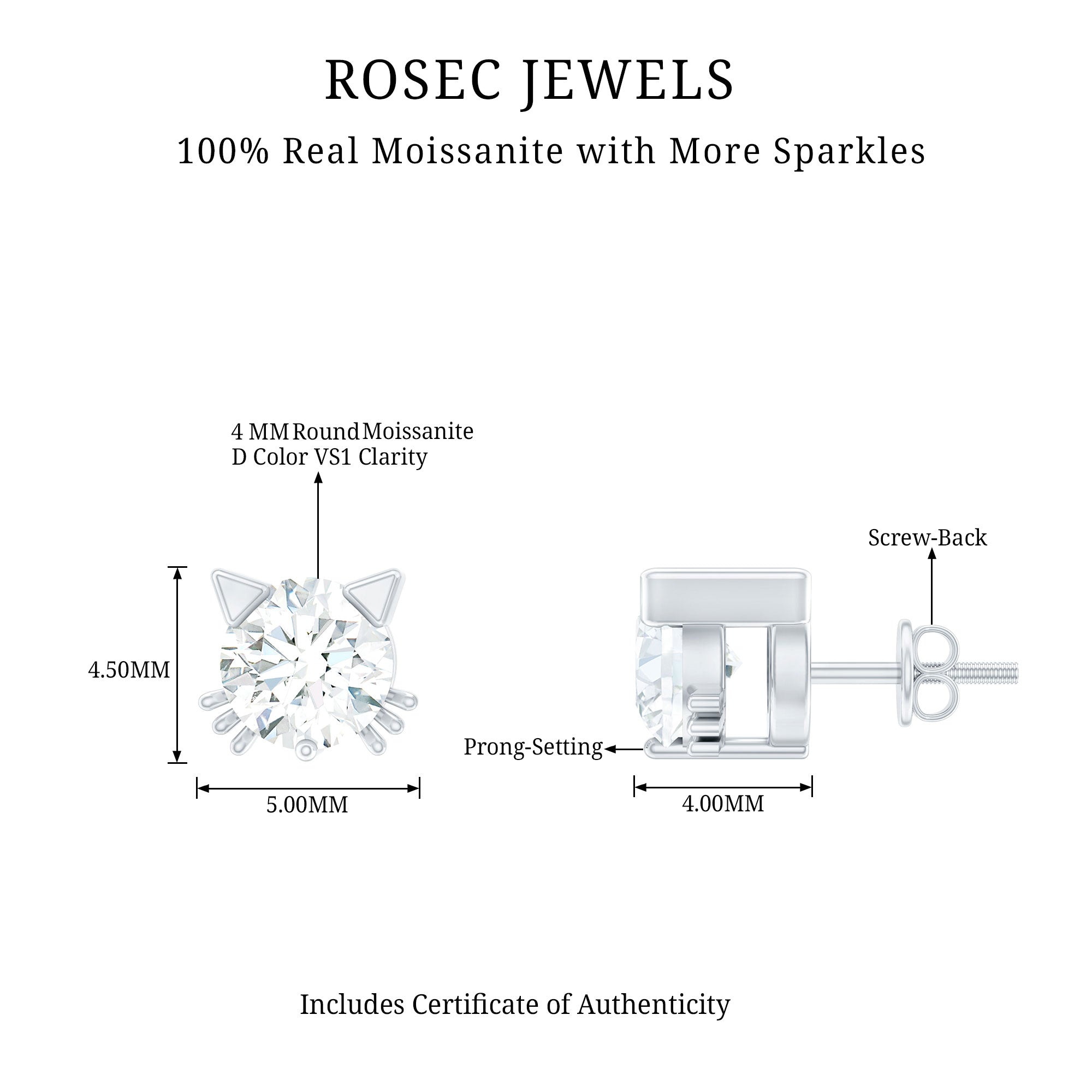 Cat Solitaire Stud Earrings with 4 MM Round Shape Moissanite in Prong Setting