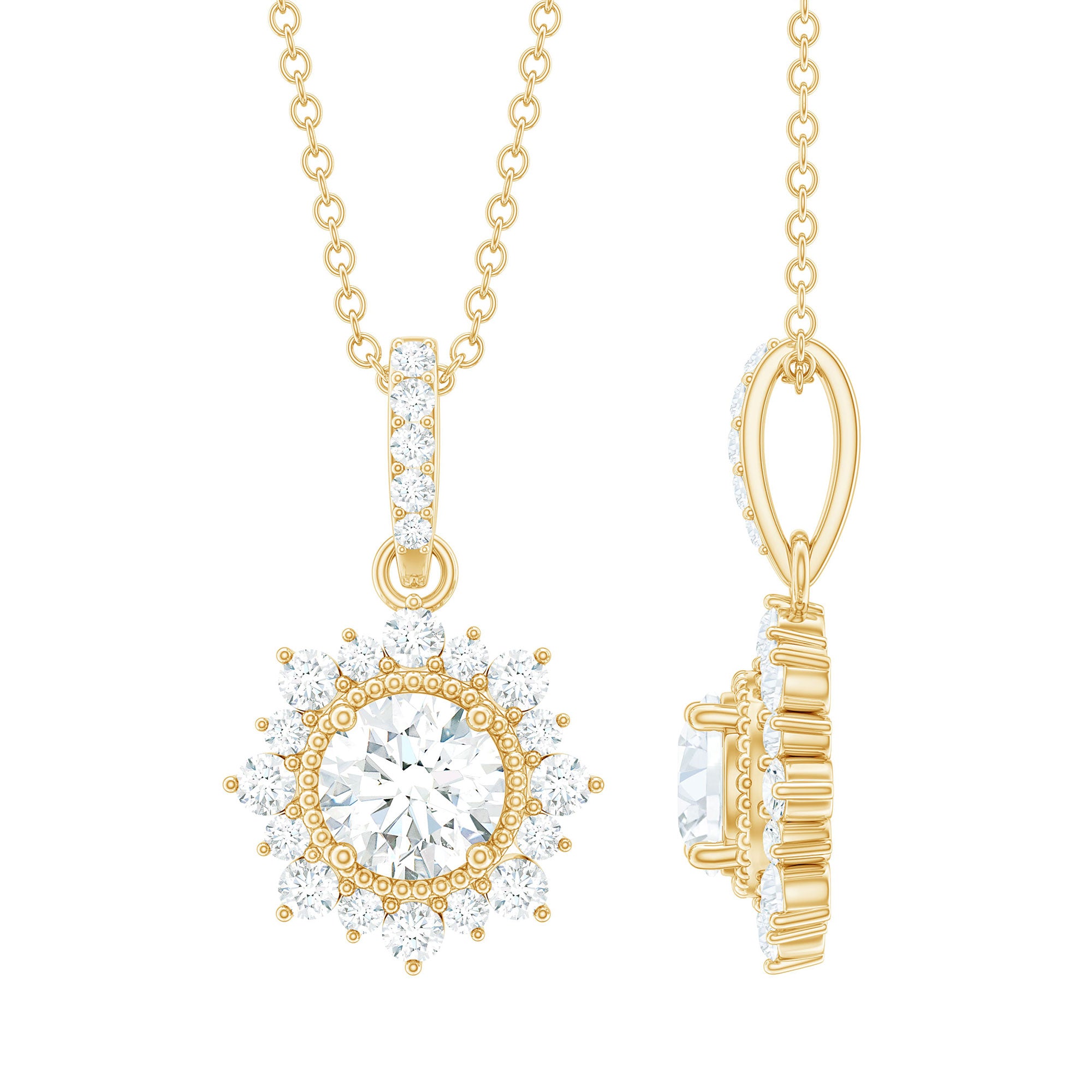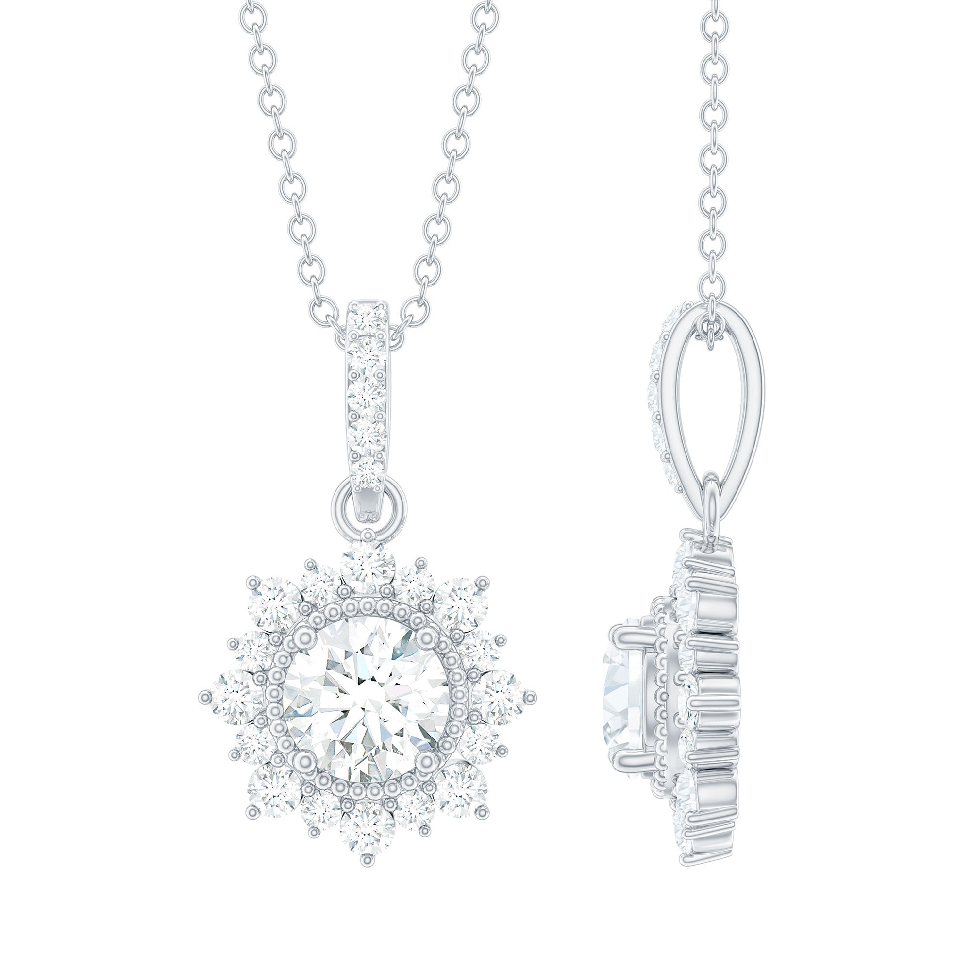 This beautiful Diamond Pendant Necklace will turn heads towards her with its astonishing shine. This Halo Pendant from Rosec Jewels is handcrafted with a 6 MM round shape lab grown diamond as the center stone which is secured in Prong Setting and accentuated with petite diamond halo. This Round Pendant is beautified with the beaded detailing and Diamond Accent Bail. Make the celebration of love special with the EF-VS Quality Diamond embedded in the pendant and start your new journey with this Bridal Necklace for Wedding, which serves as a reminder of an unforgettable experience filled with emotions. As a symbol of love and unity, this pendant necklace carries a lasting message that is deeply sentimental. If you are searching for a gift for a special occasion, want to express your affection, or need a reminder of cherished moments, a Circle Pendant is a stunning and unique choice. We ensure that your feelings are attached to this Lab Grown Diamond Necklace, hence we deliver it in a premium quality gift box.