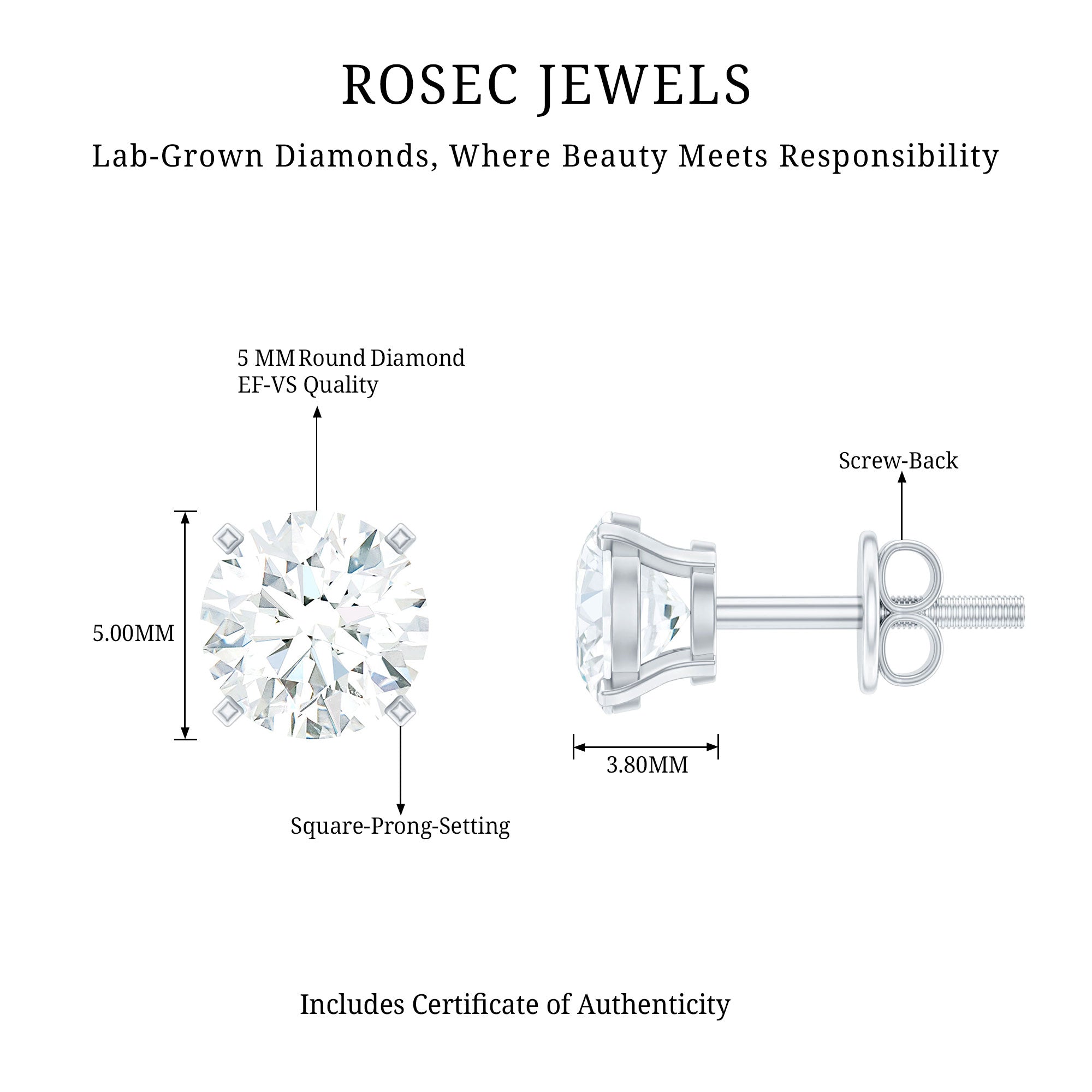Minimal yet undeniably stunning, these Lab Grown Diamond Earrings bring a perfect blend of everyday elegance and timeless sparkle. Designed with a classic look, each earring features a 5 mm Round Shape Lab Grown Diamond set in Square Prong Setting that catches the light beautifully, adding just the right touch of radiance to any style. The secure Screw Back Closure ensures a comfortable fit, so you can wear them with confidence from morning until night, whether you are heading to work, dressing up for a special dinner or simply adding a little shine to your daily routine. Crafted for those who appreciate effortless sophistication, these Lab Diamond Earrings complement everything from casual outfits to chic evening ensembles. They arrive in a signature jewelry box, making them a treat for yourself or an ideal gift for someone you treasure, perfect for birthdays, anniversaries, or holidays. With their graceful simplicity and lasting brilliance, these Lab Grown Diamond Studs are the kind of piece you will reach for again and again.