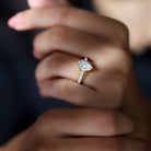 This Pear Moissanite Engagement Ring perfectly combines classic charm with modern sophistication. At its heart lies a breathtaking 7X10 MM pear shaped moissanite, securely held in a prong setting. The D-VS1 quality center stone shines brilliantly with every movement, making it the highlight of the Solitaire Engagement Ring. The band is adorned with a row of moissanite stones, providing a subtle sparkle that complements the center gem without overshadowing it. A thoughtful detail is the peek-a-boo moissanite tucked beneath the center stone, adding a delicate surprise. The pear-shaped center, along with the side stones, creates an elegant flow in the Teardrop Engagement Ring that flatters the finger from all angles. This Pear Shaped Engagement Ring comes beautifully packaged, ready to celebrate one of life’s most unforgettable moments. With various ring sizes, metal choices, and finishes available, it can be tailored to showcase your unique style.
