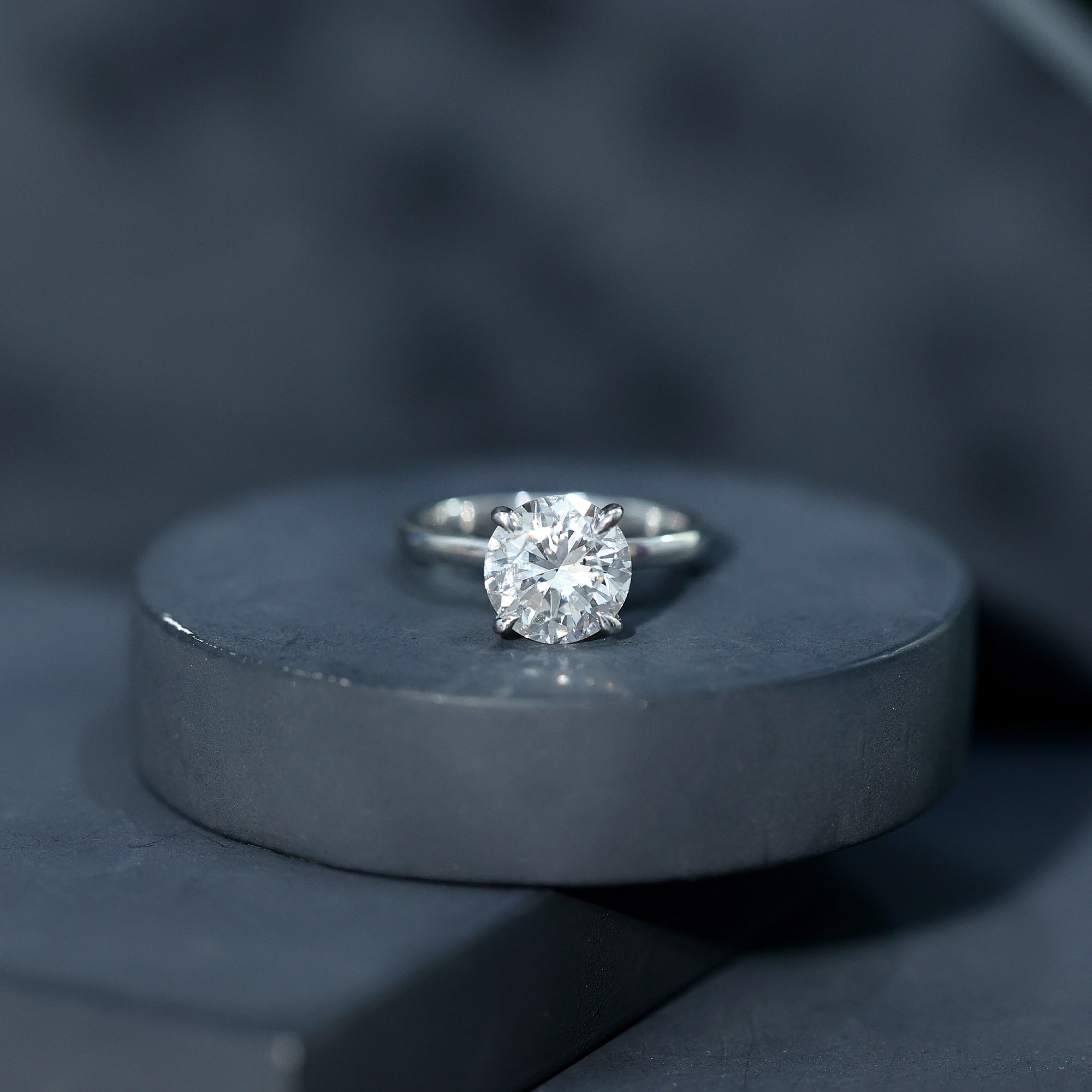 We handcrafted this 2.5 Carat Diamond Ring for the one who makes your world sparkle. At the heart of the design sits a stunning 9 MM round cut diamond, held securely in prong setting that lifts the stone high, allowing light to pass through every angle. You can present this as a Promise Ring, an anniversary gift, or a romantic surprise, this Diamond Solitaire Ring beautifully marks lifes most cherished moments. The lab made diamond ensures affordability while being eco-friendly, offering the same brilliance and durability as natural stones. It offers a wide range of metal color options and is also available in various ring sizes. This High Profile Engagement Ring comes with a certificate of authenticity for gemstones and is packaged in a premium storage box.