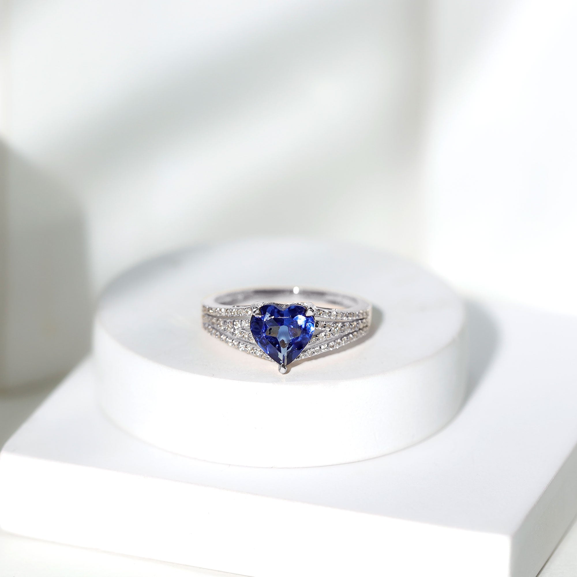 Certified 2 Carat Lab Grown Blue Sapphire Heart Engagement Ring with Diamond Split Shank