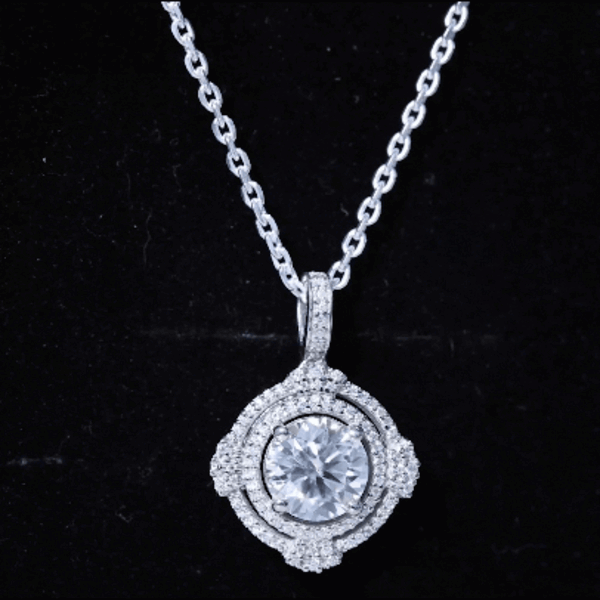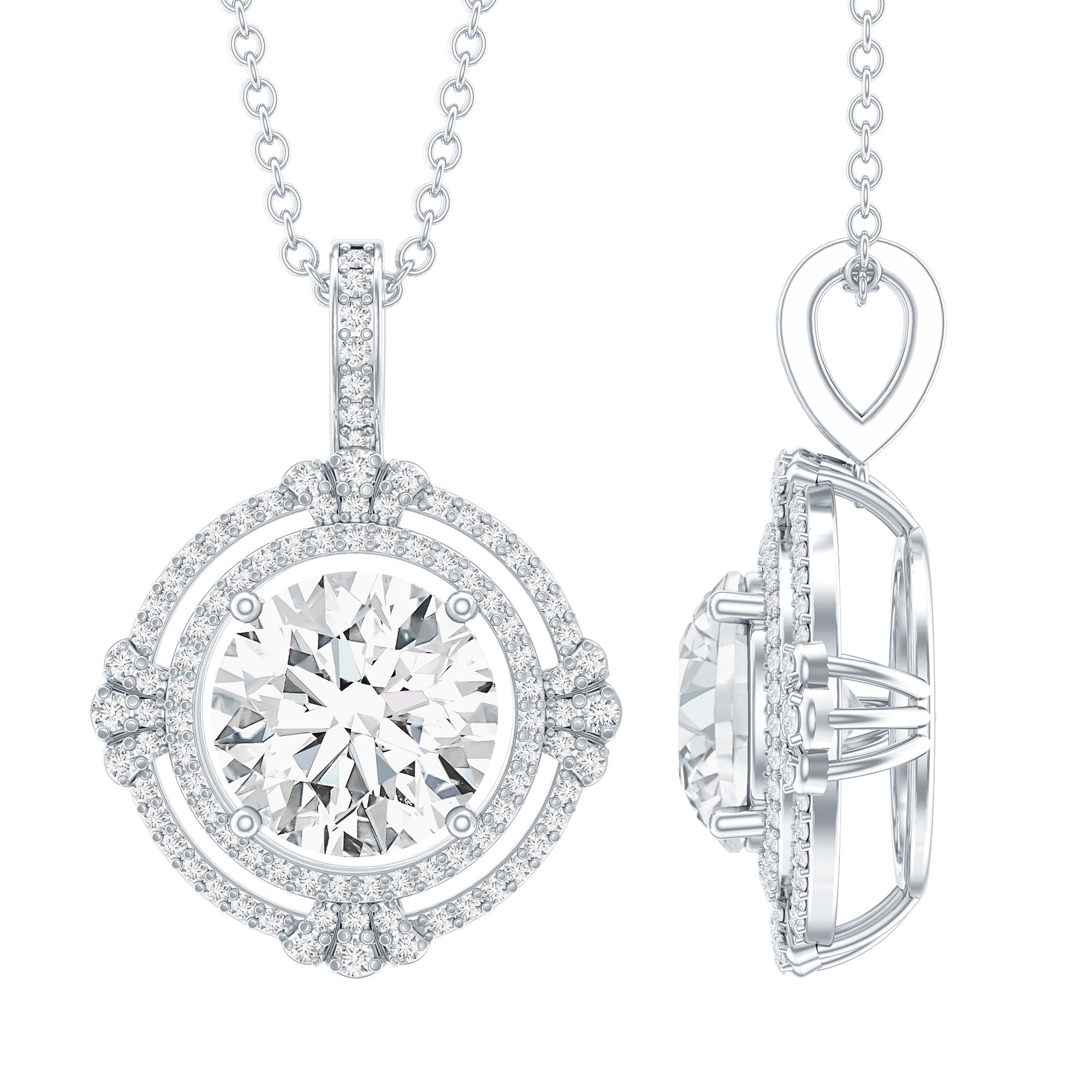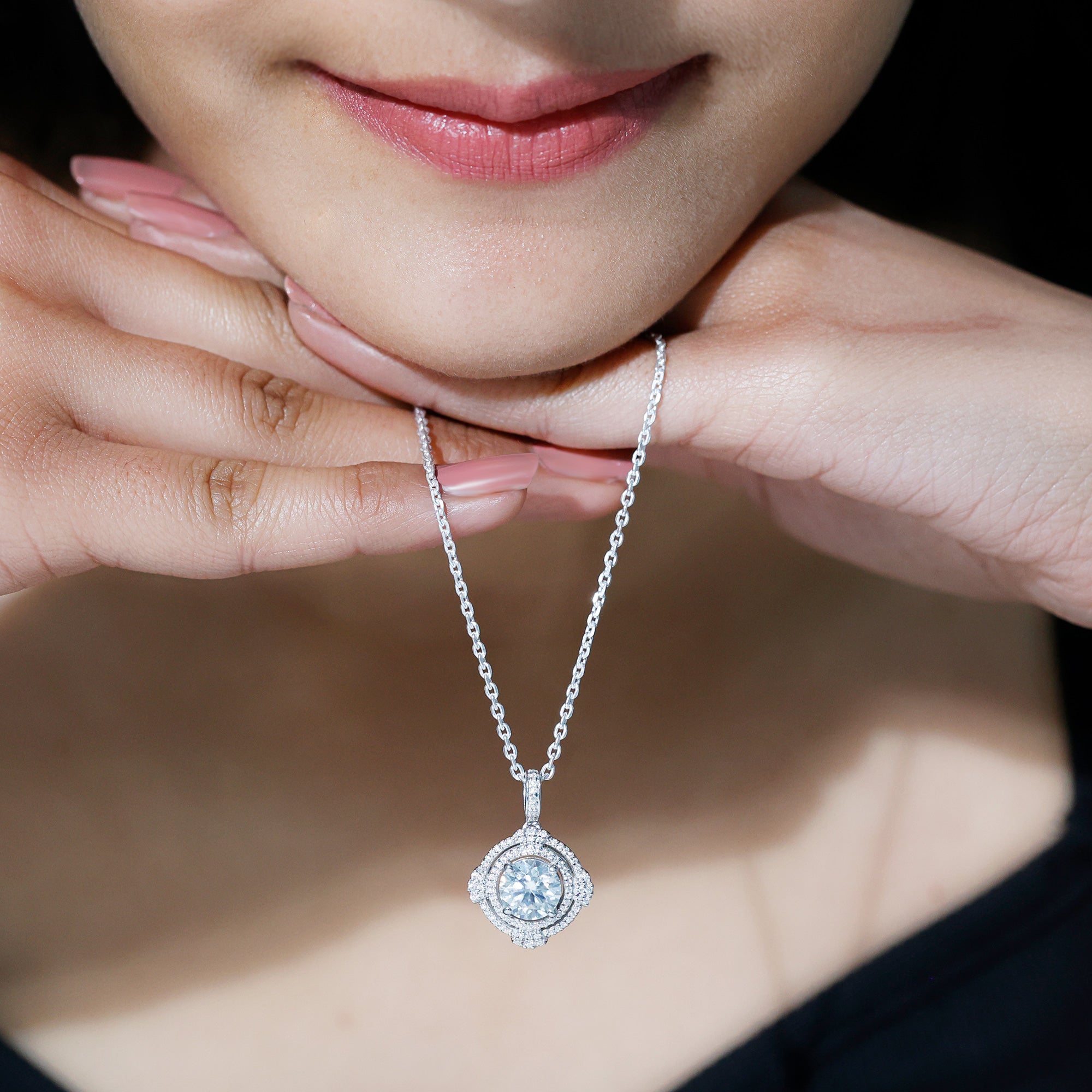 Certified 2 Carat Moissanite Double Halo Necklace with Silver Chain