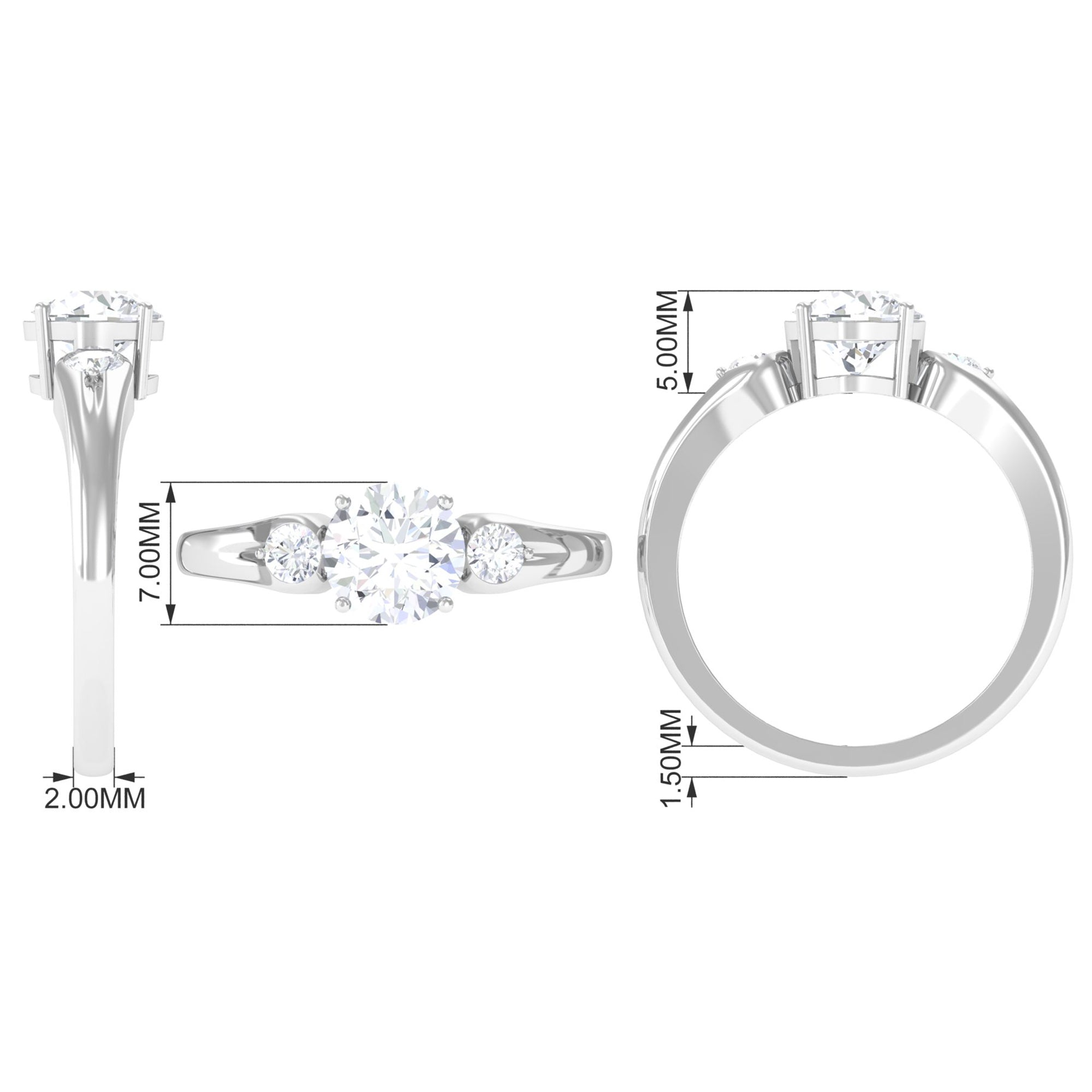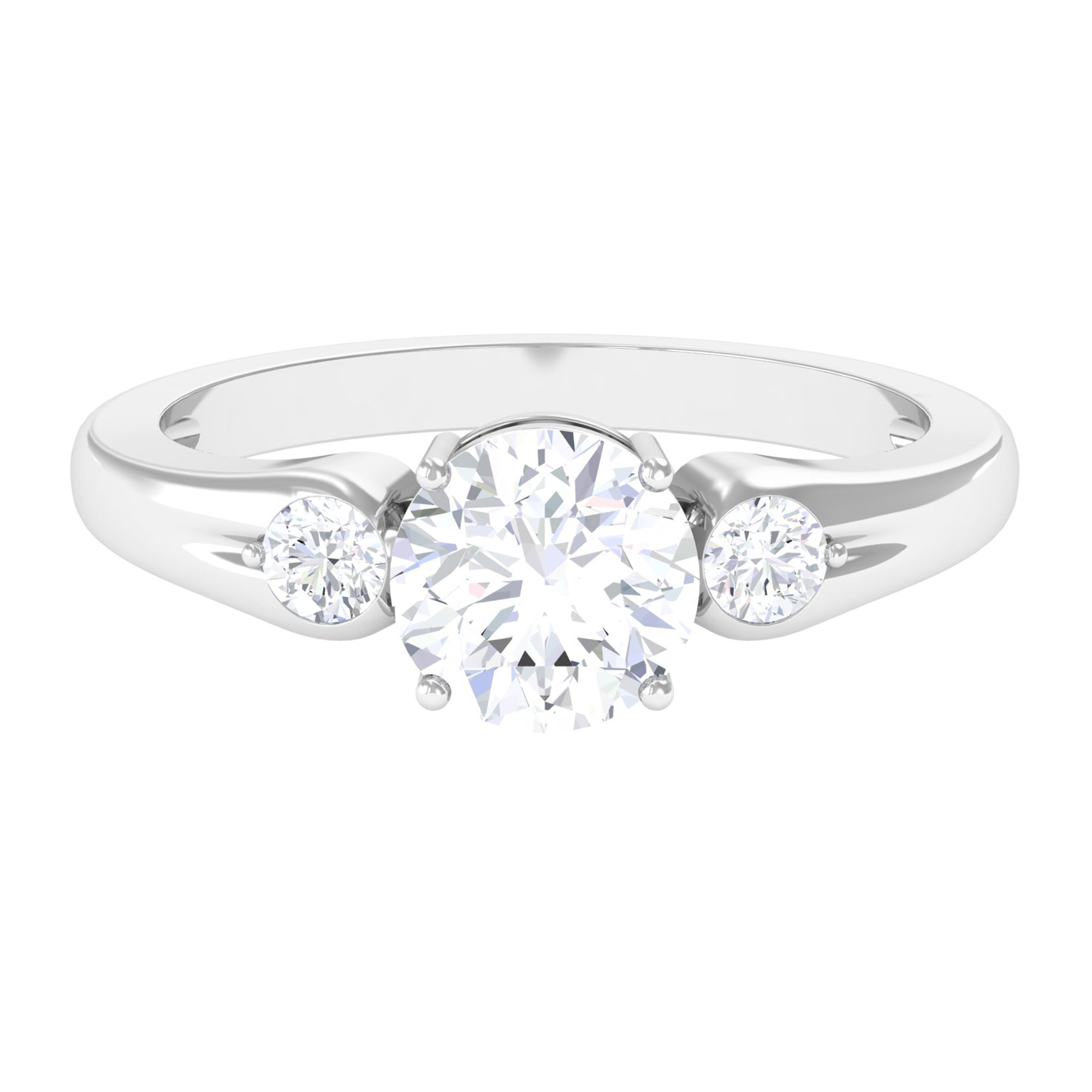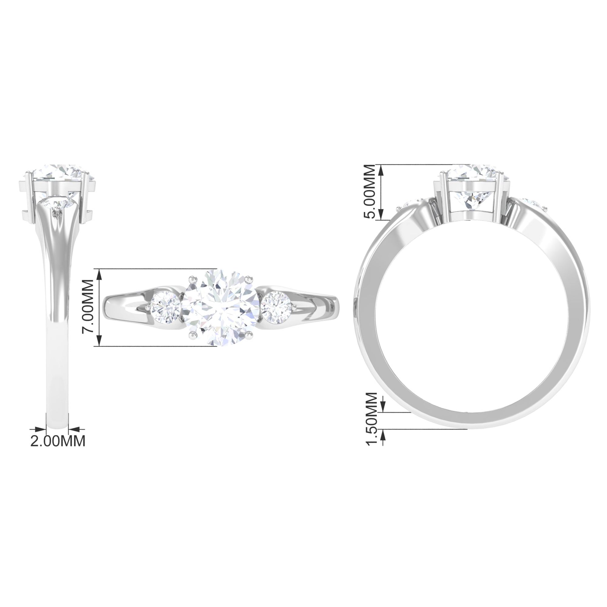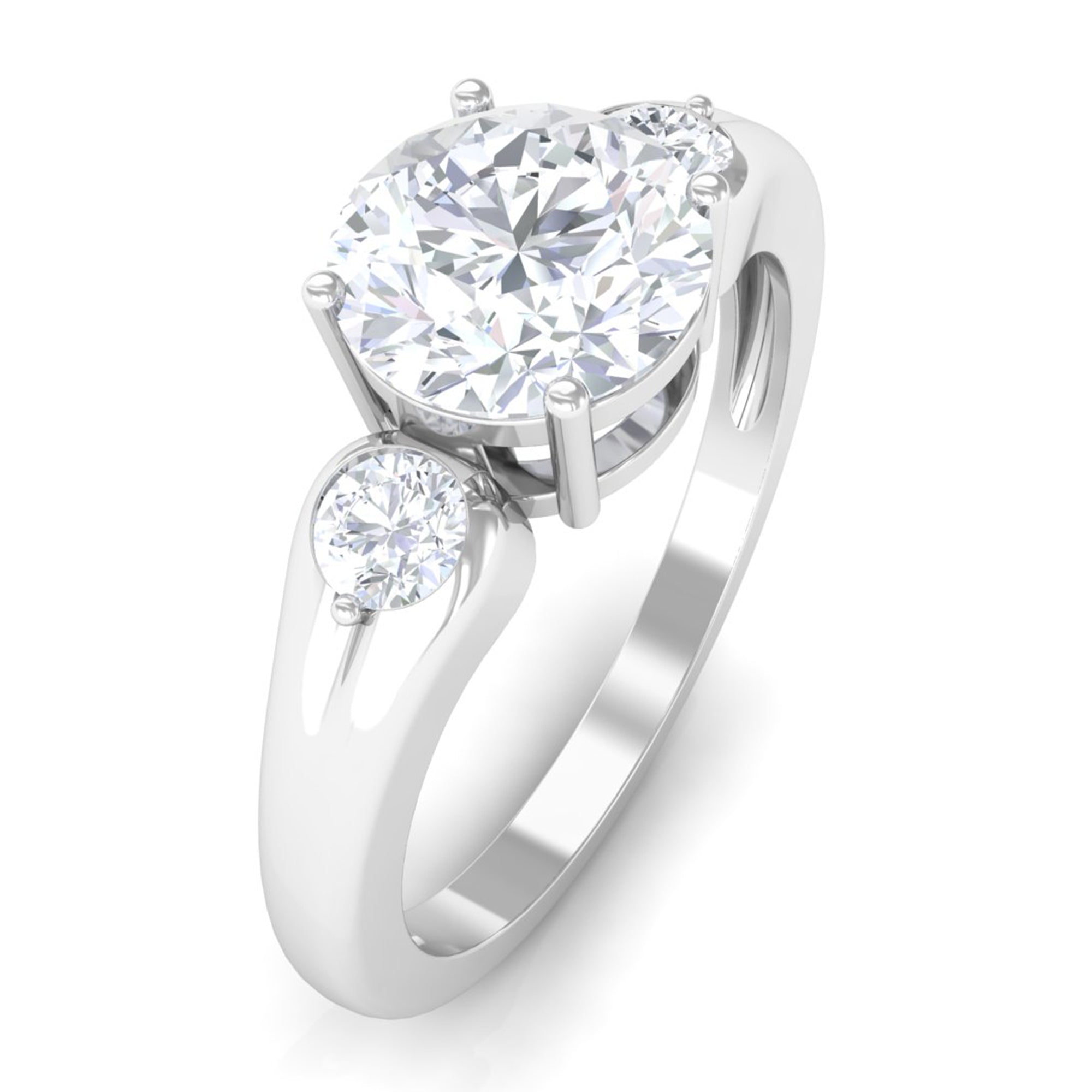 Seal your commitment with a truly distinctive Moissanite Promise Ring carefully crafted to embody love and significance. At its center is a 7 MM round moissanite, accompanied by two 3 mm round moissanite side stones in a secure prong setting, providing a harmonious and refined look. This thoughtful feature transforms this Moissanite Solitaire Ring into more than merely a piece of jewelry - it evolves into a treasured keepsake that narrates your love story. Whether you are commemorating a significant milestone or conveying your sincere commitment, this Relationship Ring serves as an ideal memento she will cherish eternally. Designed to encapsulate the journey of your relationship, this Moissanite Proposal Ring merges contemporary aesthetics with timeless elegance. Showcasing D color VS1 clarity stones, this Round Moissanite Ring for Women exudes remarkable fire and brilliance - establishing it as a genuine emblem of lasting love and connection.