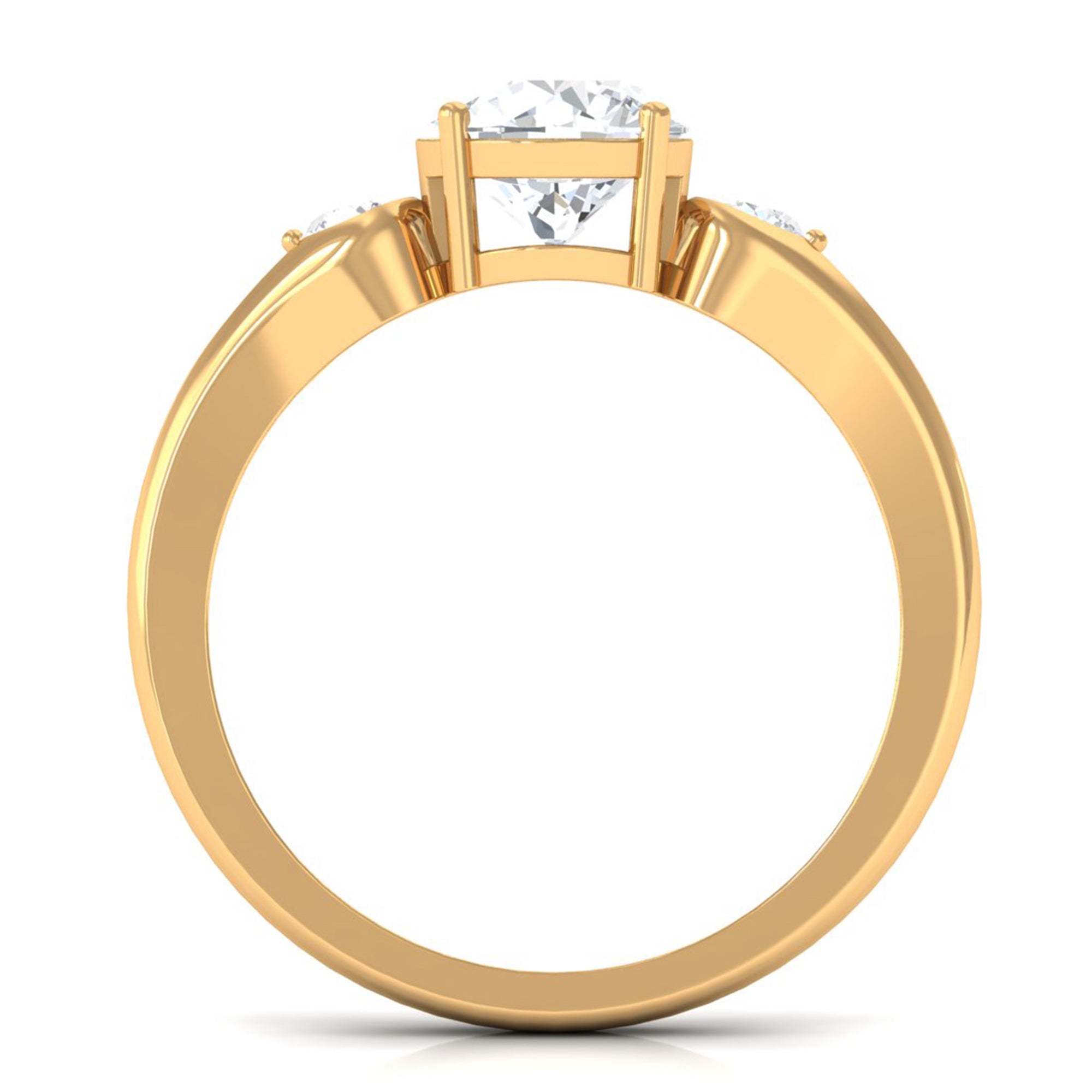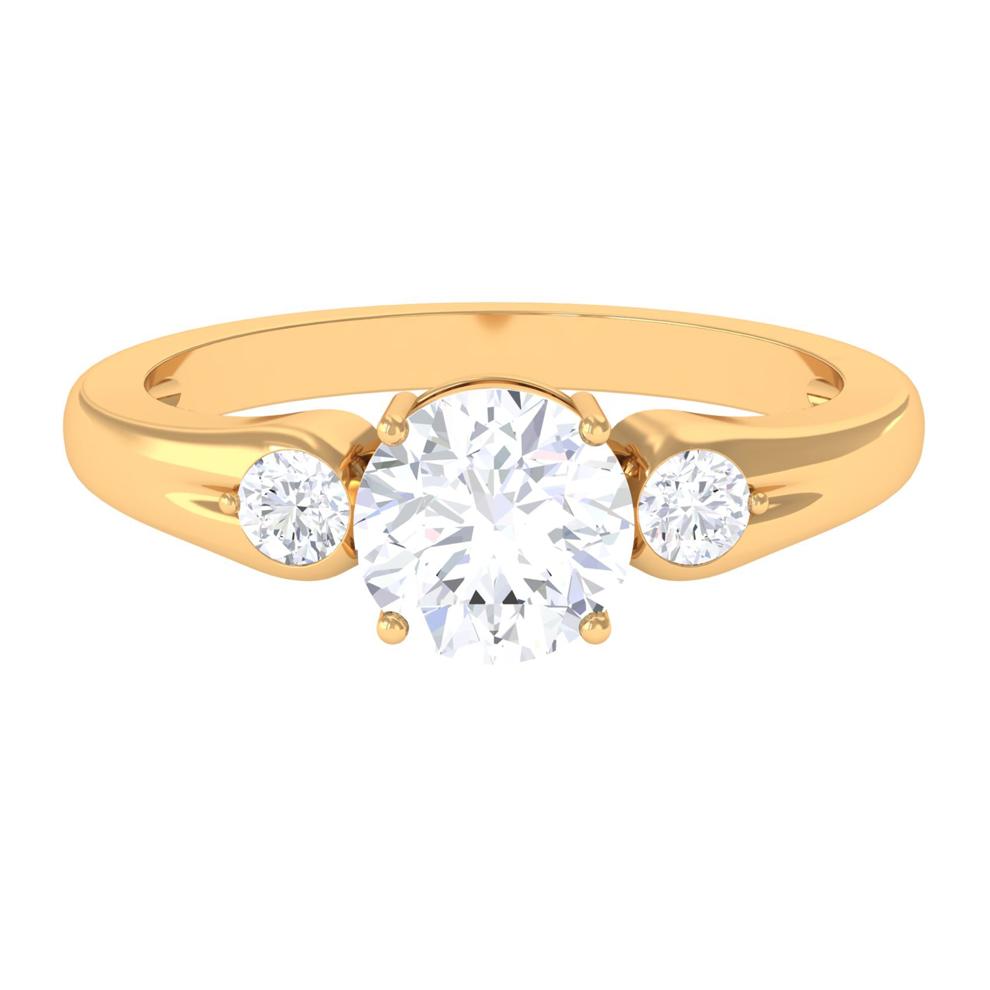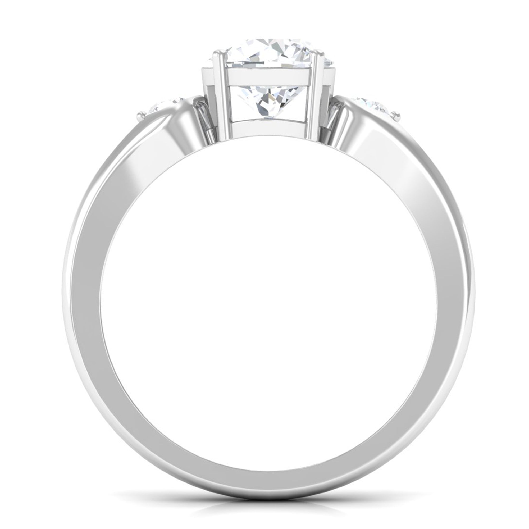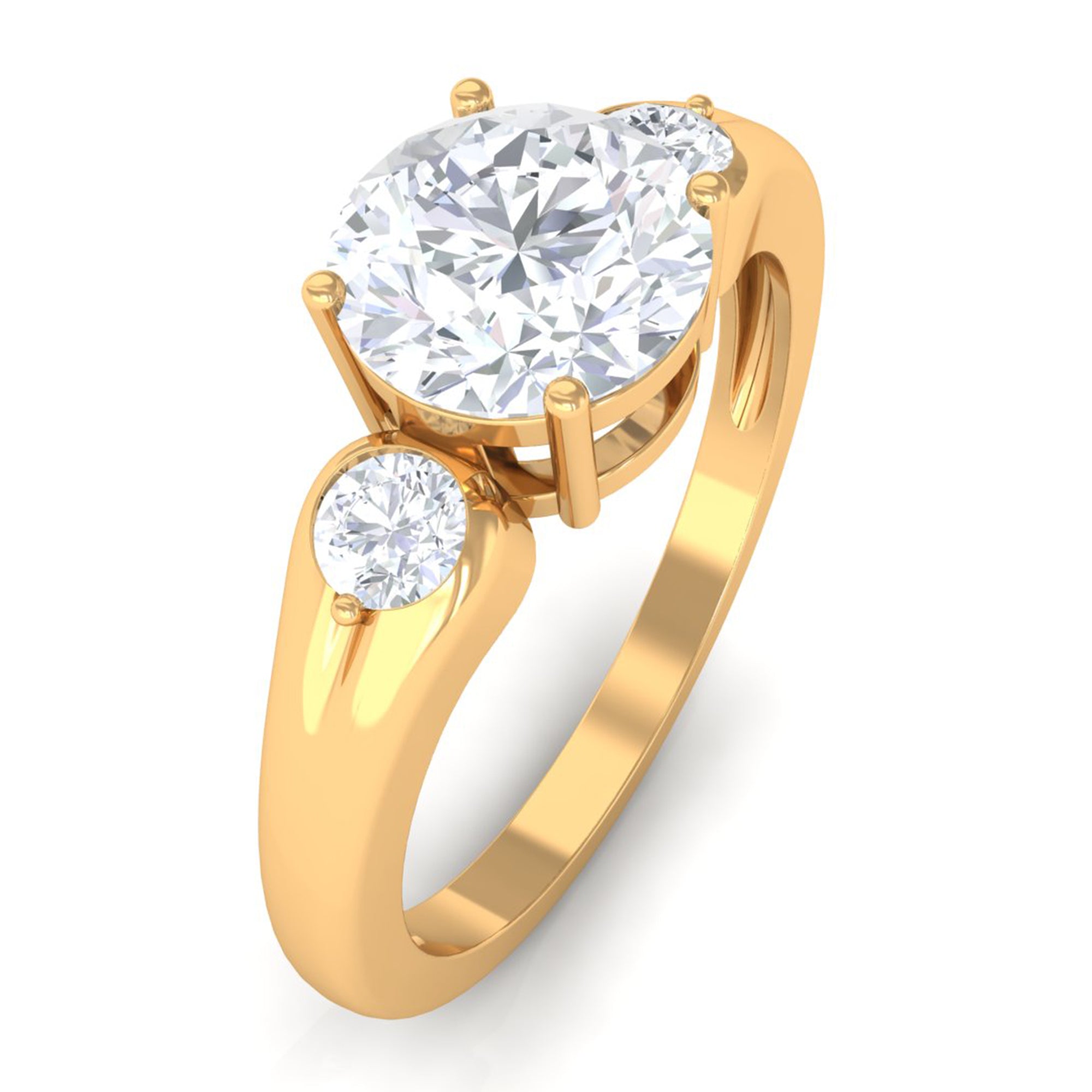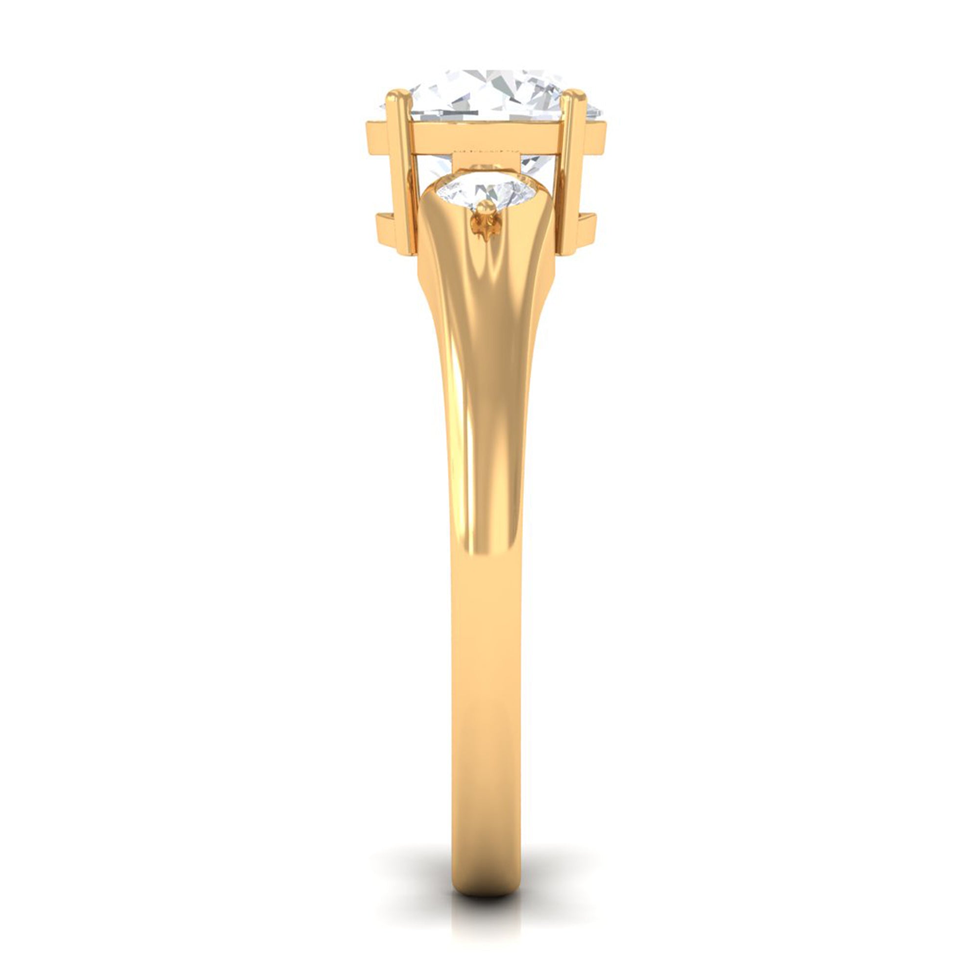 Seal your commitment with a truly distinctive Moissanite Promise Ring carefully crafted to embody love and significance. At its center is a 7 MM round moissanite, accompanied by two 3 mm round moissanite side stones in a secure prong setting, providing a harmonious and refined look. This thoughtful feature transforms this Moissanite Solitaire Ring into more than merely a piece of jewelry - it evolves into a treasured keepsake that narrates your love story. Whether you are commemorating a significant milestone or conveying your sincere commitment, this Relationship Ring serves as an ideal memento she will cherish eternally. Designed to encapsulate the journey of your relationship, this Moissanite Proposal Ring merges contemporary aesthetics with timeless elegance. Showcasing D color VS1 clarity stones, this Round Moissanite Ring for Women exudes remarkable fire and brilliance - establishing it as a genuine emblem of lasting love and connection.