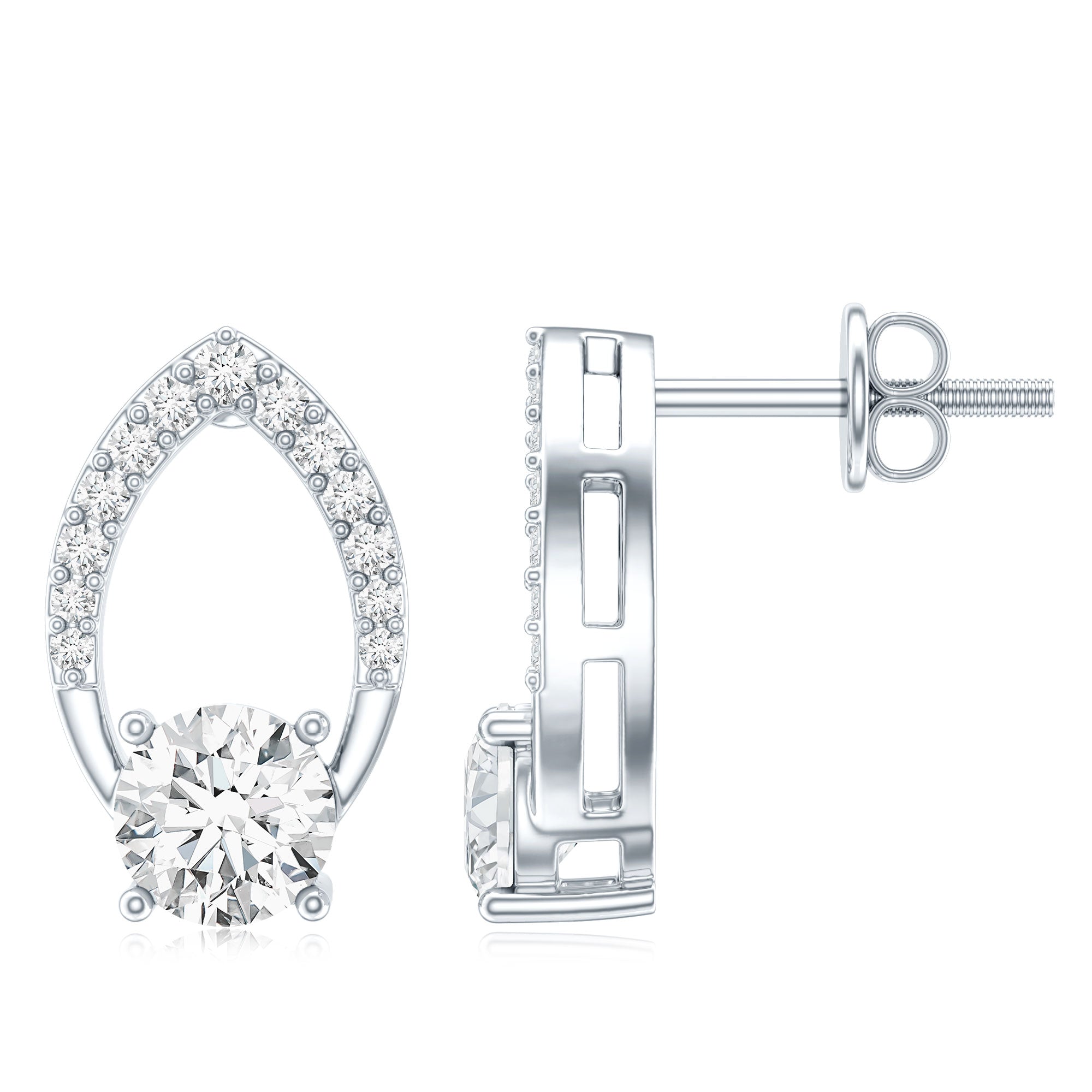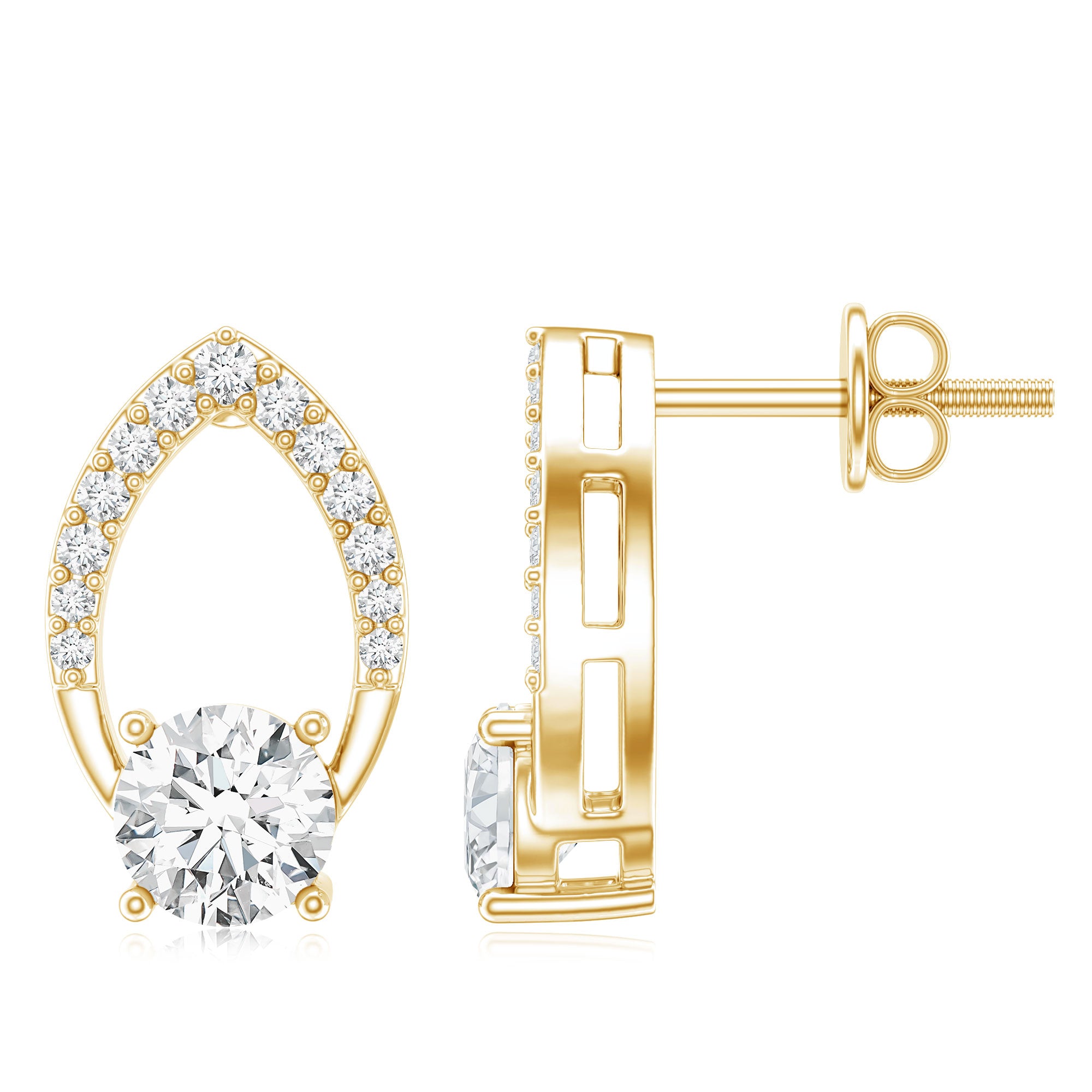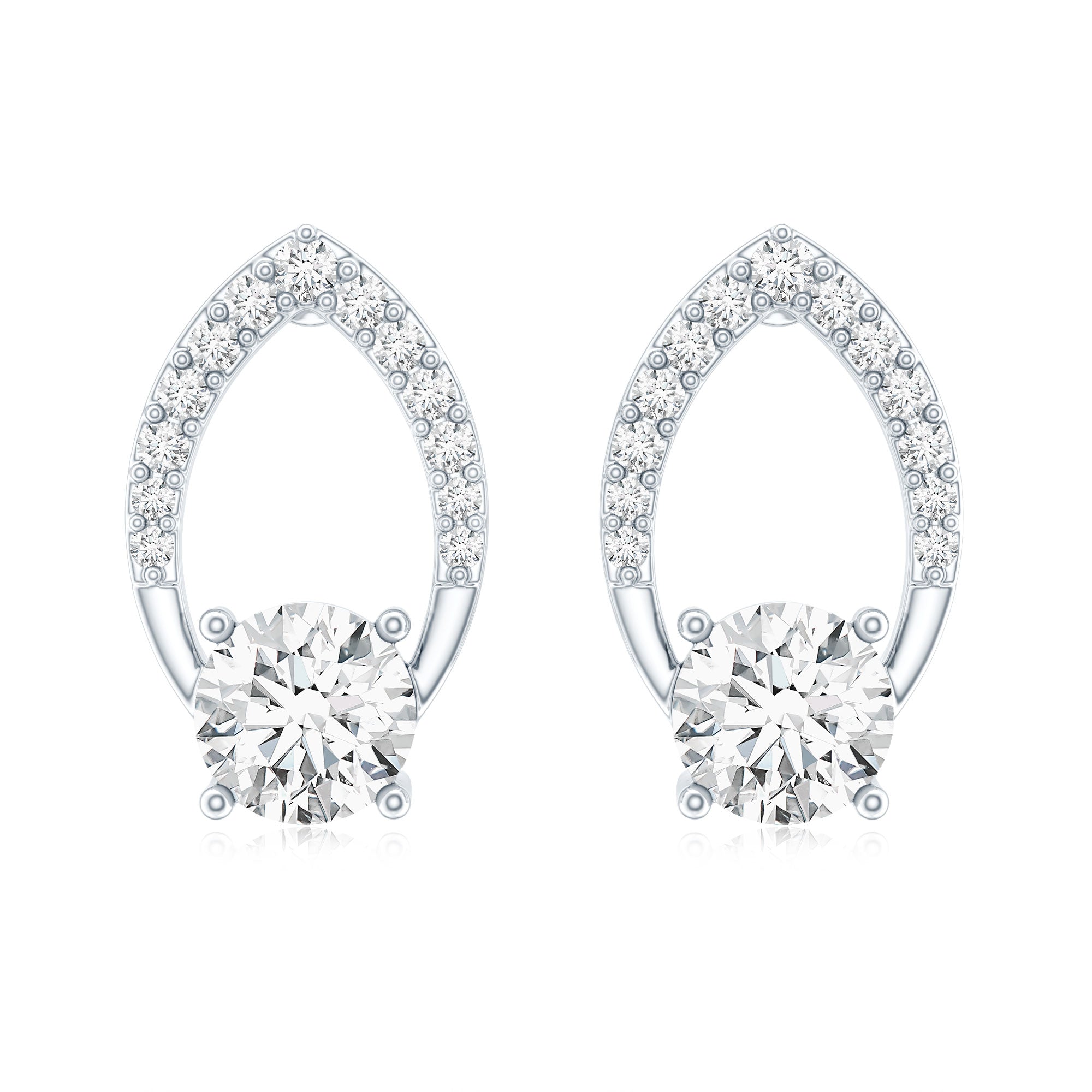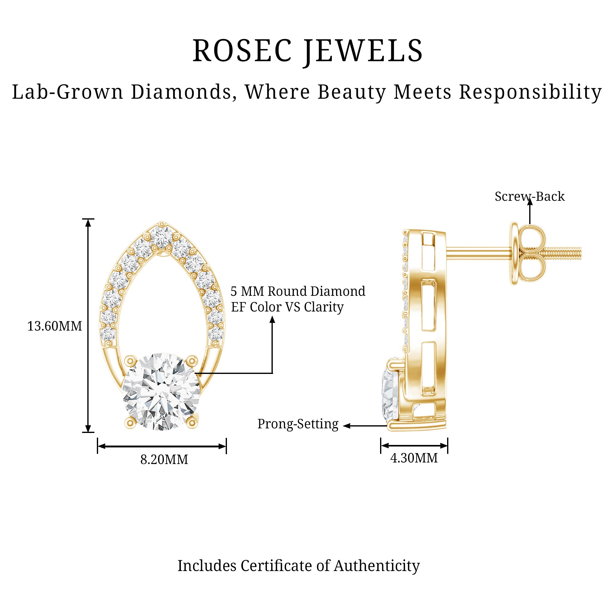 Dazzling and timeless - Rosec Jewels Diamond Stud Earrings are pure beauty. Features a 5 MM round shaped diamond (unnatural) set in prong setting over a petal shape open frame studded with dainty gemstones, adding a brilliance and making these Leaf Earrings a statement piece. The Diamond Earrings come with screw-back closure, which makes them easy to wear and keeps them secure, so she doesnt have to worry about them falling off. These Flower Petal Earrings are handcrafted with ethically sourced, eco-friendly lab grown diamonds, its a thoughtful and budget-friendly choice for an Anniversary gift or any meaningful occasion.